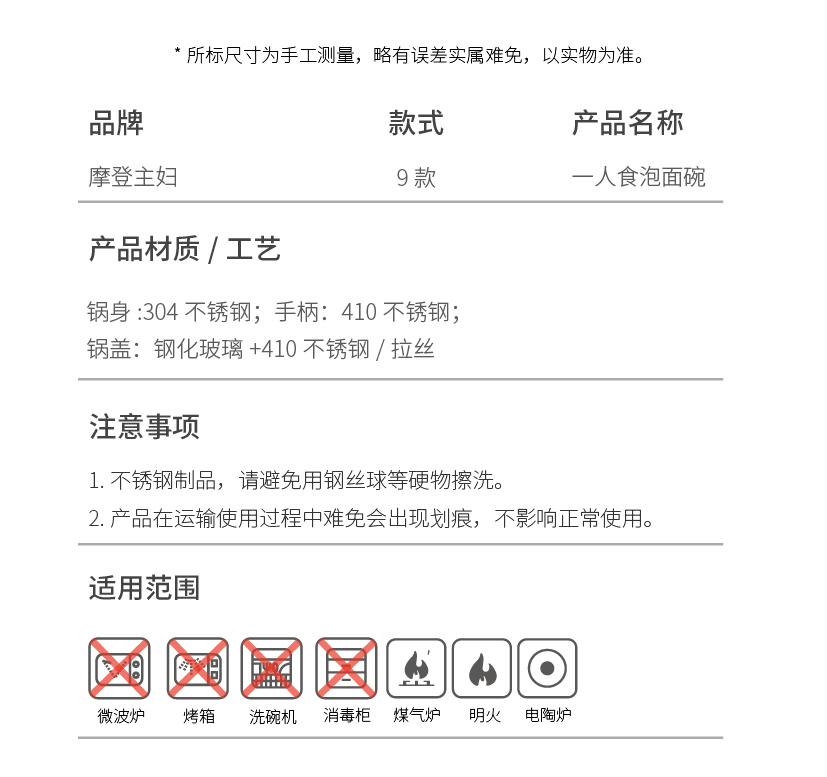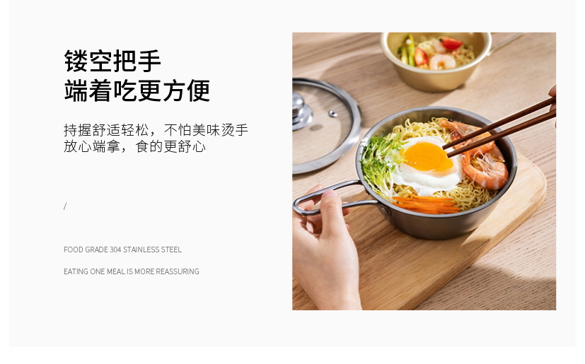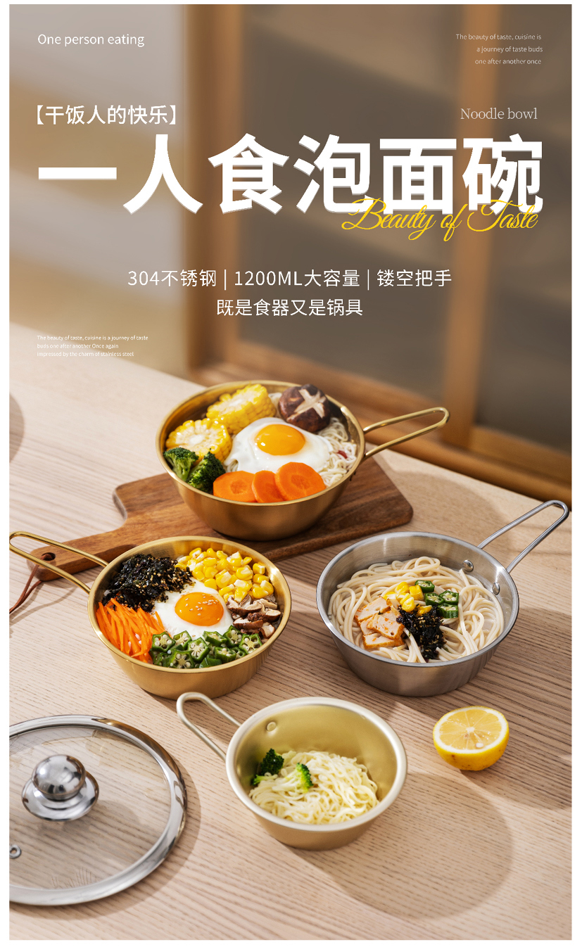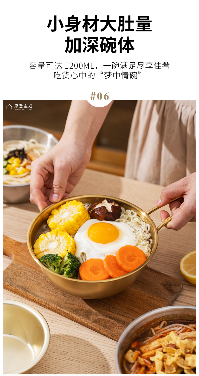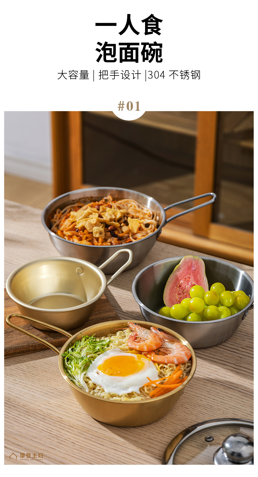 摩登主妇韩式泡面碗带手柄米酒碗餐具汤碗不锈钢拉面碗拌饭分食碗