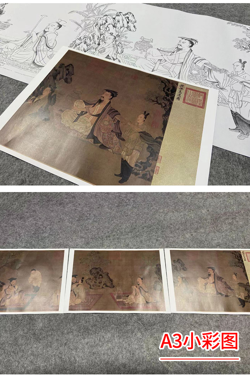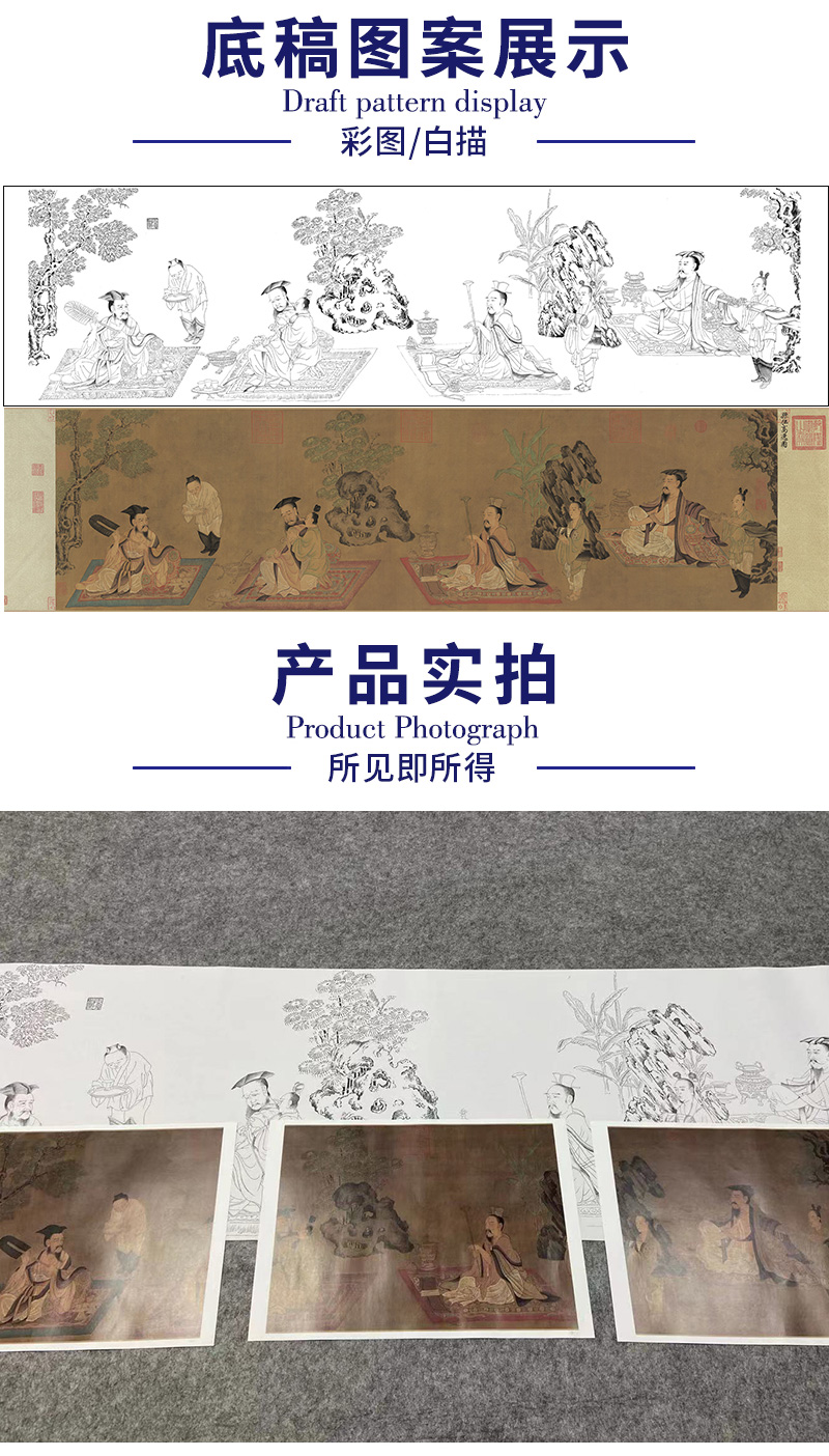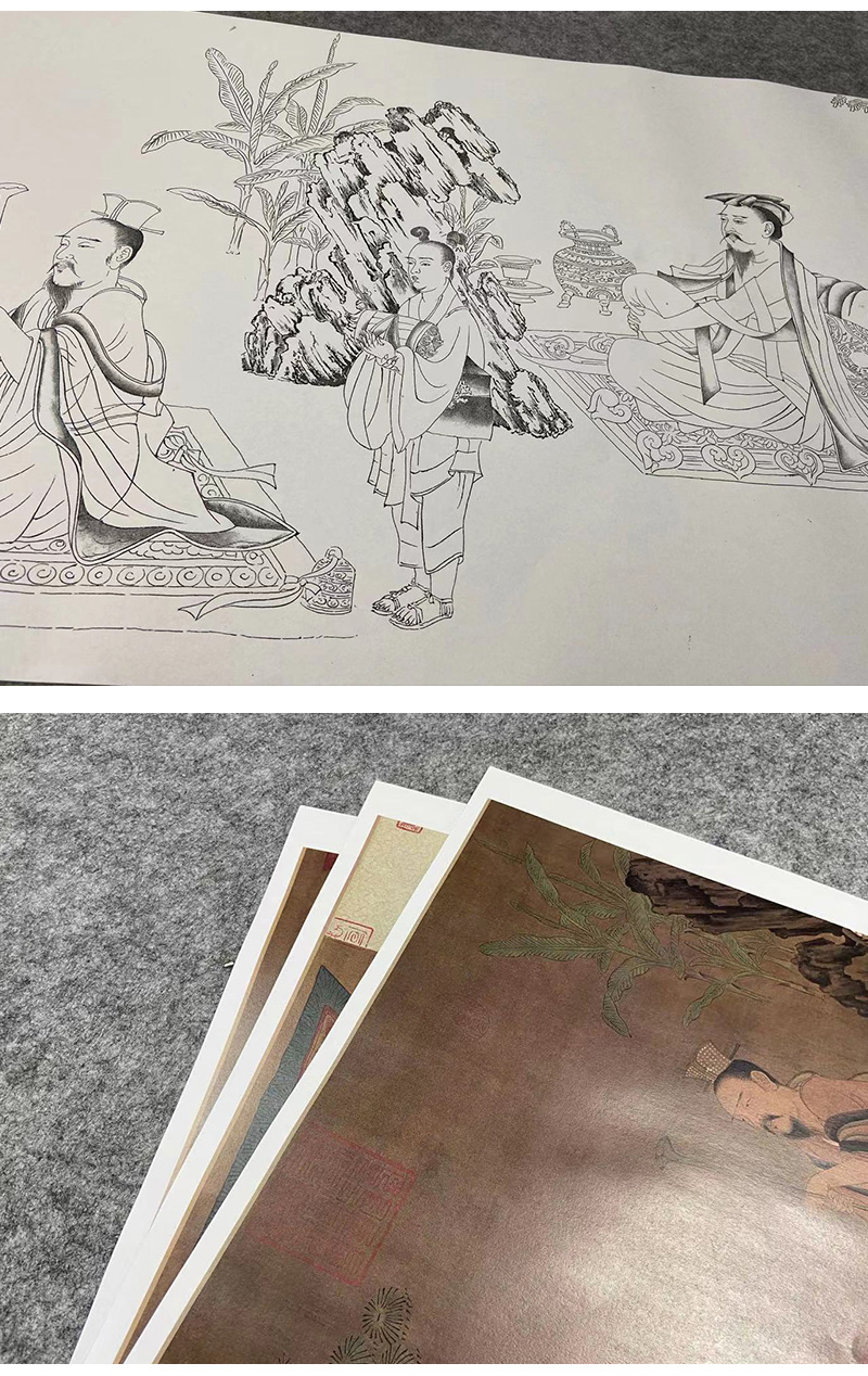 【长卷】工笔传统人物画白描底稿古画长卷孙位《高逸图》初学者多种白描尺寸可选G012