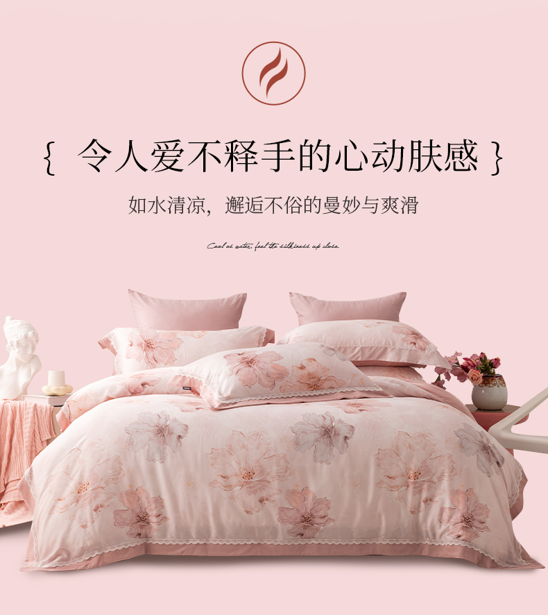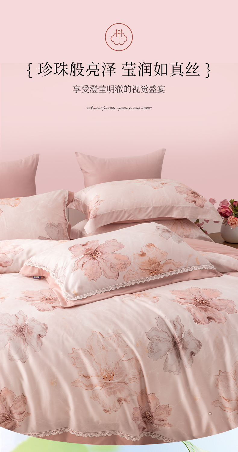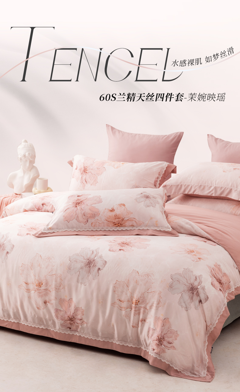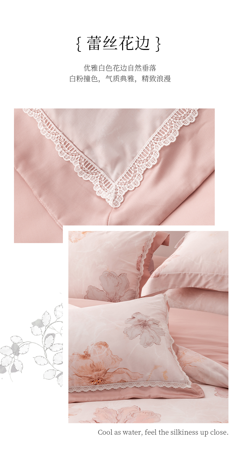 多喜爱 60S兰精天丝四件套-茉婉映瑶【蕾丝花边】【礼盒包装】 如梦丝滑 莹润如真丝 奥地利进口兰精天丝 专利床单 纱支细腻紧密