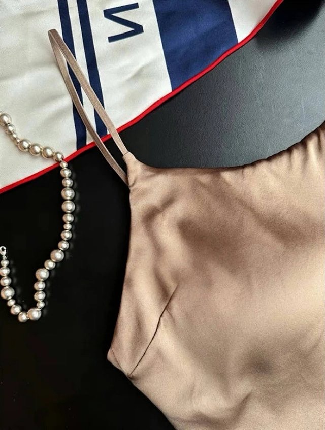 这款真丝吊带采用19姆米弹力缎面真丝,融合氨基酸功能面料,含蚕丝蛋白成分,具有滋养抑菌、抗老美肤的功效。法式三角杯设计无钢圈无痕,可兼作文胸或外穿吊带,一体式透气罩杯轻薄无负担,搭配镂空罩衫或薄衬衫都时髦。经典黑白、卡其、香槟三色可选,贴肤色且百搭。