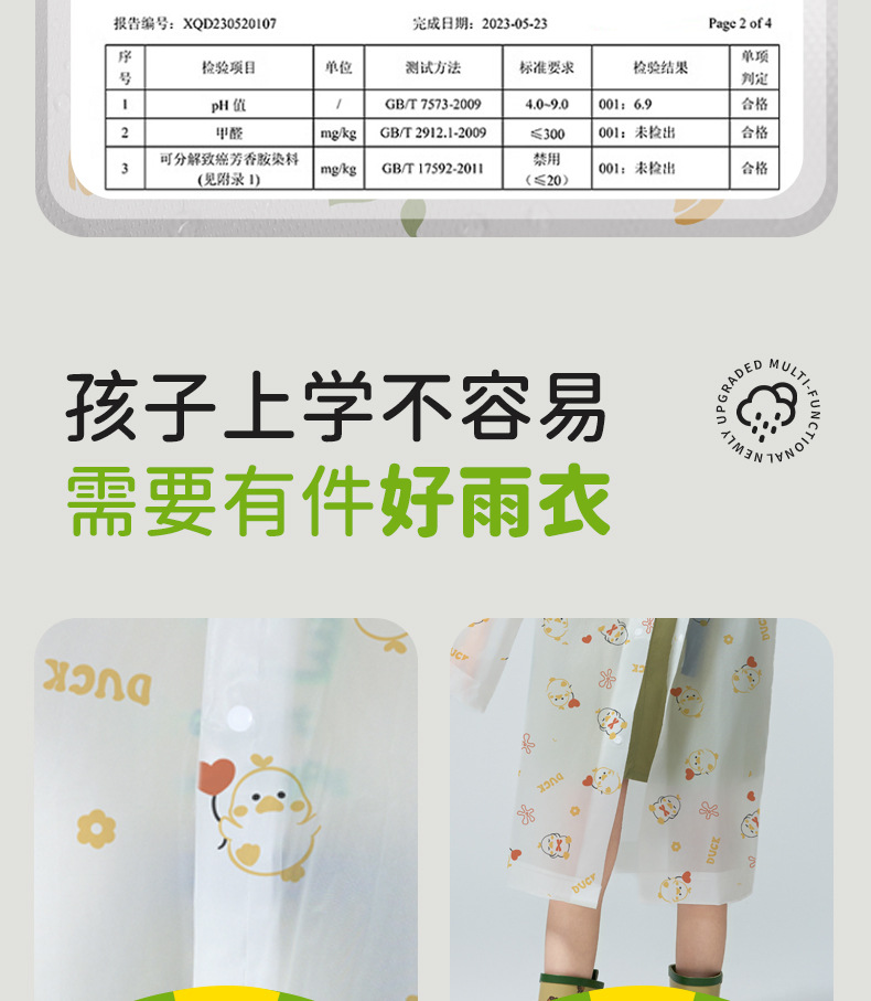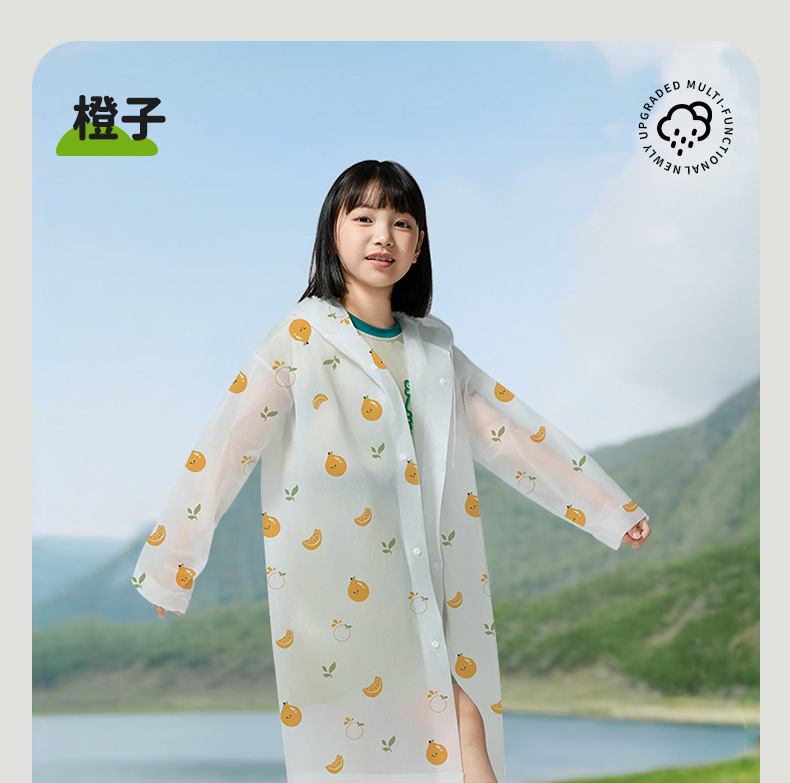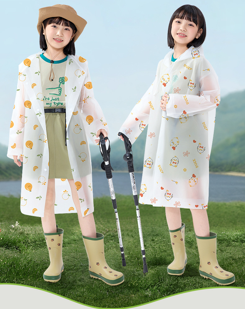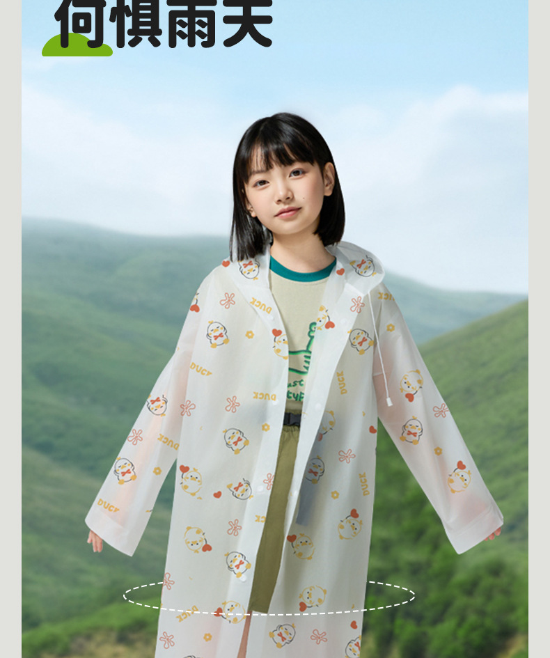 【加长大帽檐❗防雨不湿脸】儿童EVA加厚连体雨衣 防暴雨水可爱满印反复使用上学游玩雨披。rh