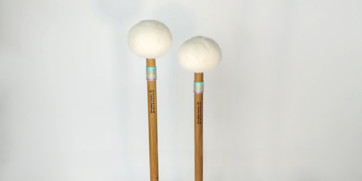 1 1/4″ diameter cork core with multiple felt layers and medium thick German felt ball cover. Round and warm sound with just enough clarity to be called a warm general stick. So far, most players that have tested this call it a “go to” general. *Break in period for this model is approximately 1 week of regular playing for the felt to relax a bit and become even further voiced naturally…or you can voice them more heavily before using if you wish.
