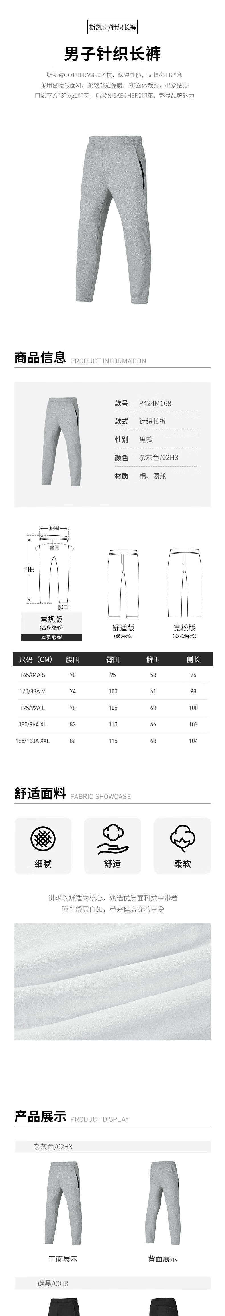 Skechers斯凯奇 男针织长裤 P424M168-02H3