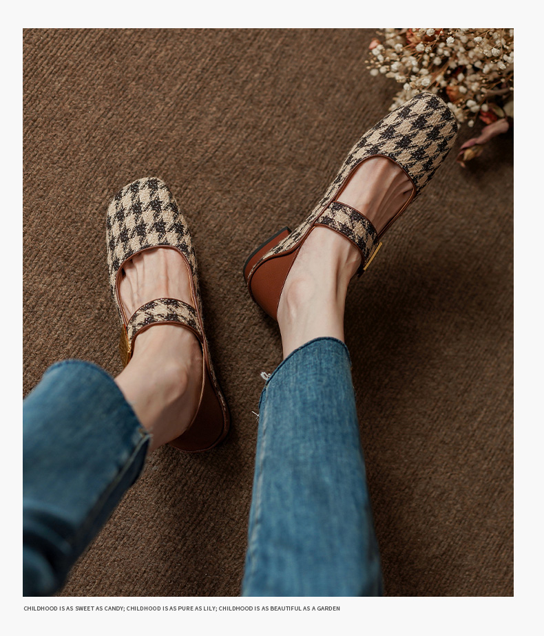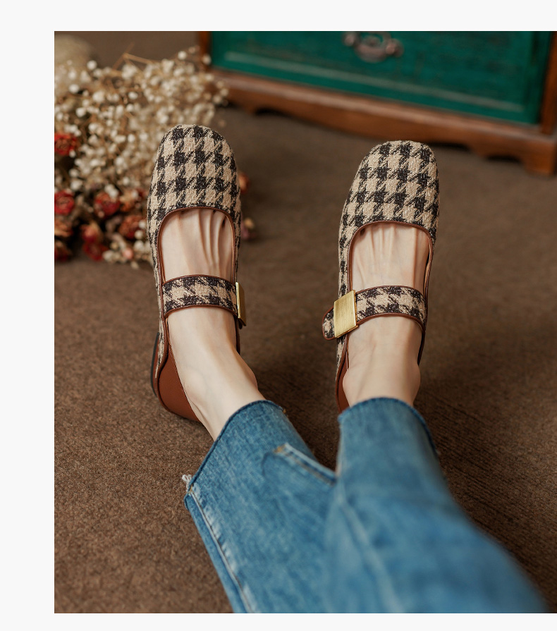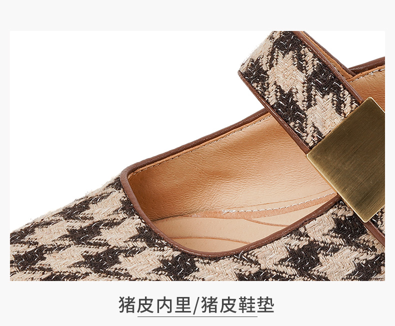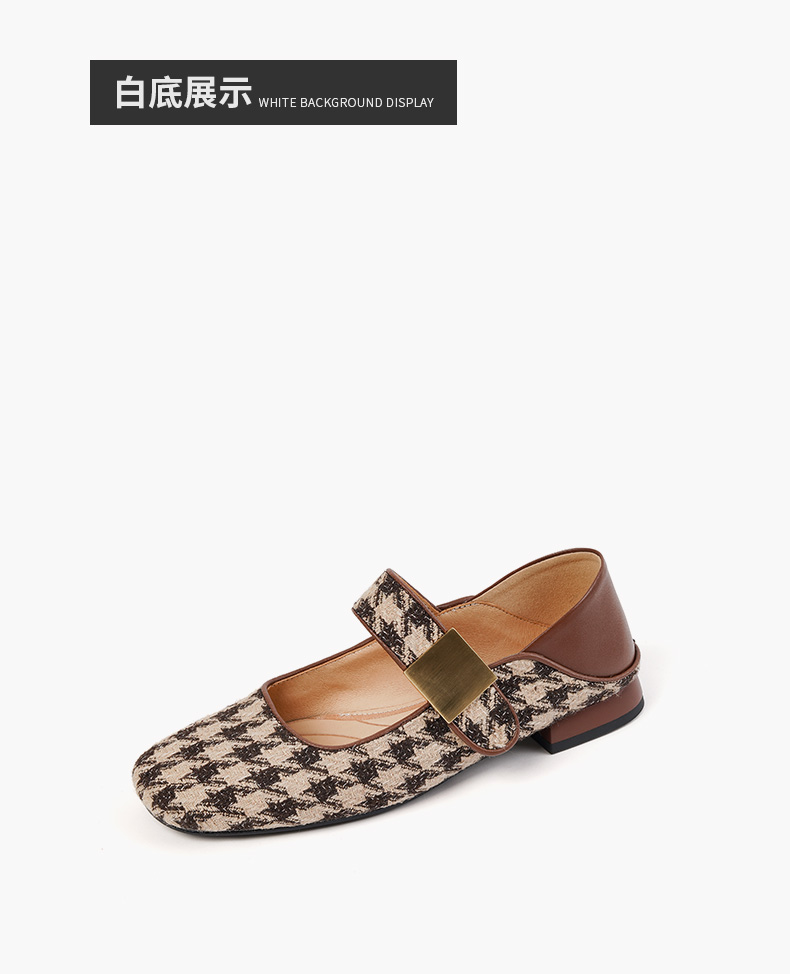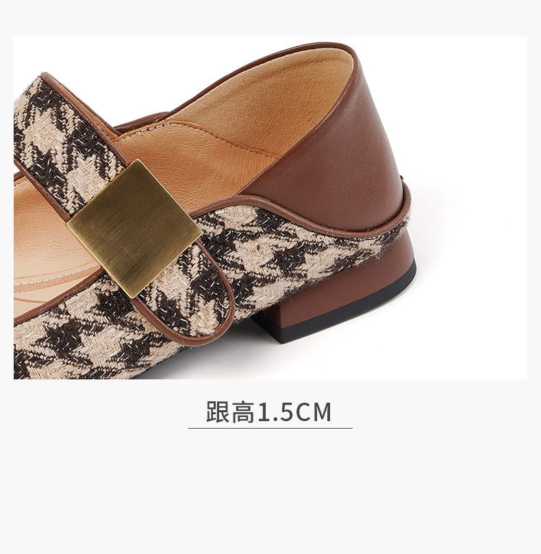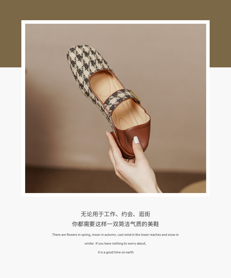 平底舒适,头层牛皮配流行格子织物单鞋PS1035