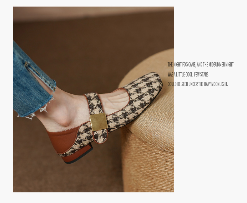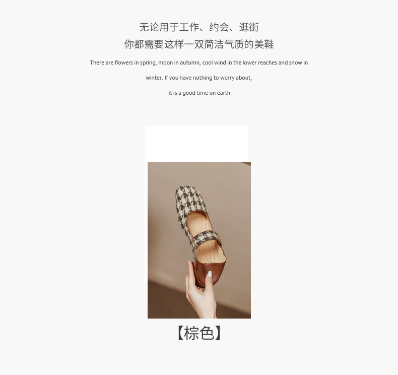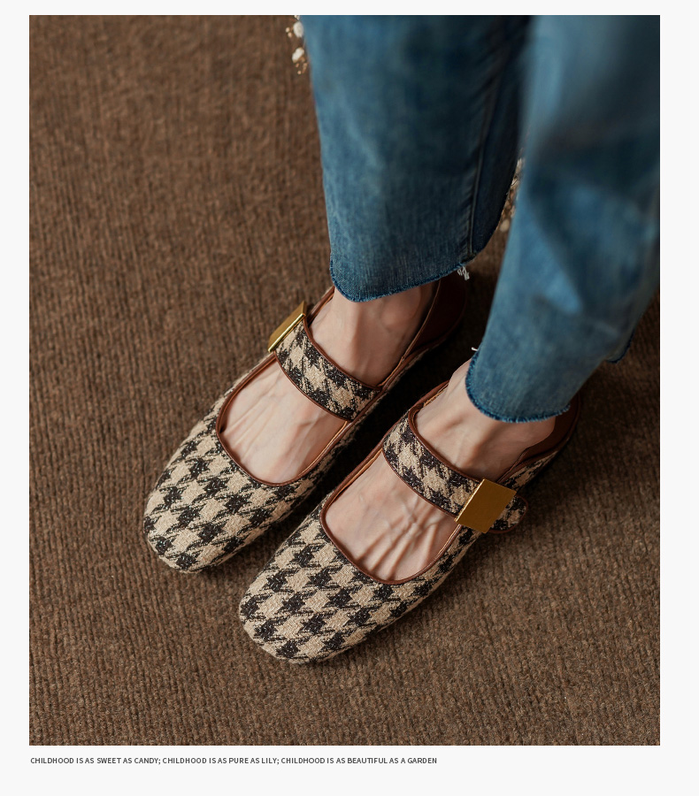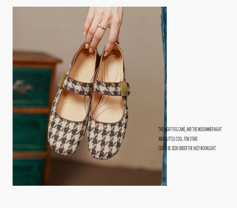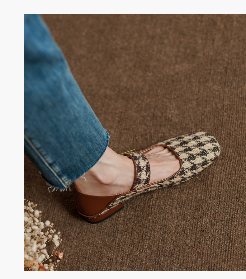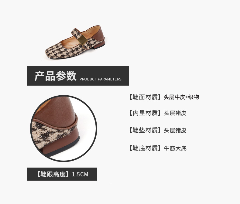 平底舒适,头层牛皮配流行格子织物单鞋PS1035