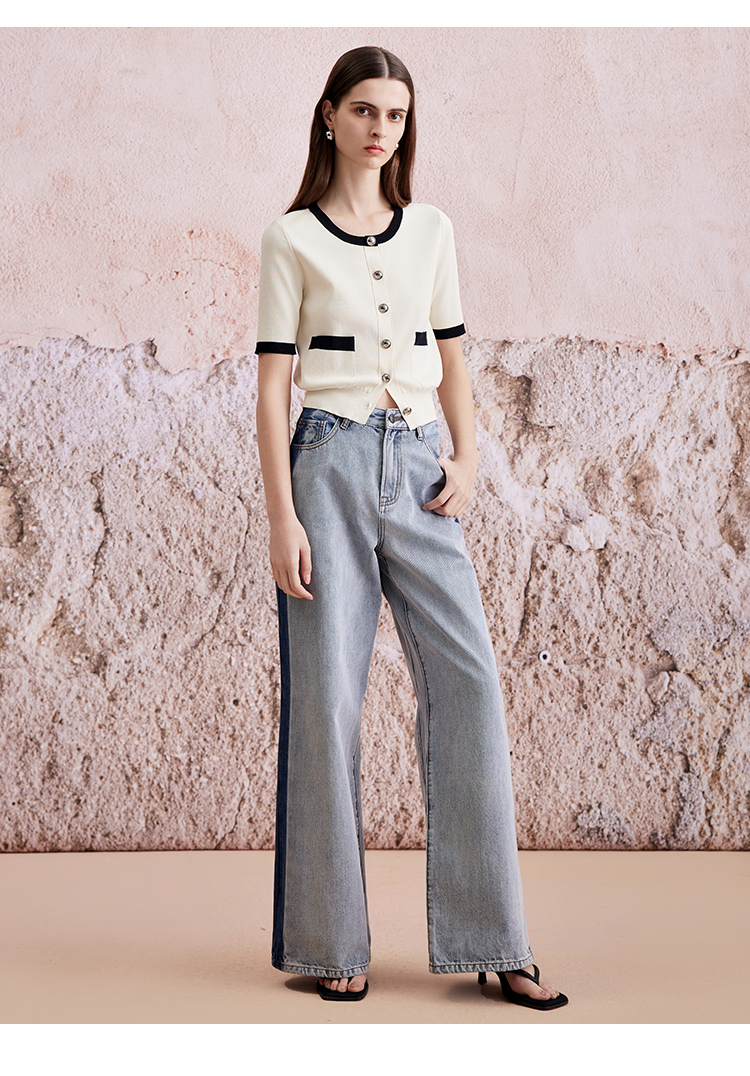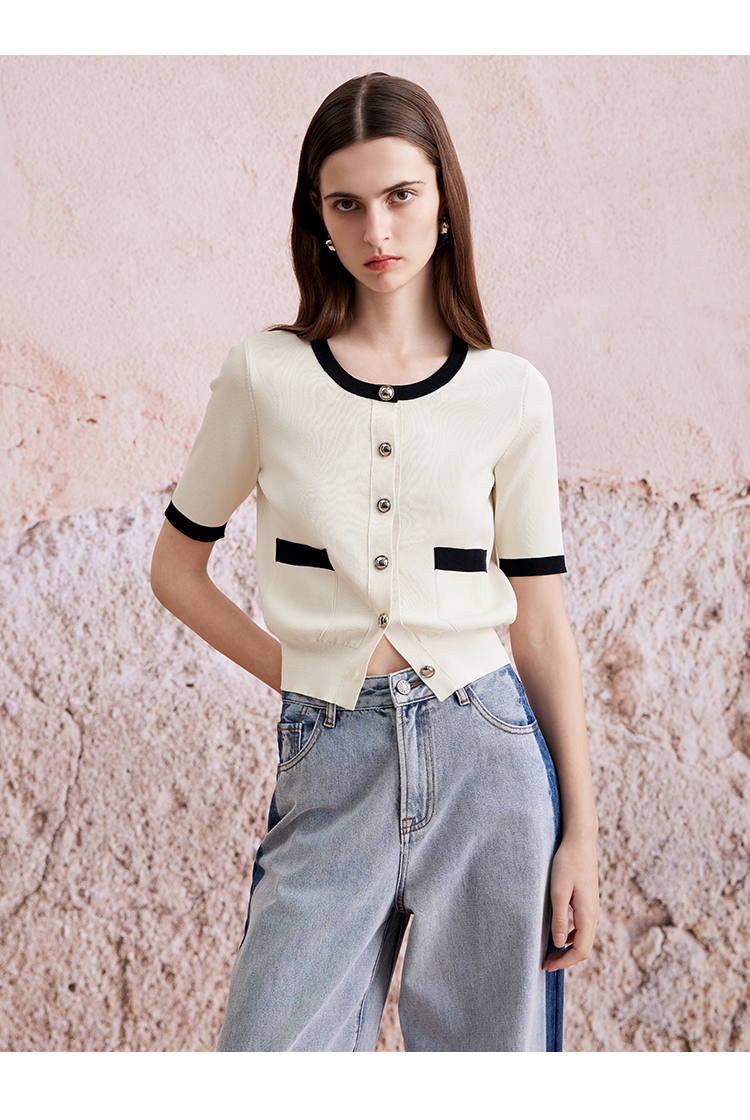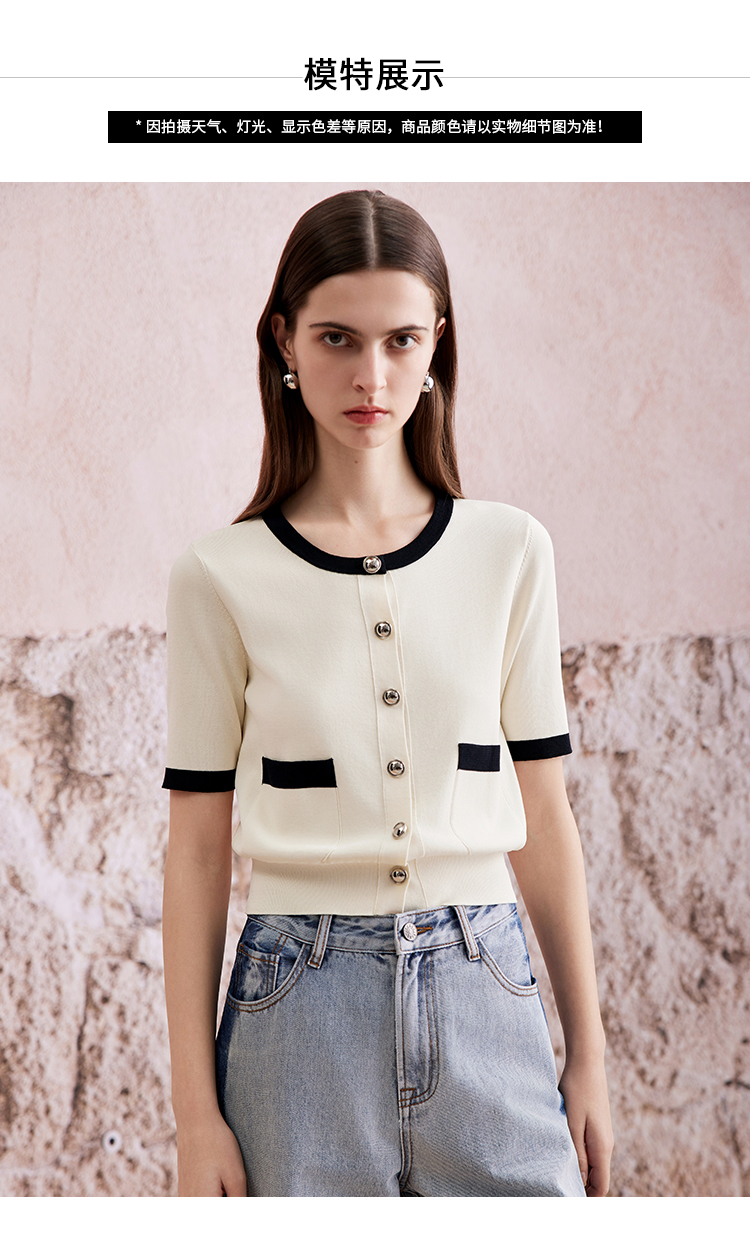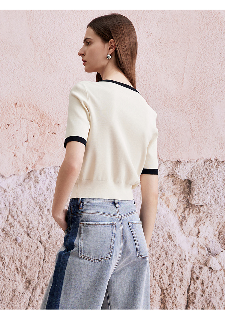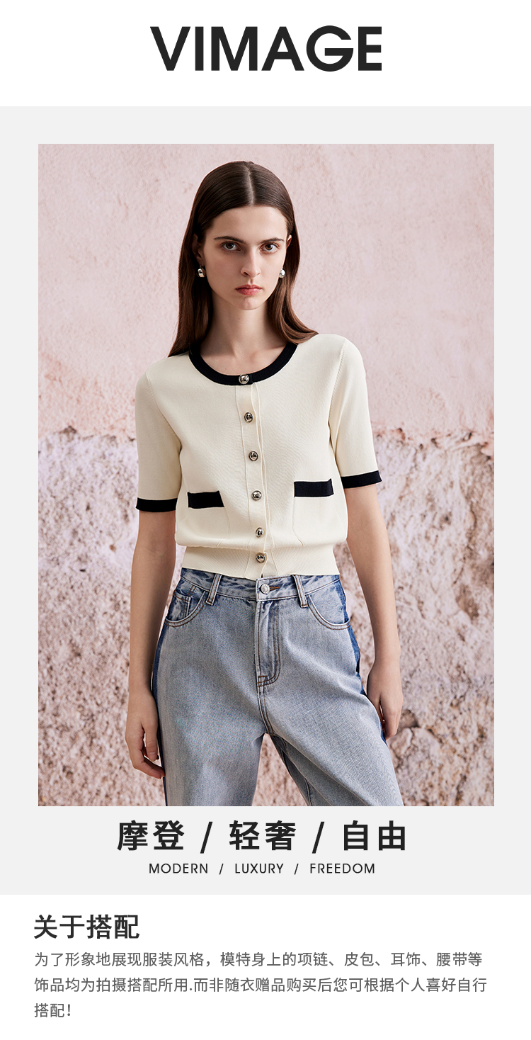 VIMAGE纬漫纪夏季新品时尚百搭撞色针织衫V2101714