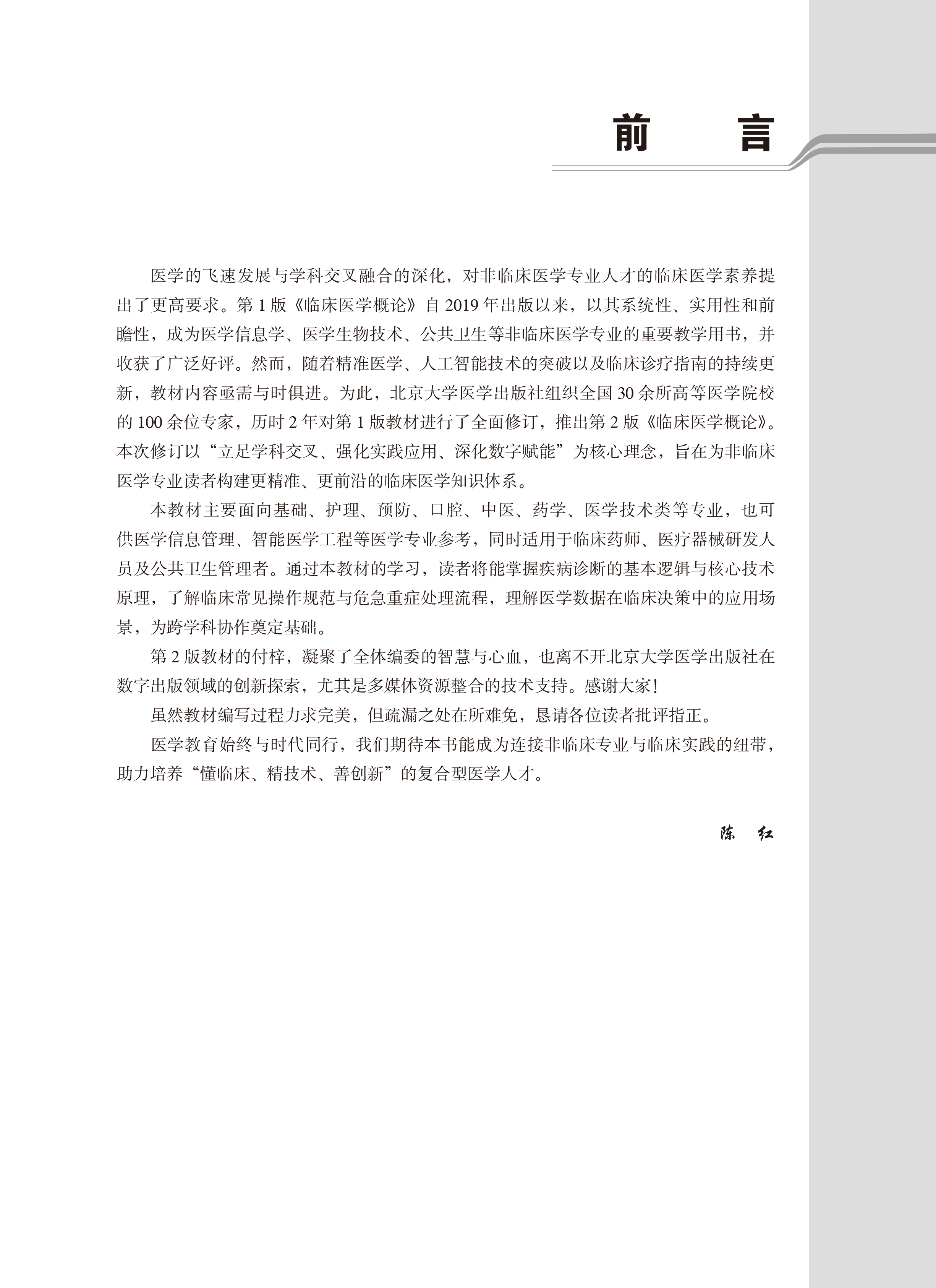 本书为我社本科临床医学专业第五轮规划教材之一,由全国高等医学院校专家团队为编写团队,内容分为上篇诊断篇、中篇操作篇和下篇疾病篇,内容覆盖面广,将临床医学导论、临床医学各专业内容集于一书,概括性强、重点突出、由浅入深、简明扼要,并配套有数字资源,可为本科医学及医学相关专业读者提供辅助。通过本书的学习,读者将能掌握疾病诊断的基本逻辑与核心技术原理,了解临床常见操作规范与危急重症处理流程,为跨学科协作奠定基础。