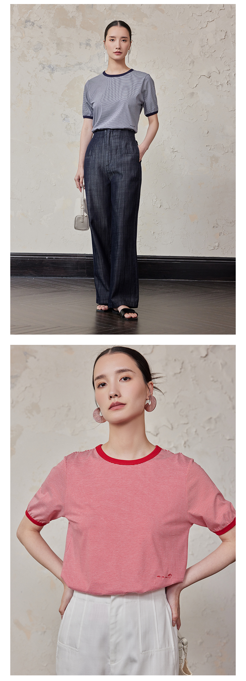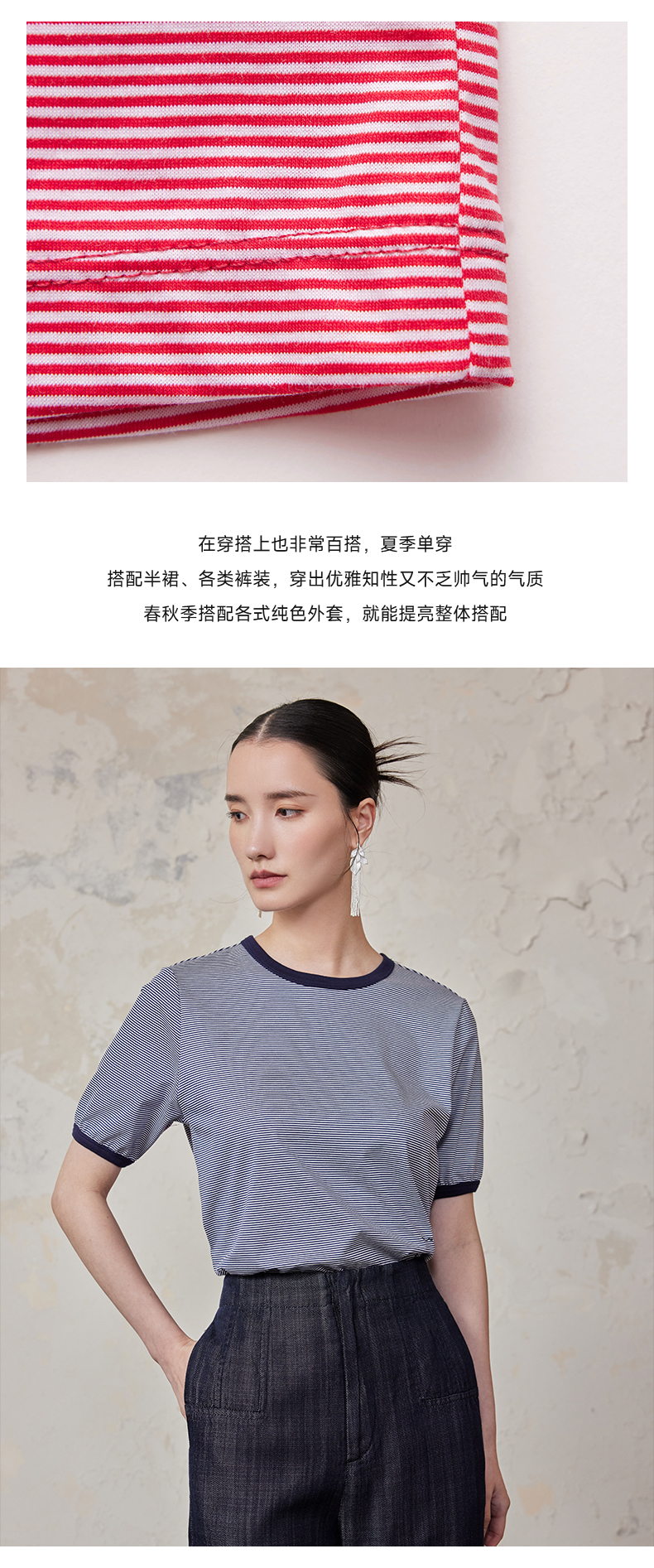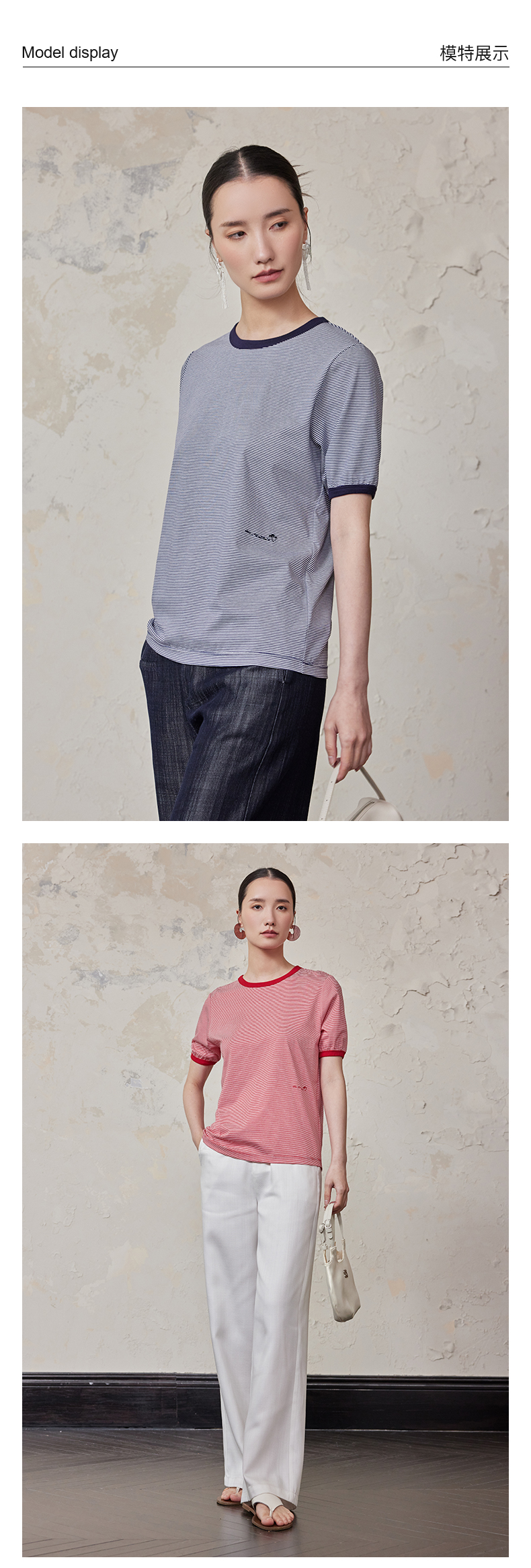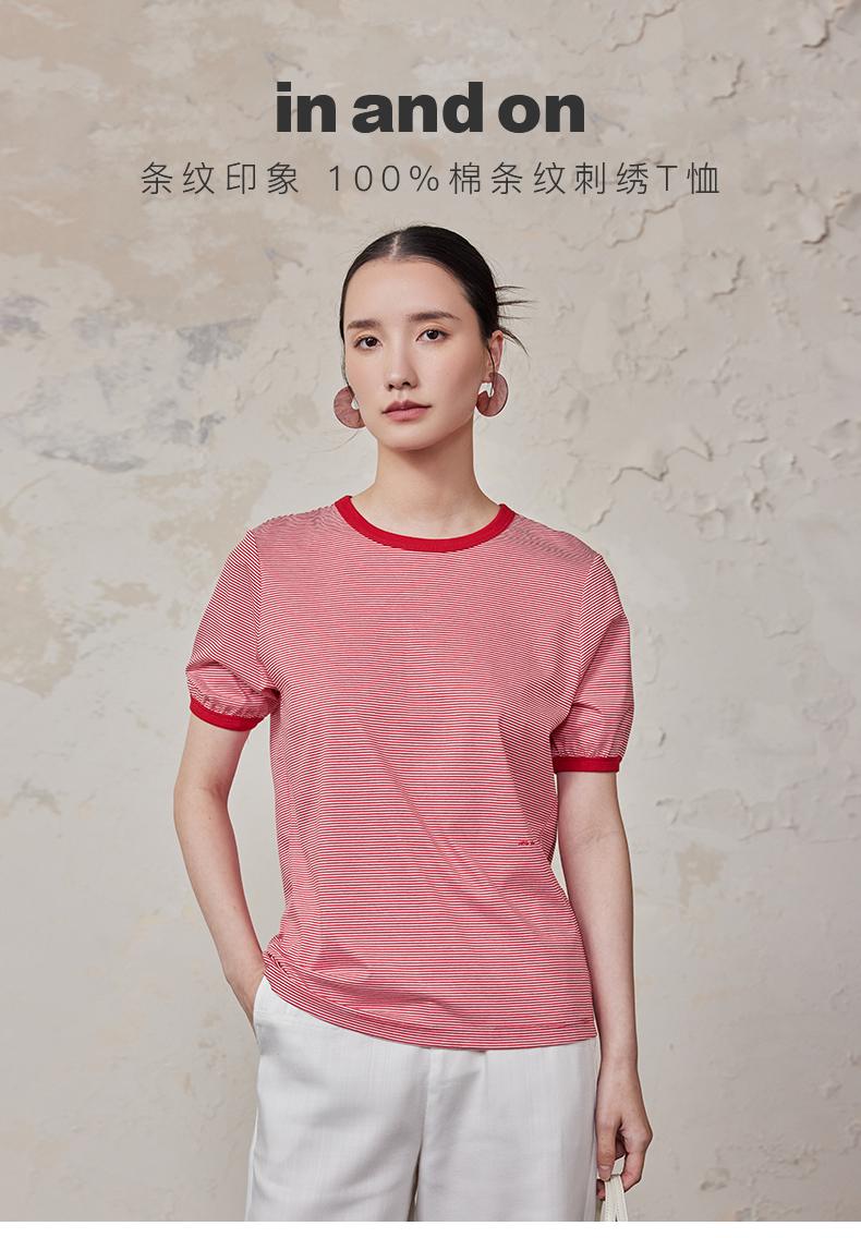 IN AND ON 条纹印象 100%棉条纹刺绣T恤54324