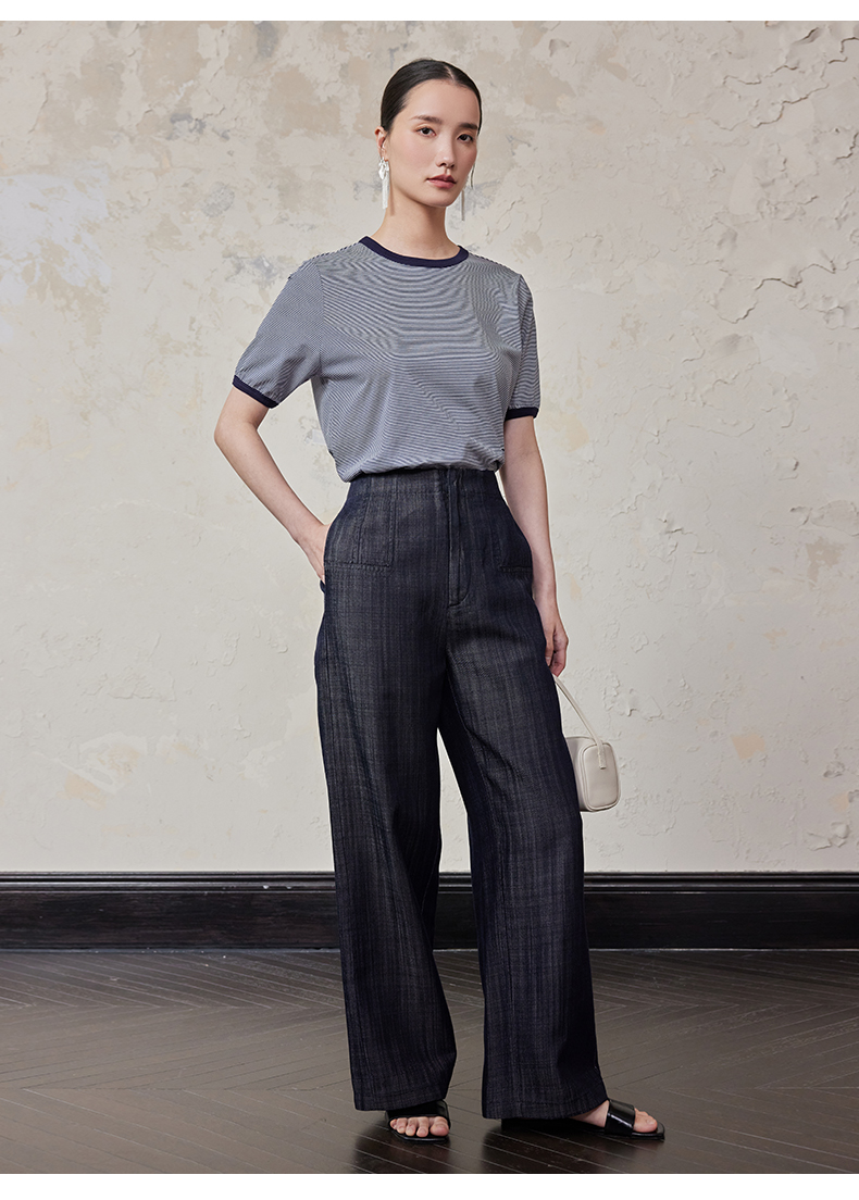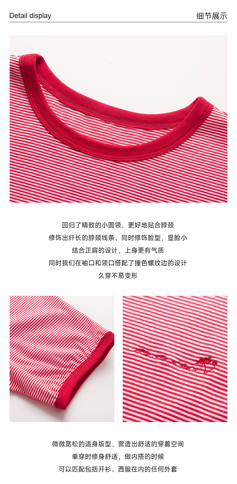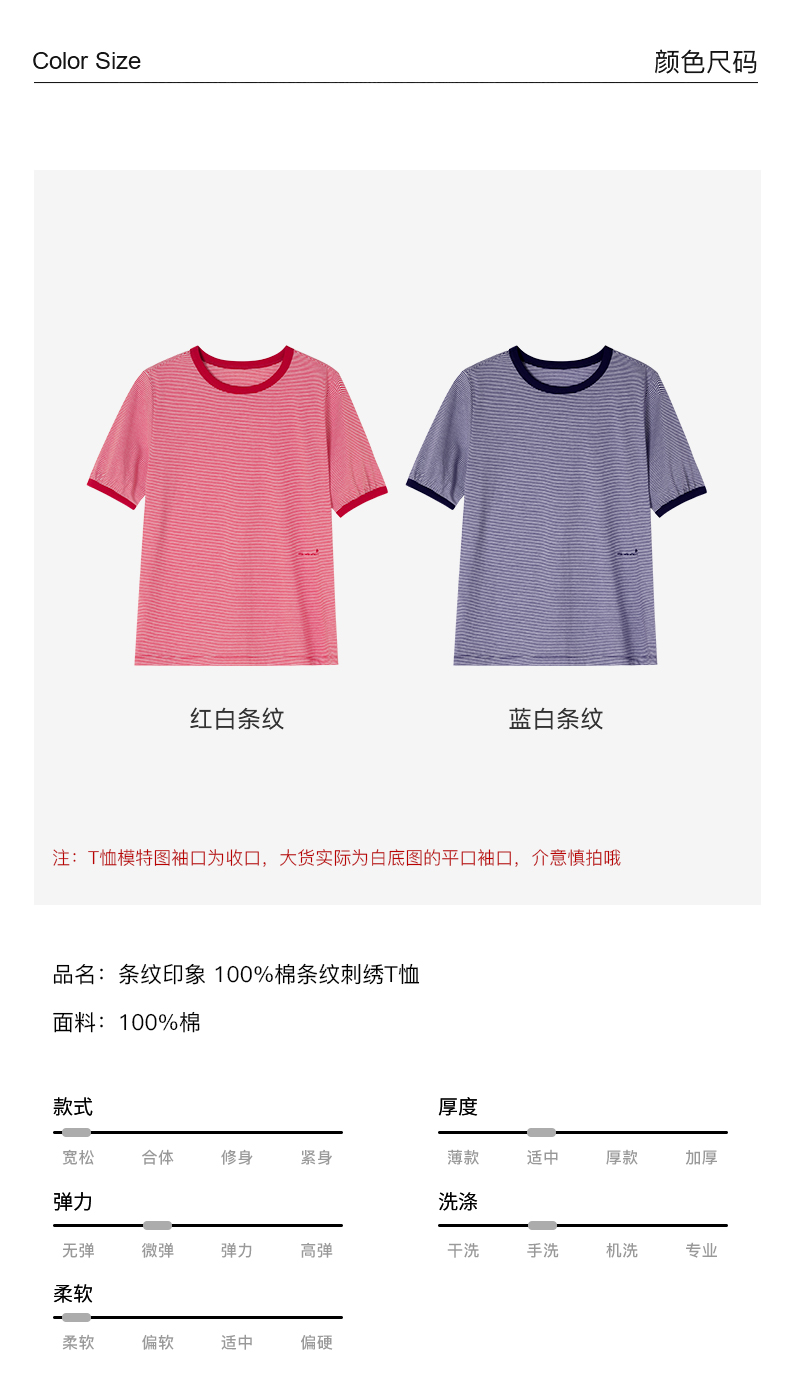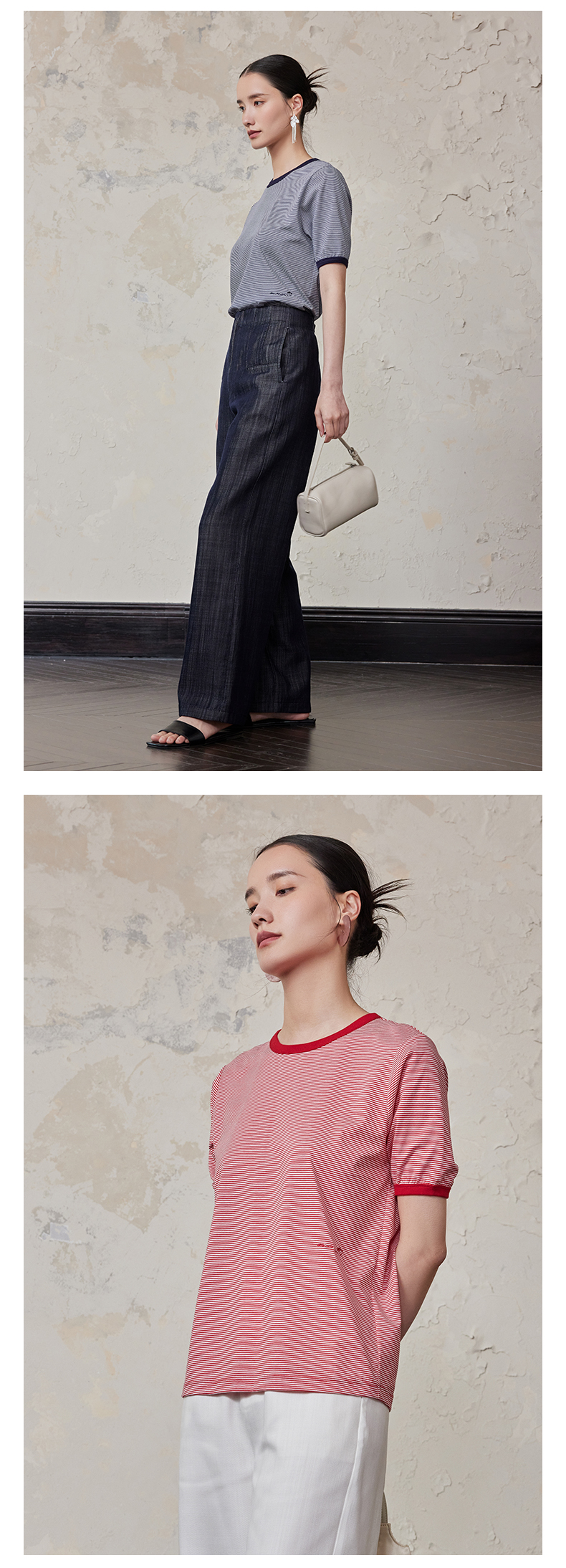 IN AND ON 条纹印象 100%棉条纹刺绣T恤54324