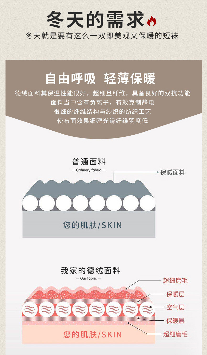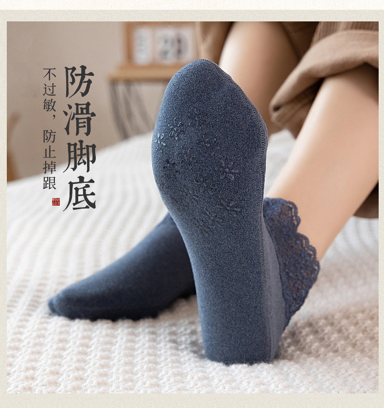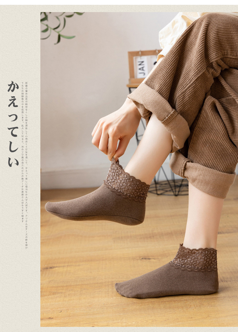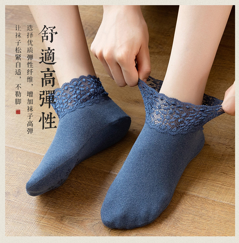 TZW-袜子女秋冬保暖加厚防滑蕾丝短筒松口秋季月子袜雪地袜地板袜