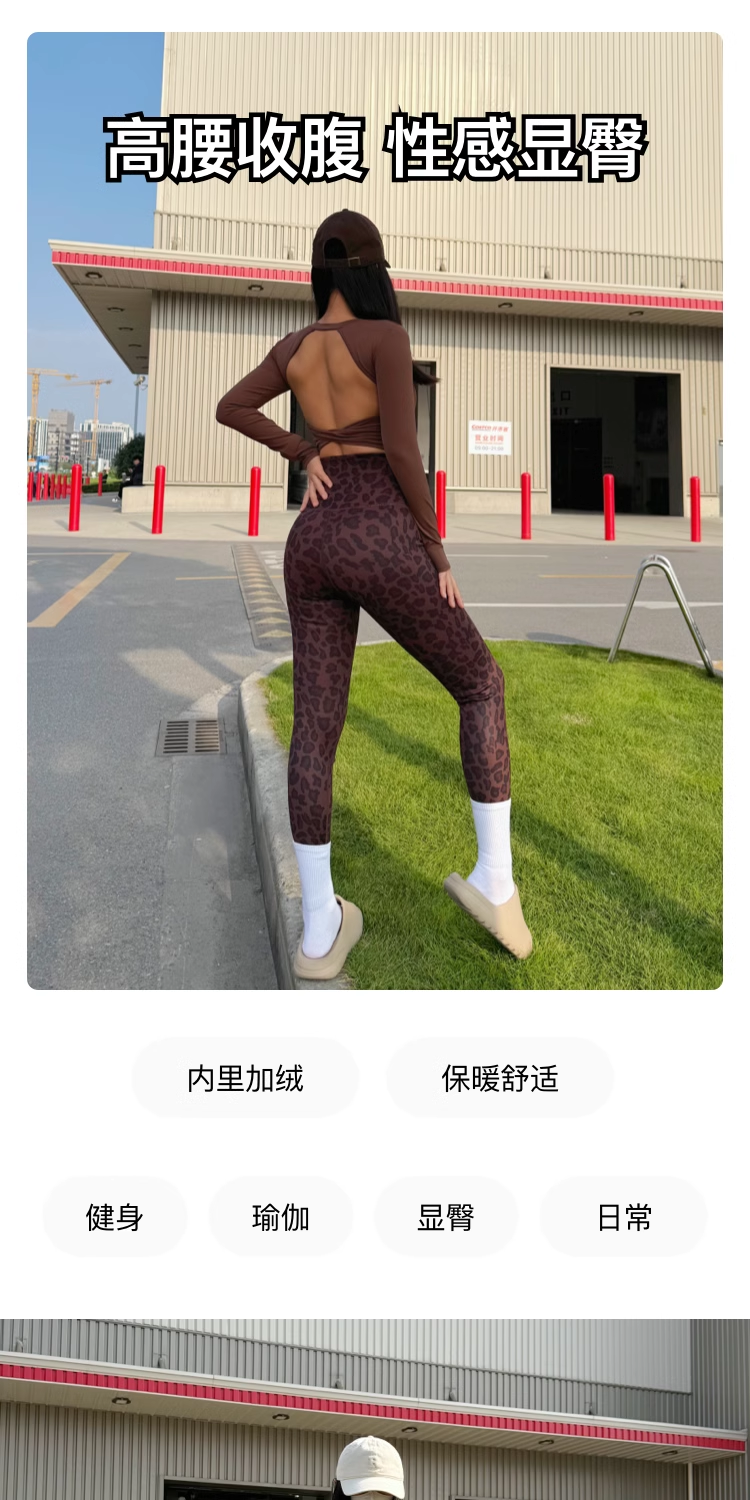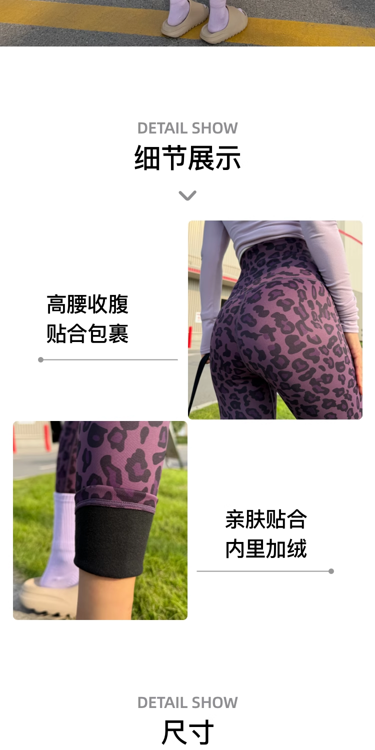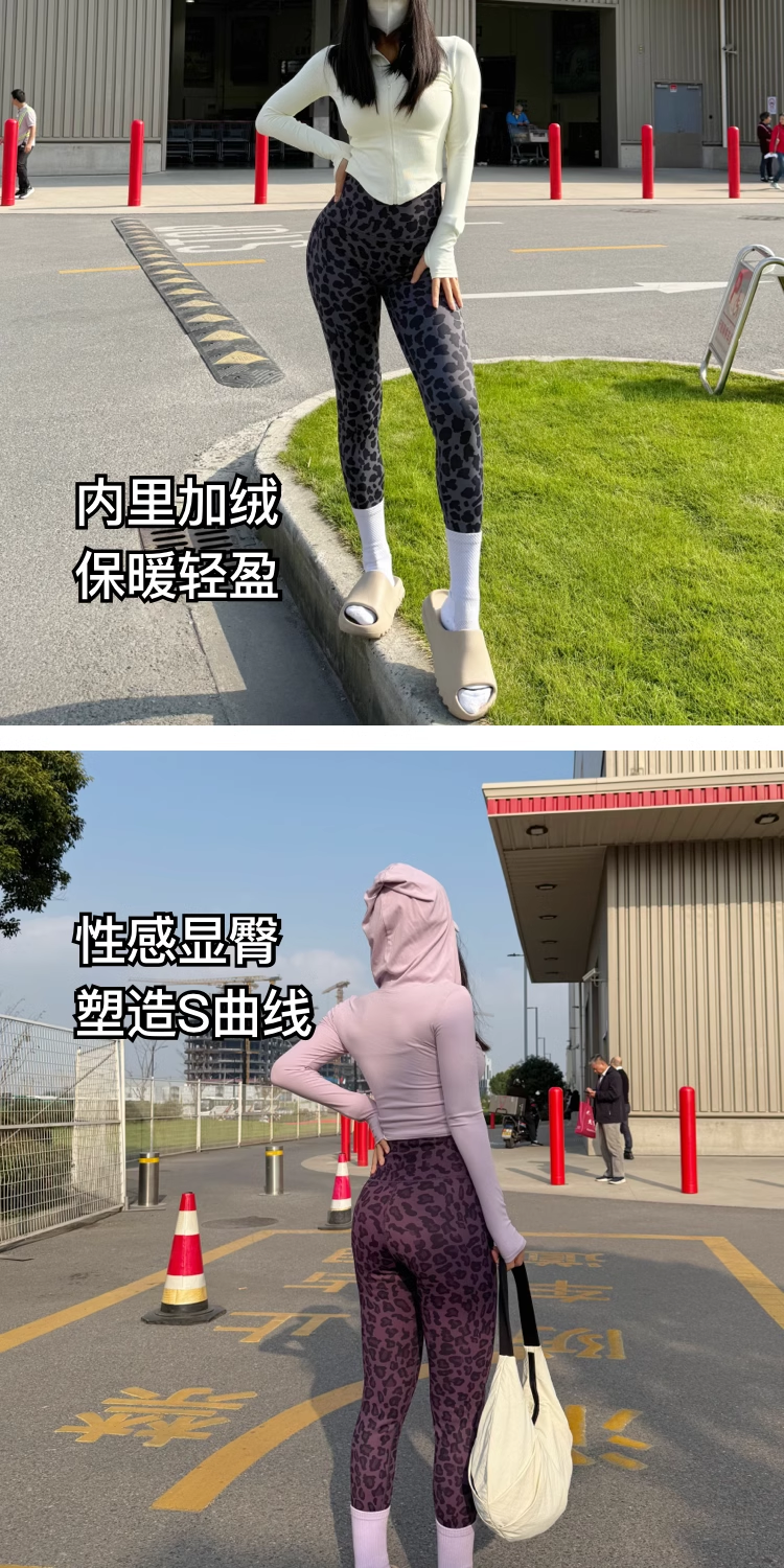 跃牌【禅语梵心】豹纹加绒无痕裸感保暖高腰提臀跑步运动长裤CK3052
