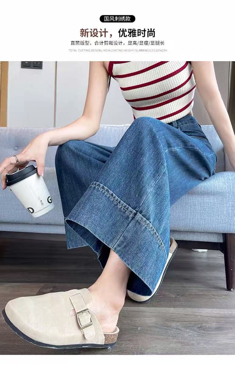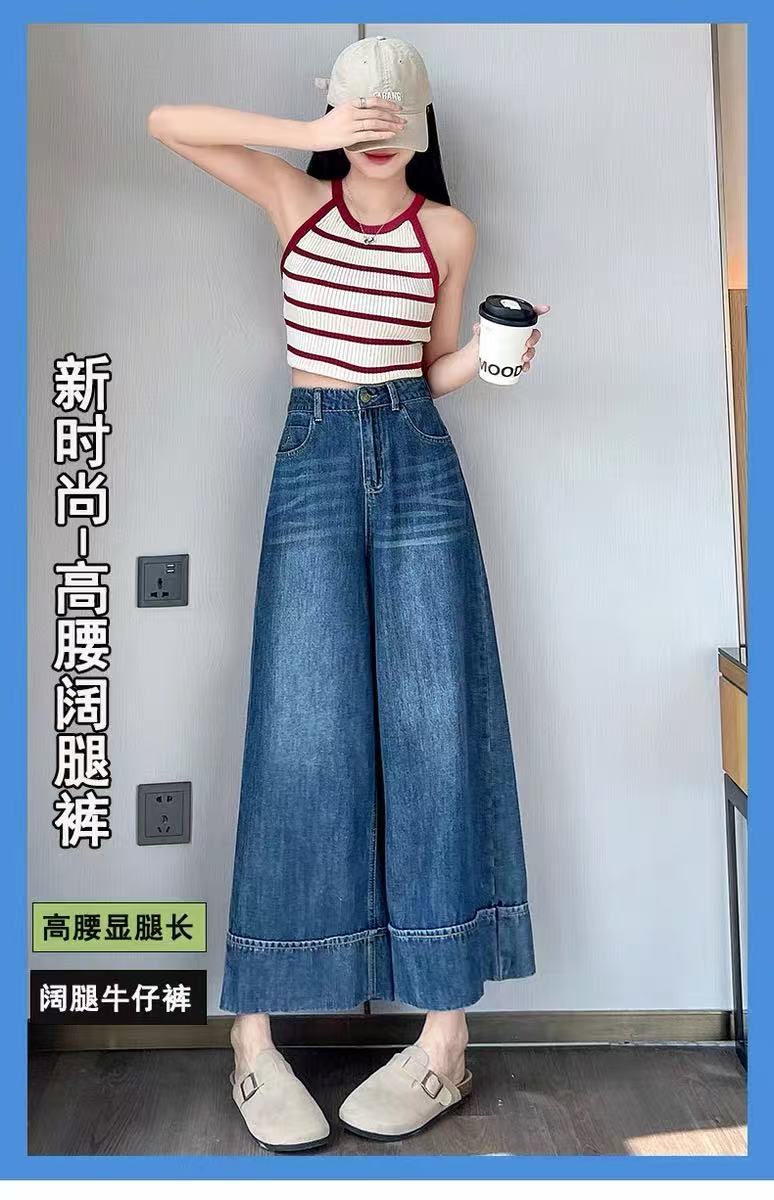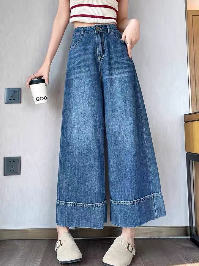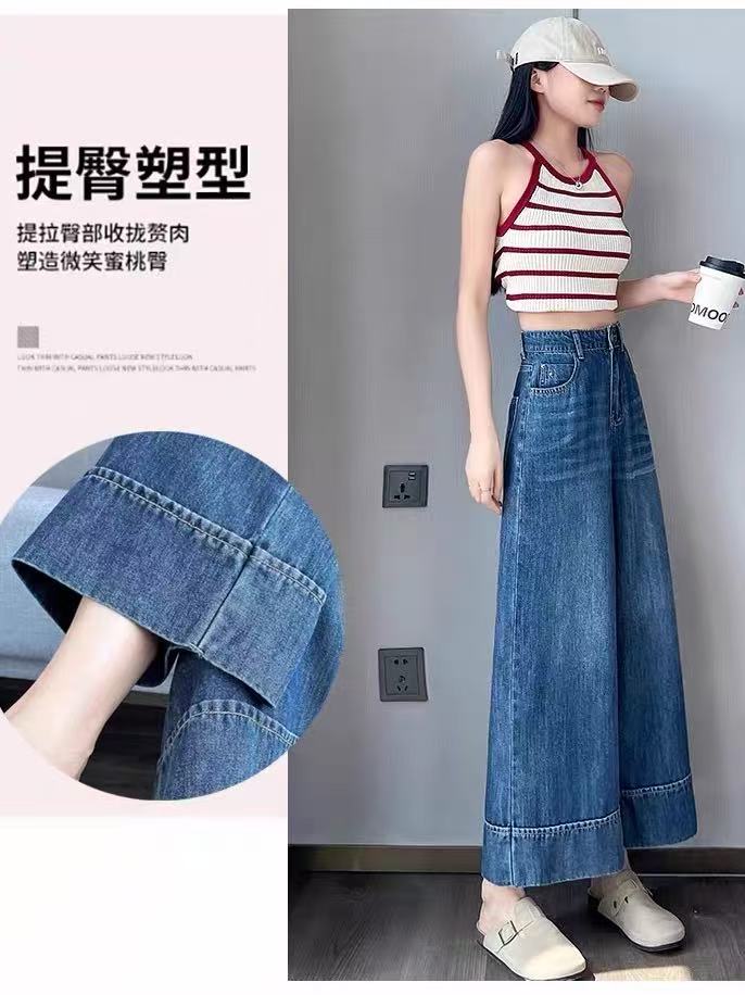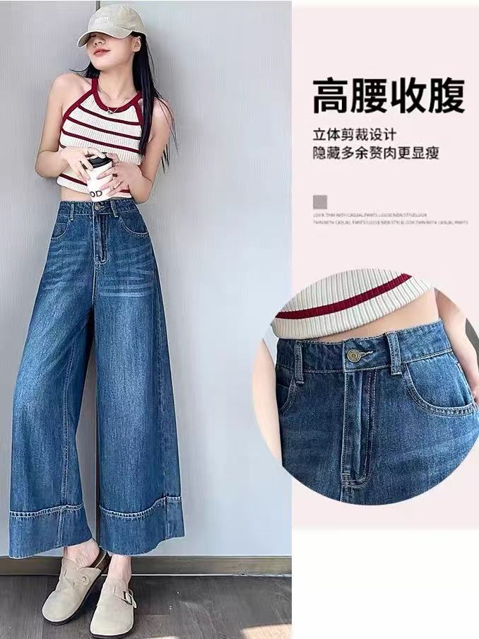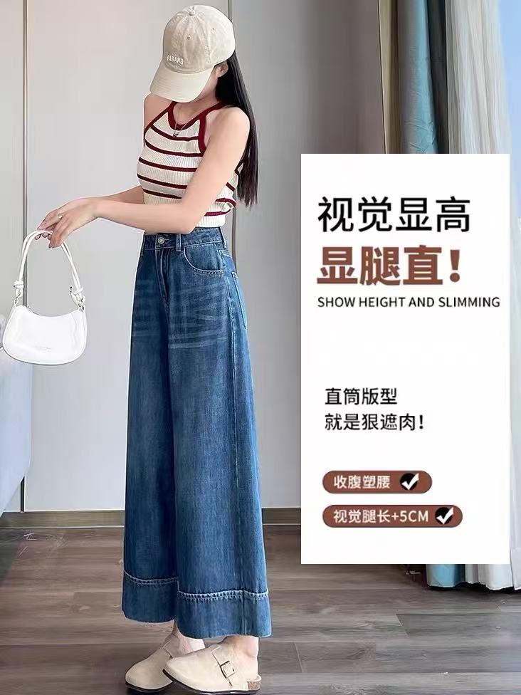 软料牛仔【自营】衣周期 8968(87%棉➕13%莱赛尔)薄款百搭阔腿裤宽边牛仔裤-喜出