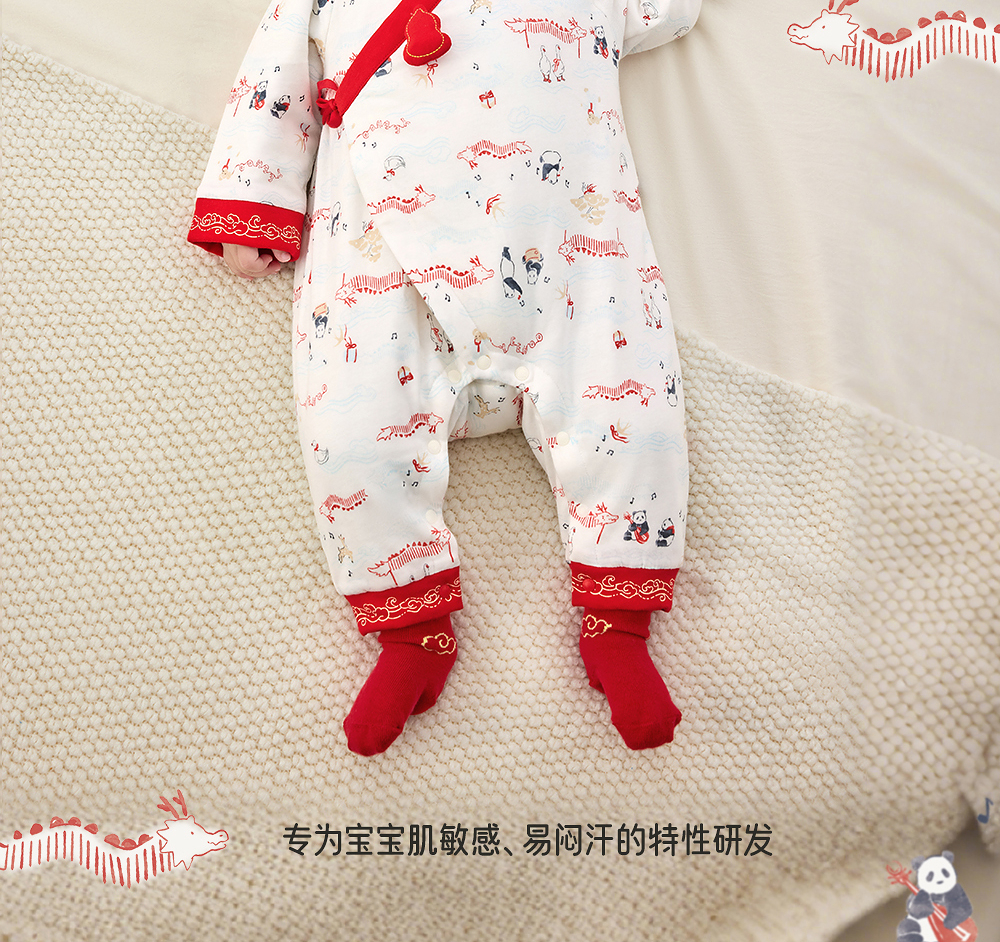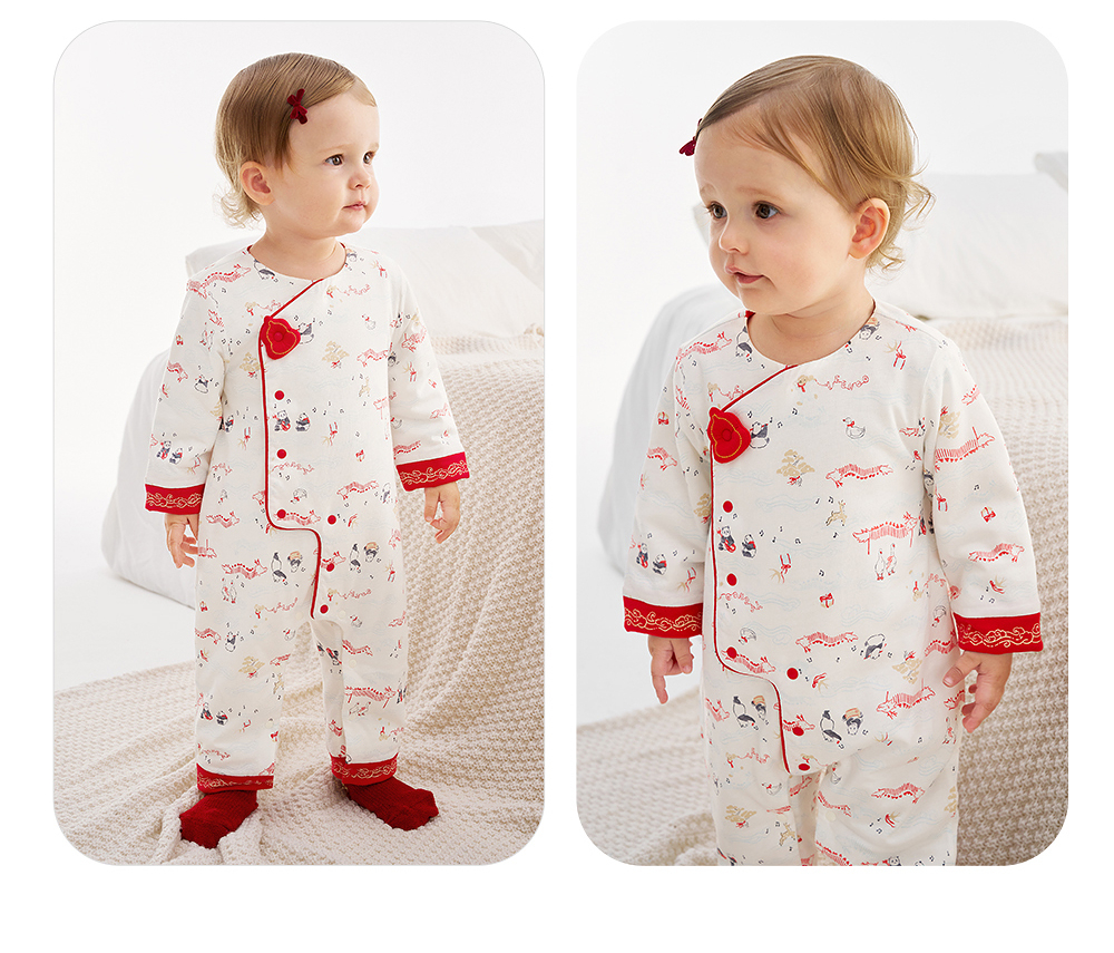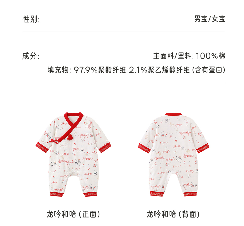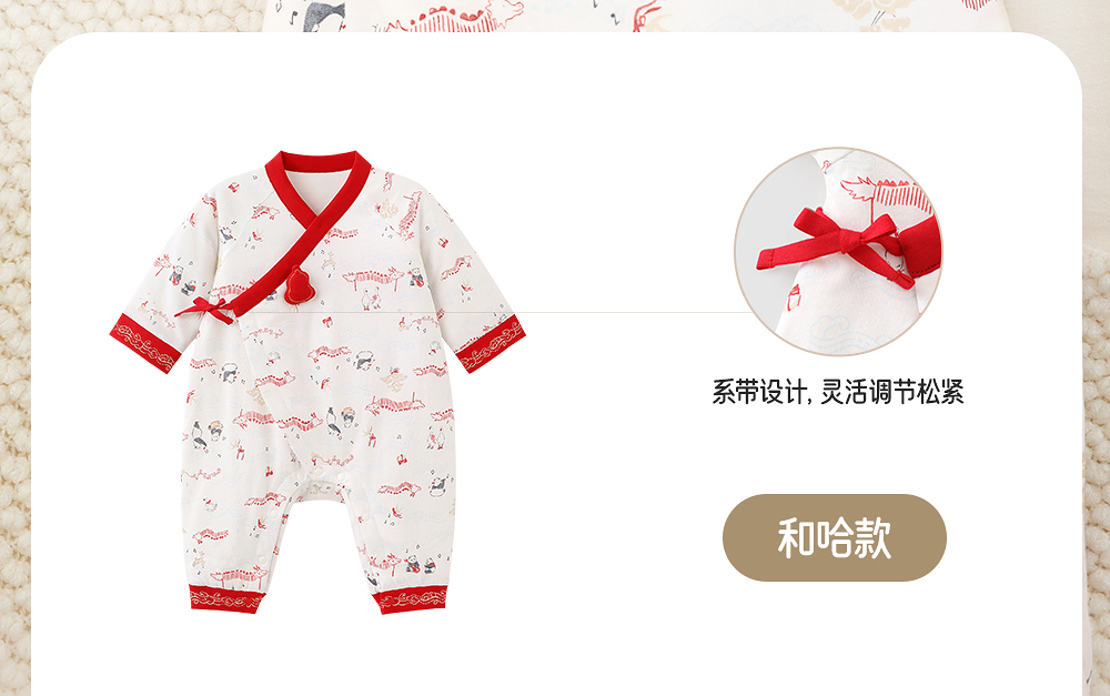 【商场同款】英氏新生儿满月百天衣服秋冬新款初生婴儿纯棉连体衣