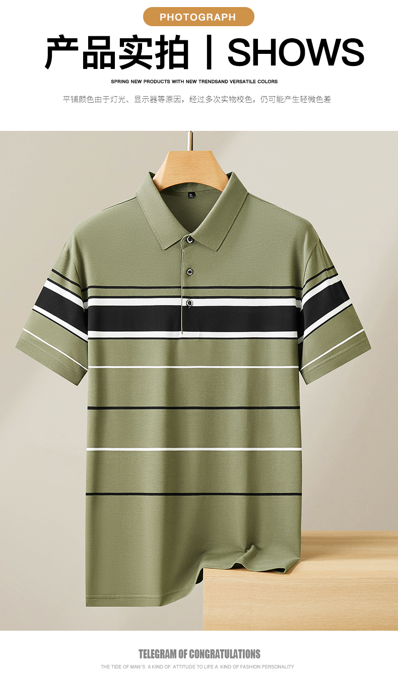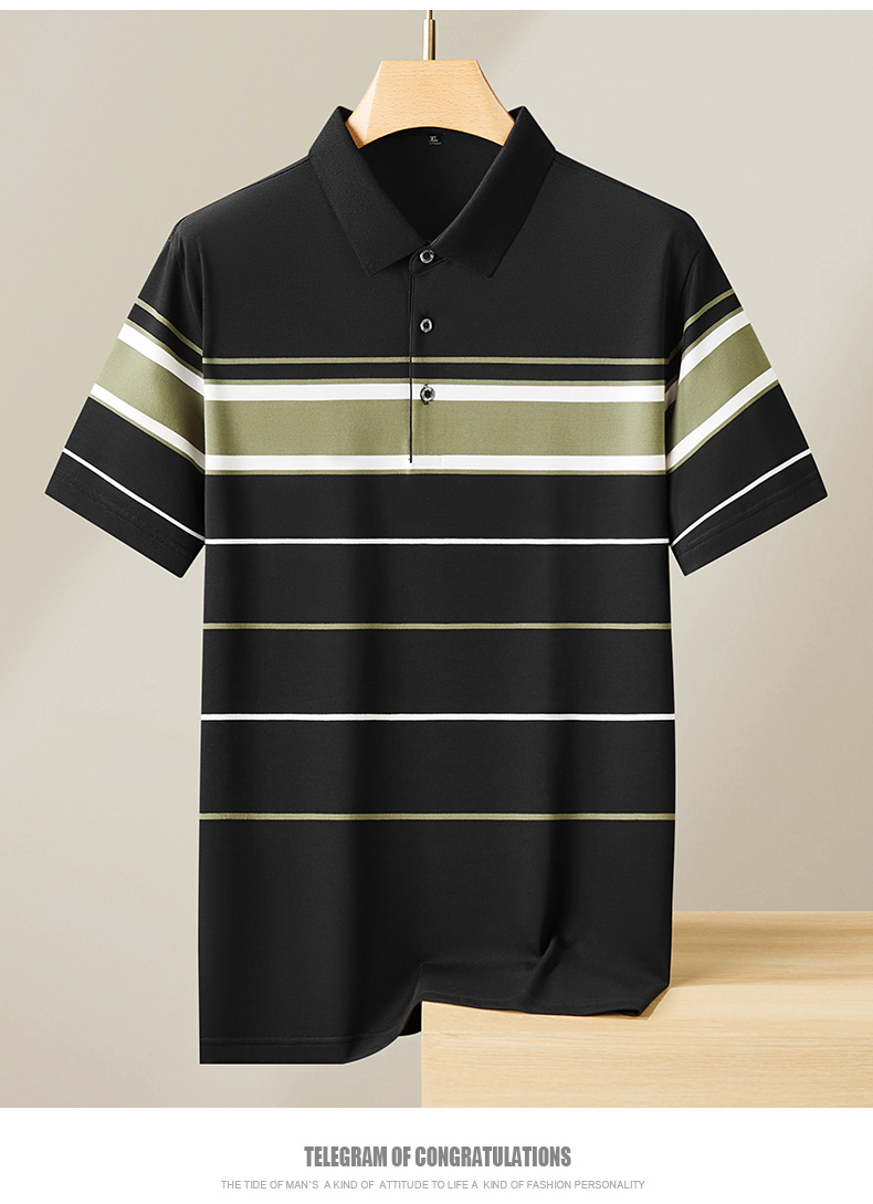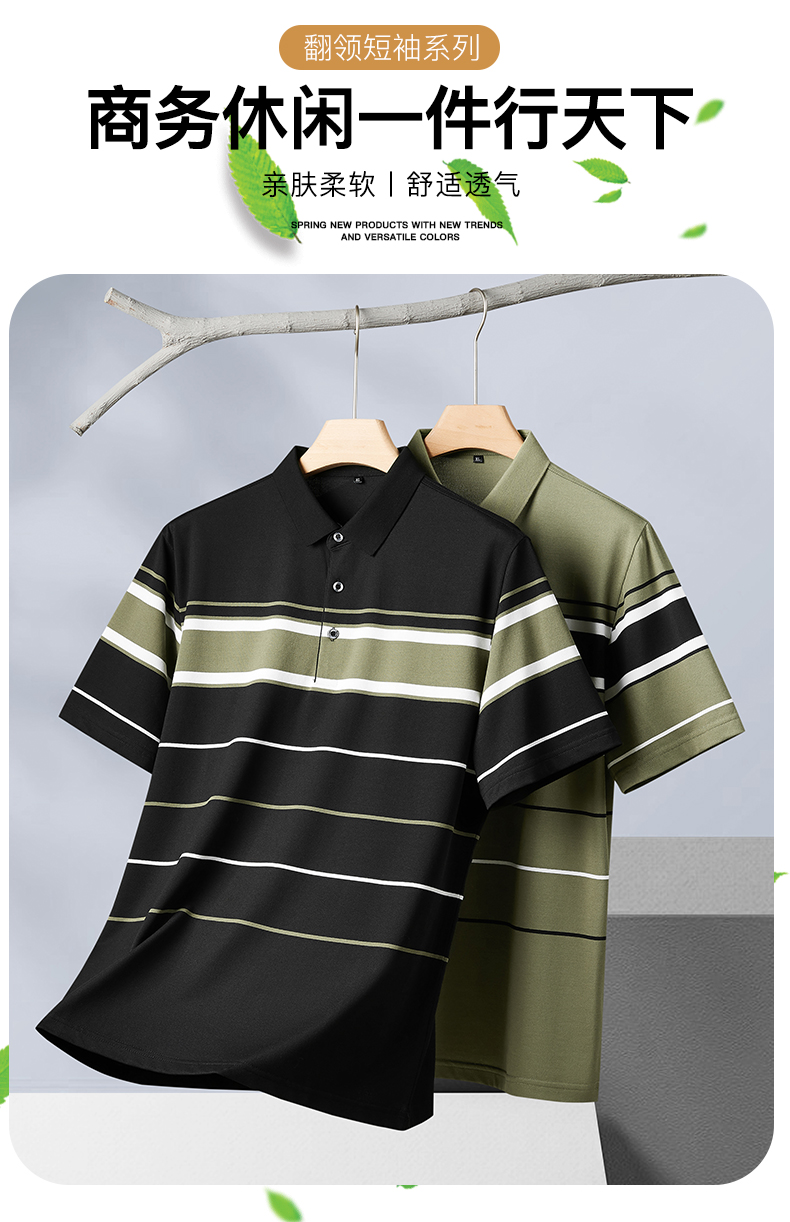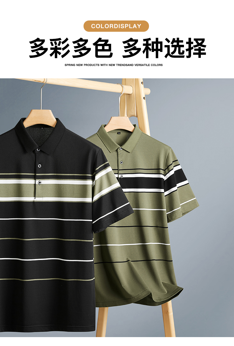 【新款DPF】大依优型大码条纹短袖Polo衫翻领加肥加大男装大号大码上衣男士休闲半袖夏季
