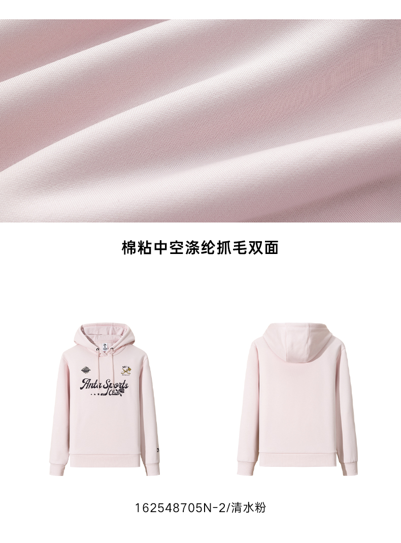 安踏连帽卫衣女2025冬季新款加绒帽衫宽松长袖运动上衣162548705N