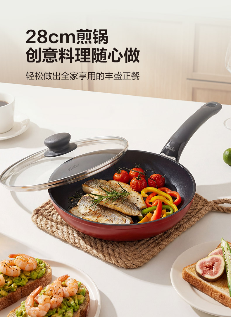 菲仕乐 瓷安不粘炒锅-赠配套玻璃盖及硅胶铲