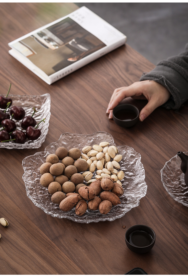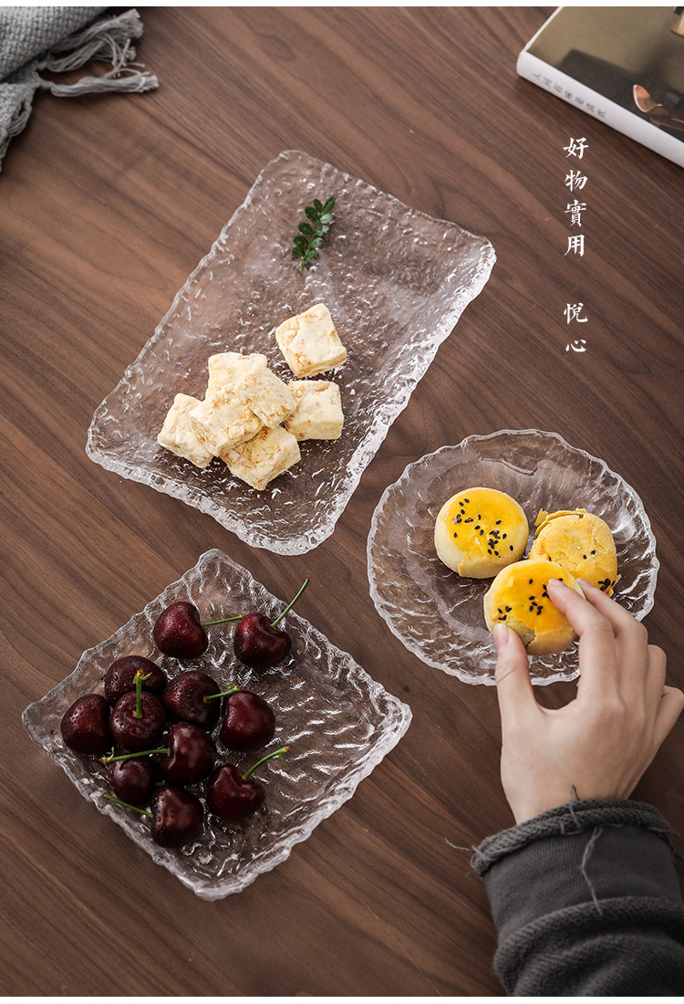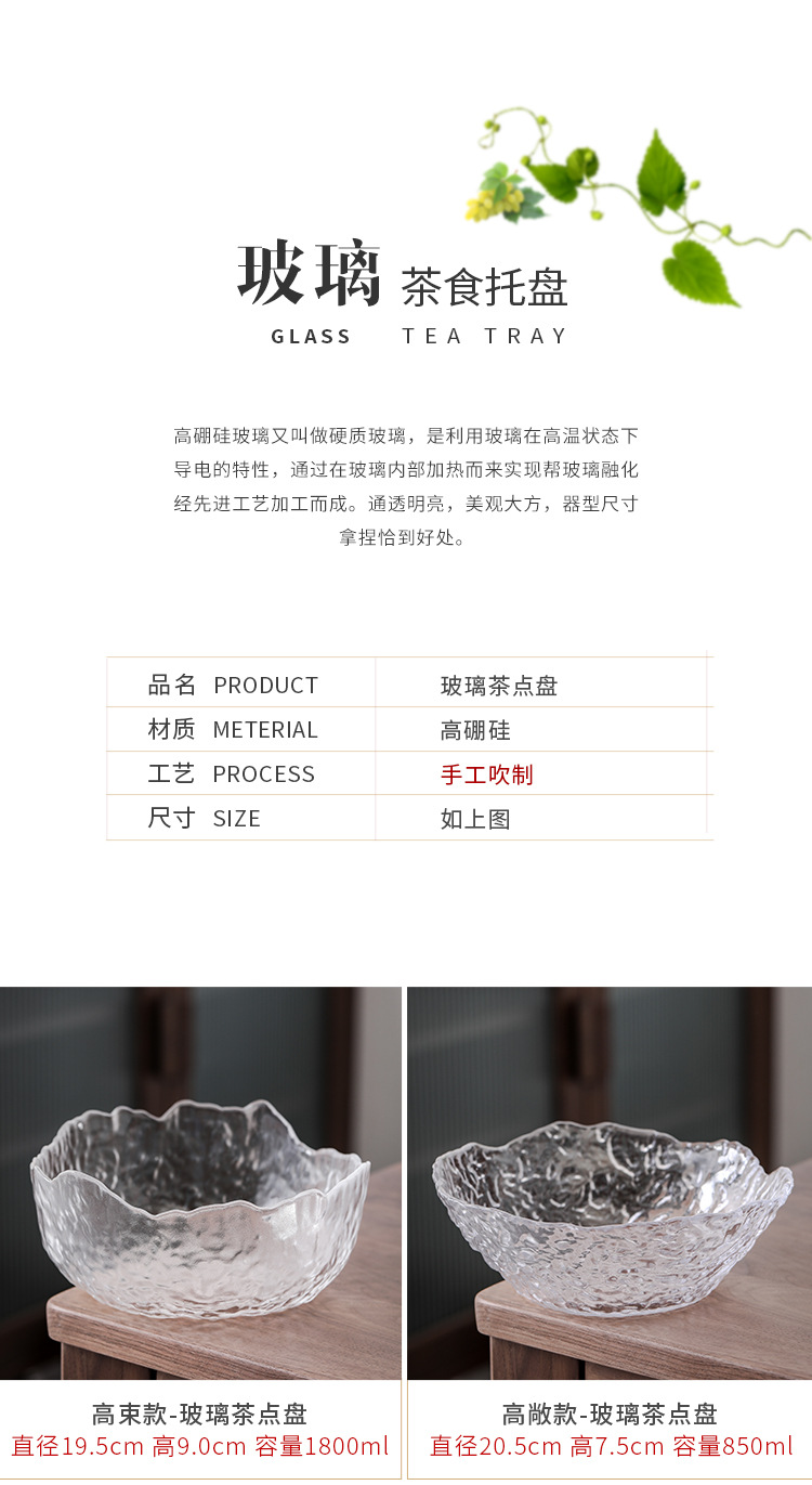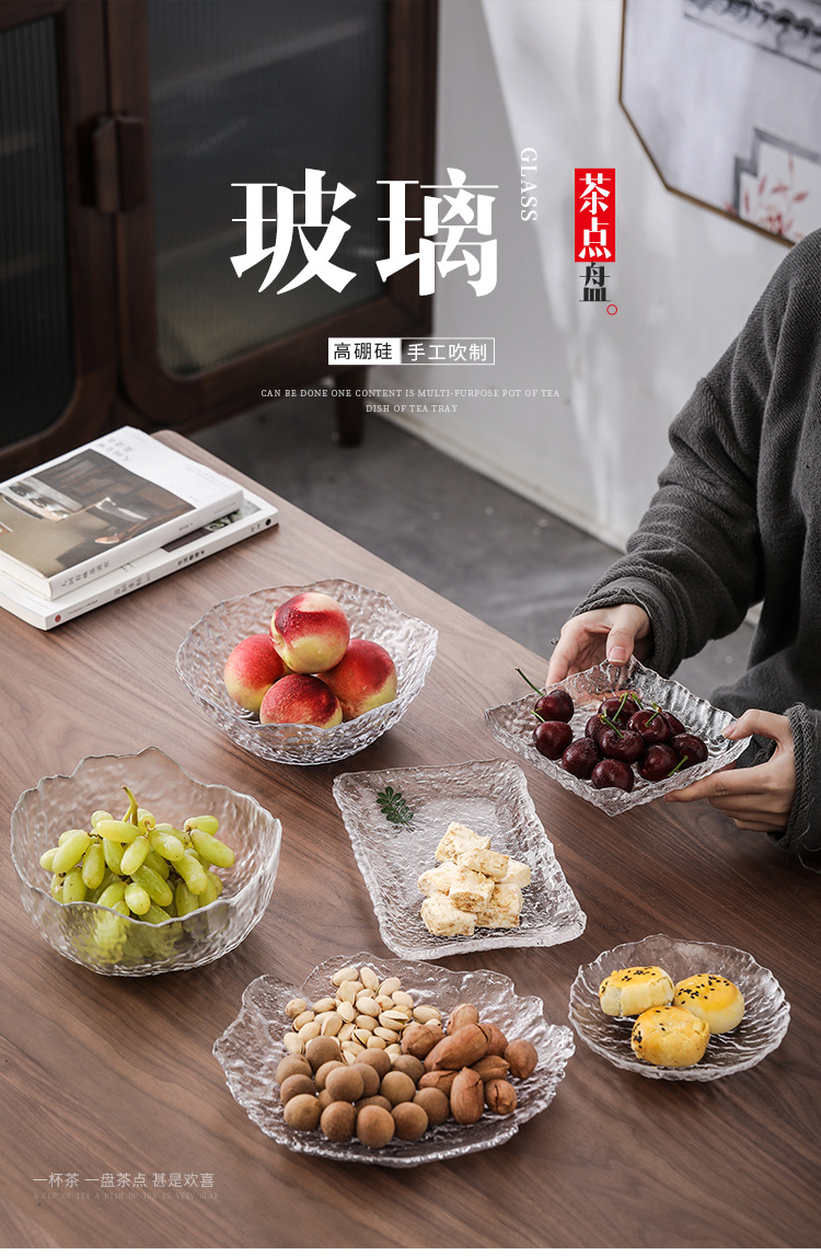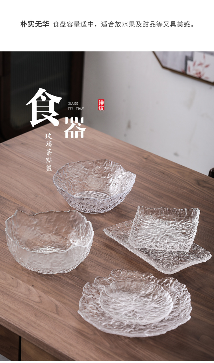 「玻璃果盘 」日式简约茶点盘 现代客厅家用大小号水晶果碟 茶道零食盘