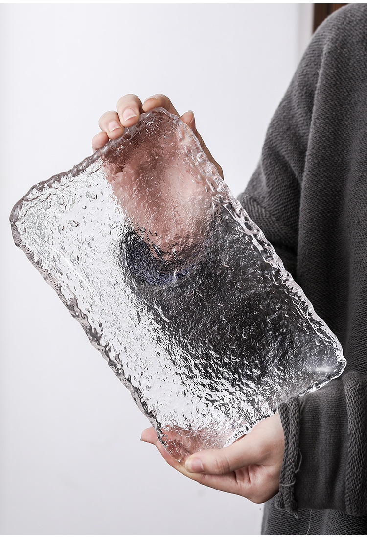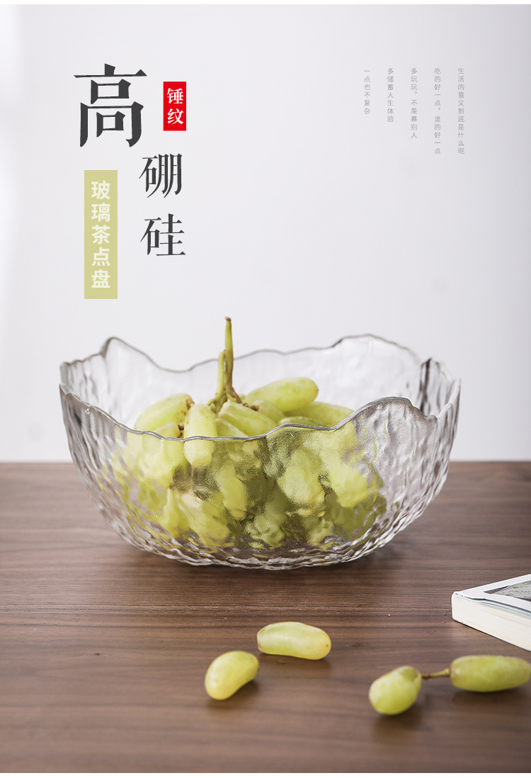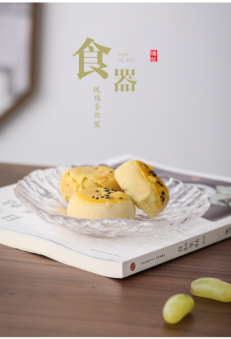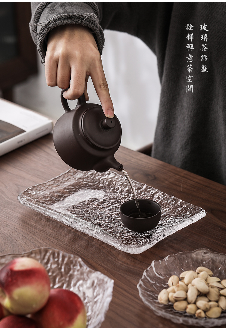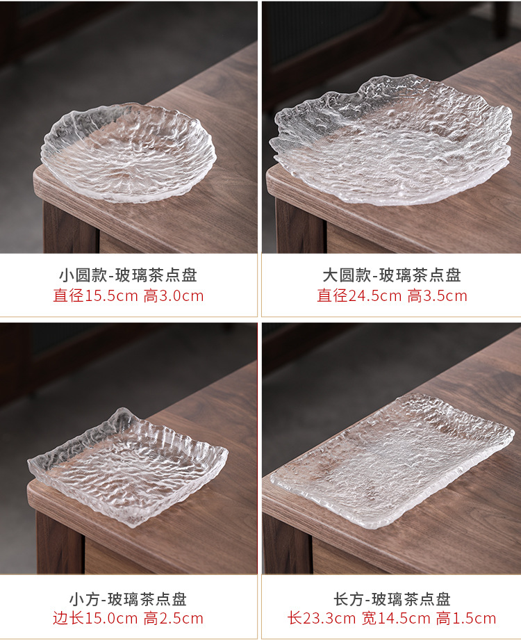 「玻璃果盘 」日式简约茶点盘 现代客厅家用大小号水晶果碟 茶道零食盘