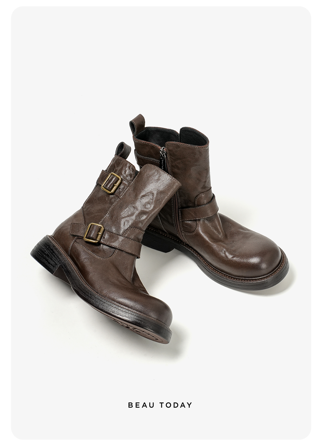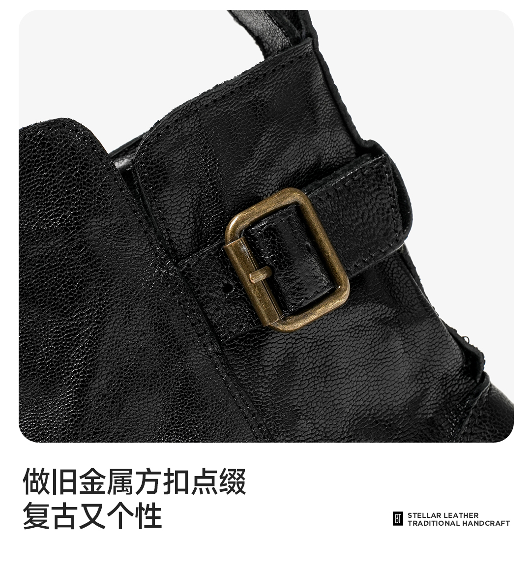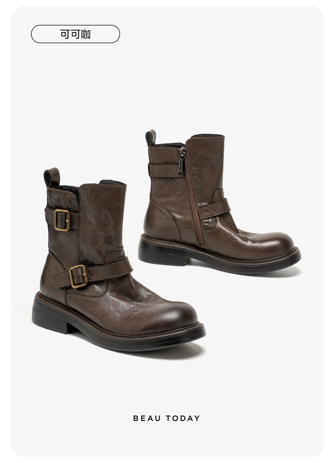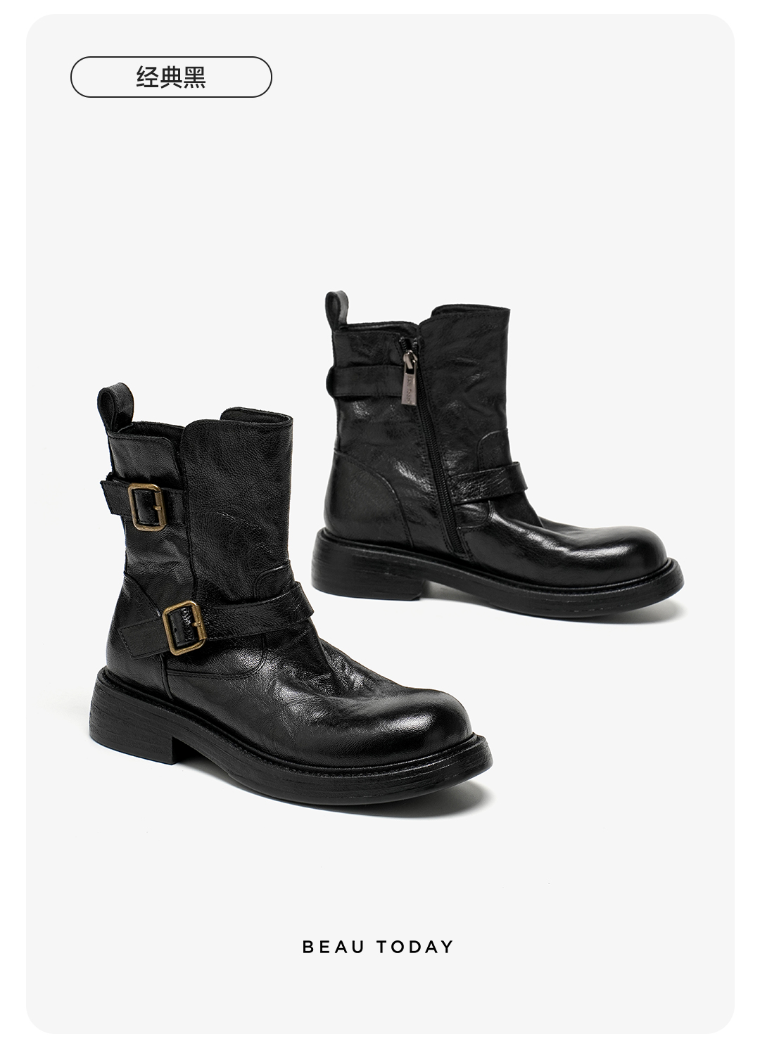 【沈月同款】BeauToday 暗影机车靴羊皮西部短靴
