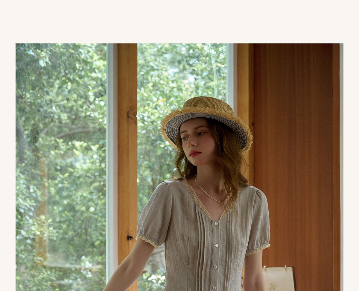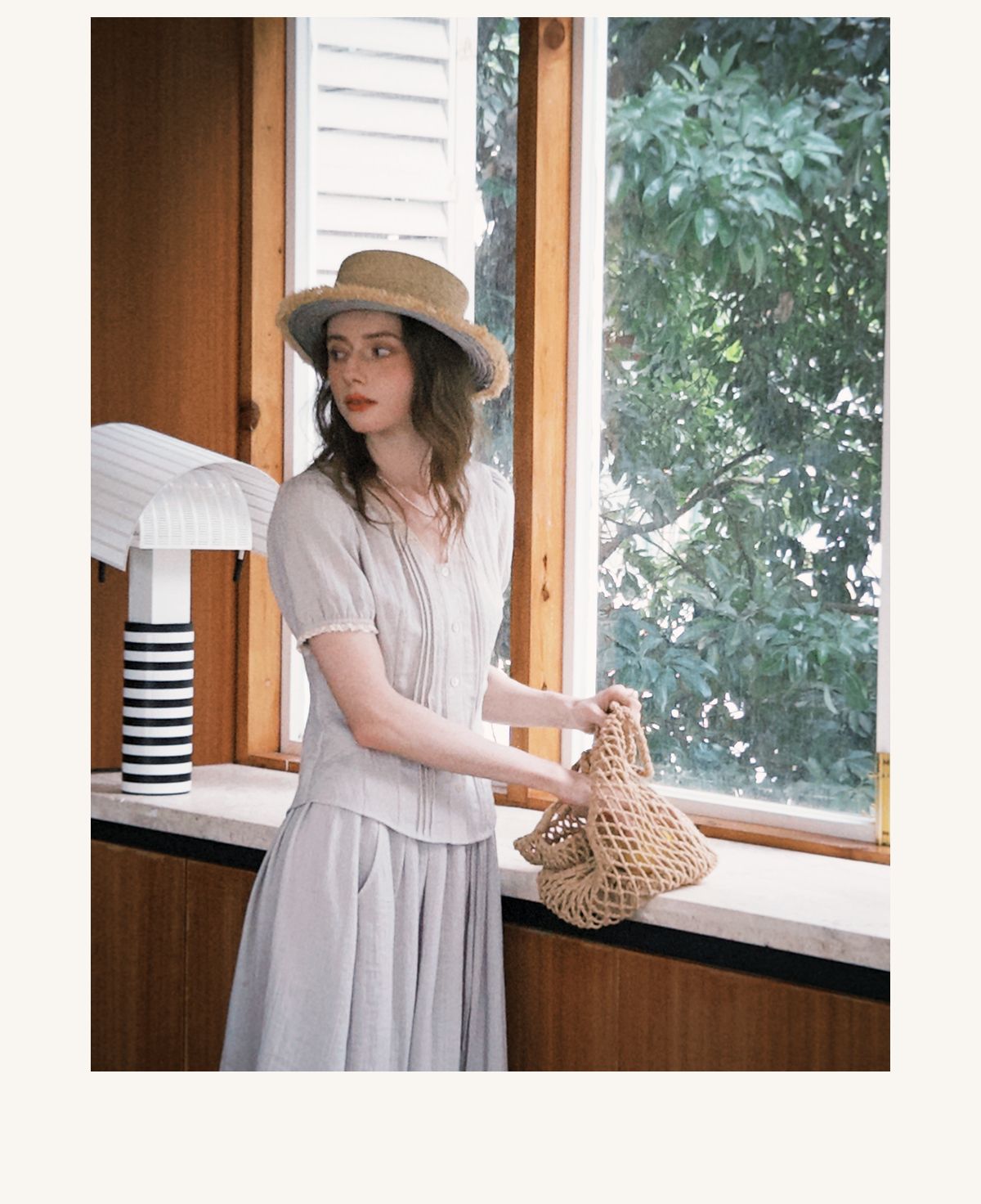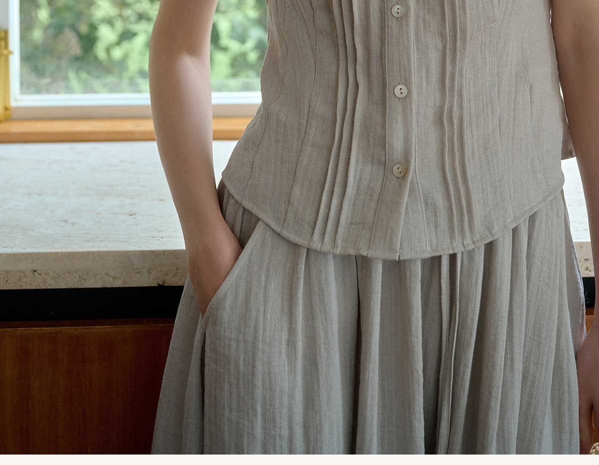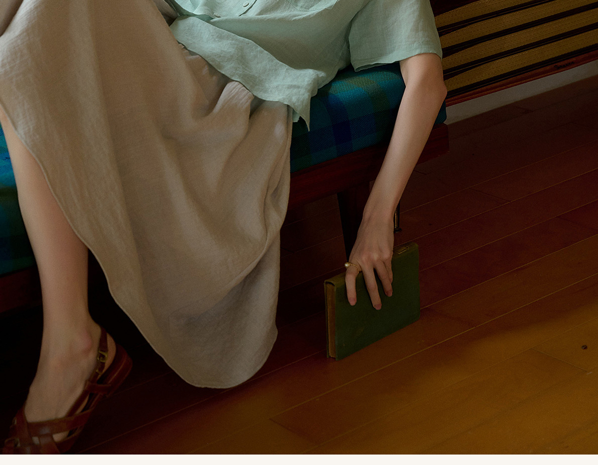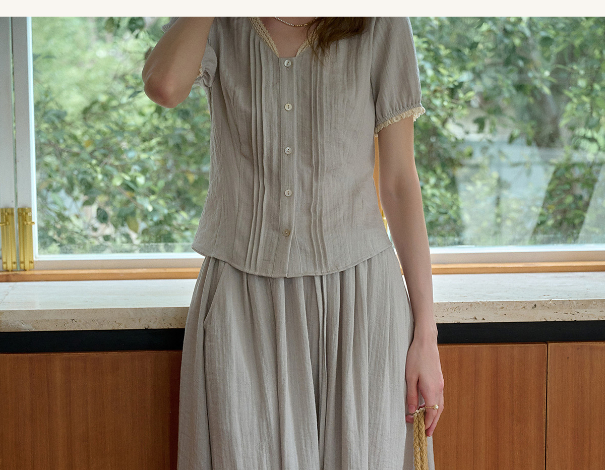 (小眠专属)SimpleRetro法式v领套装裙通勤亚麻两件套