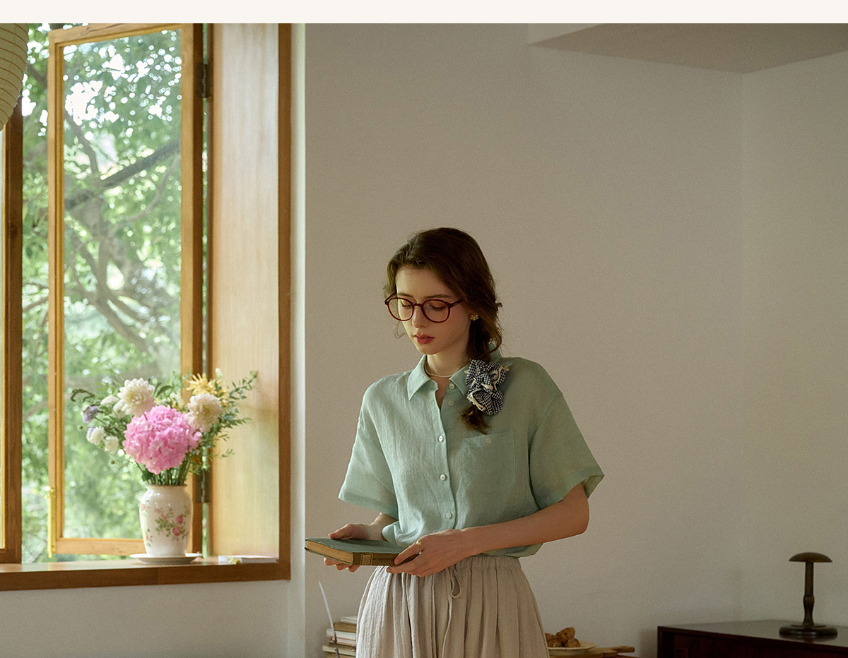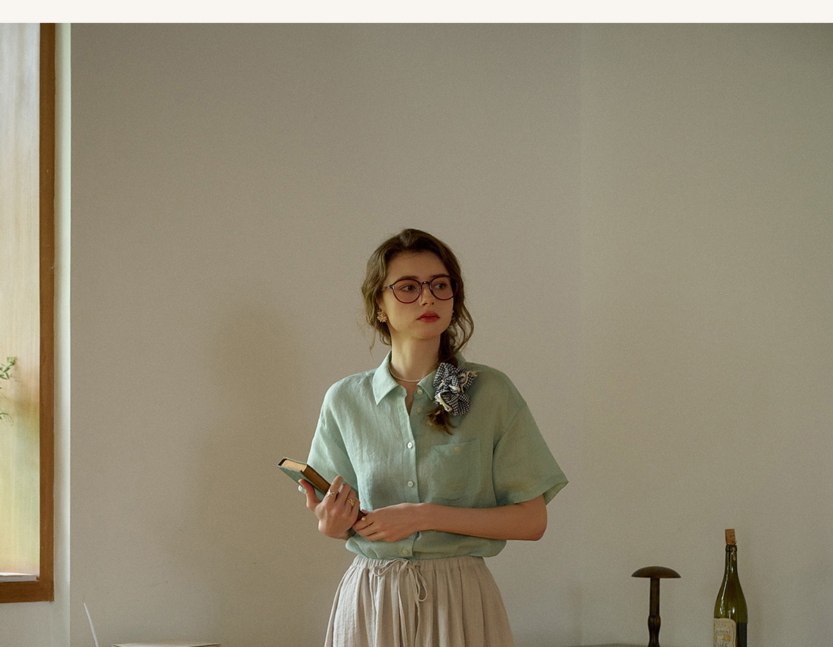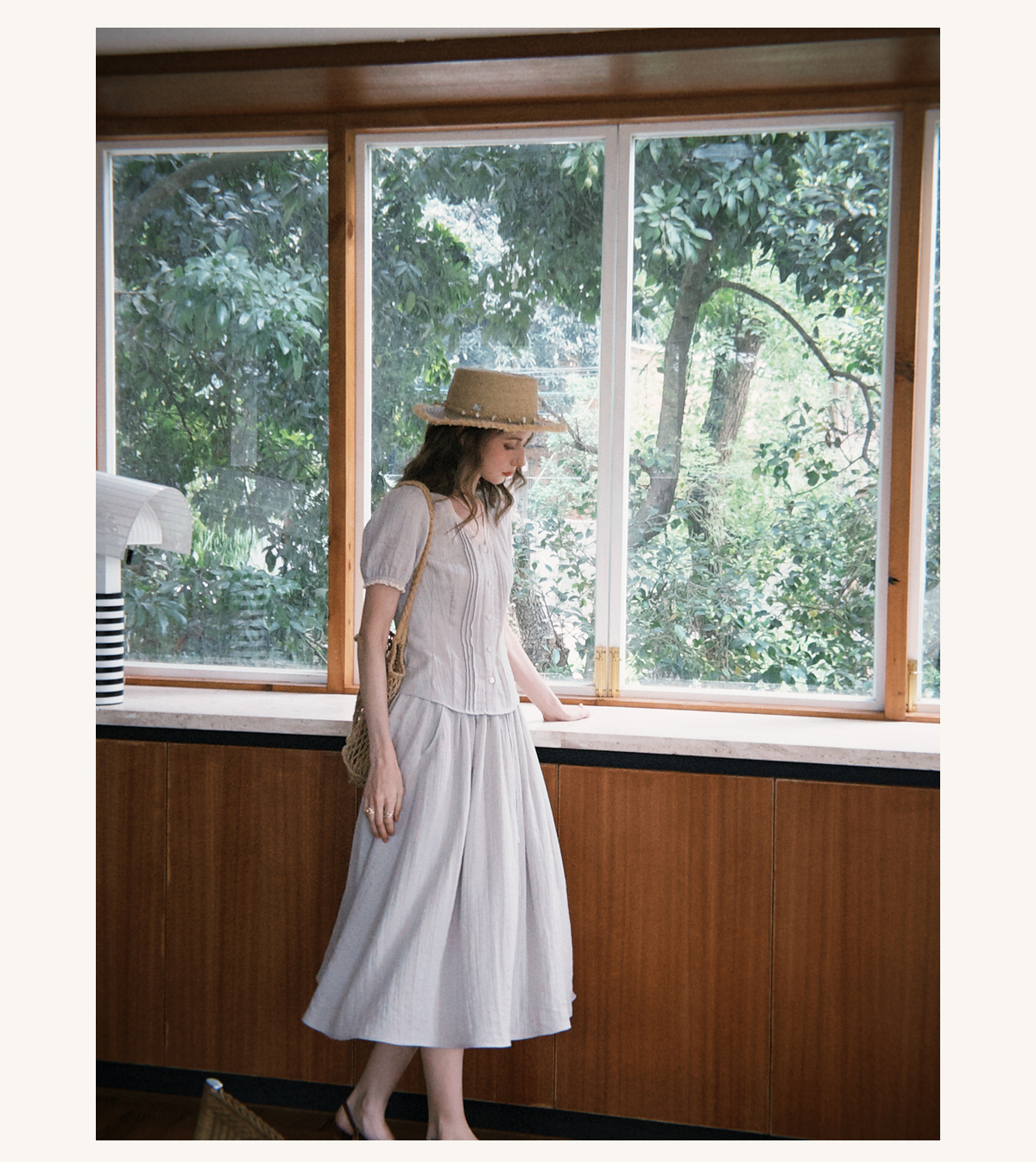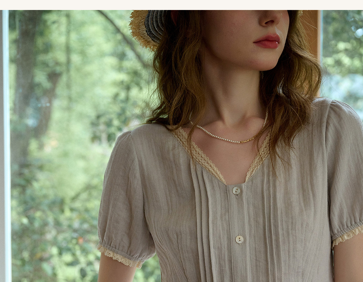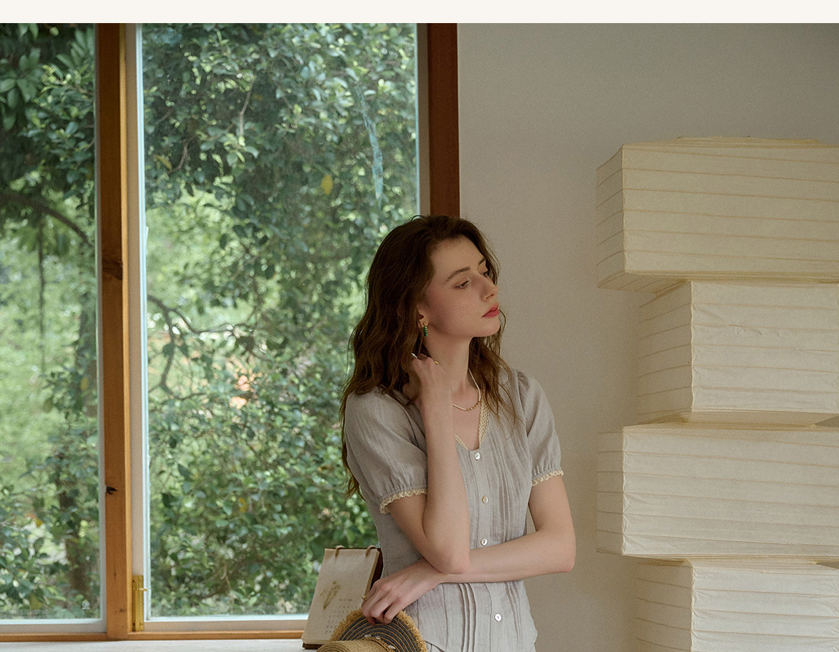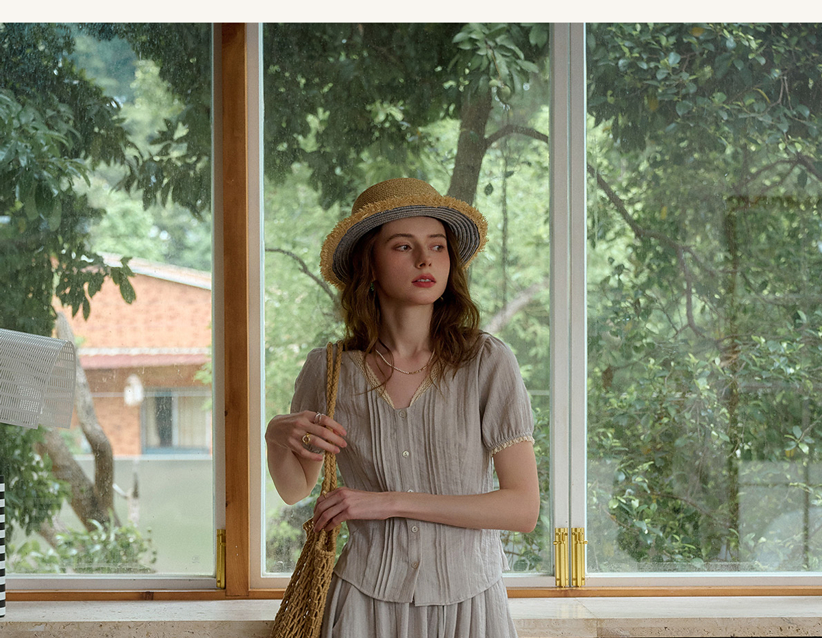 (小眠专属)SimpleRetro法式v领套装裙通勤亚麻两件套