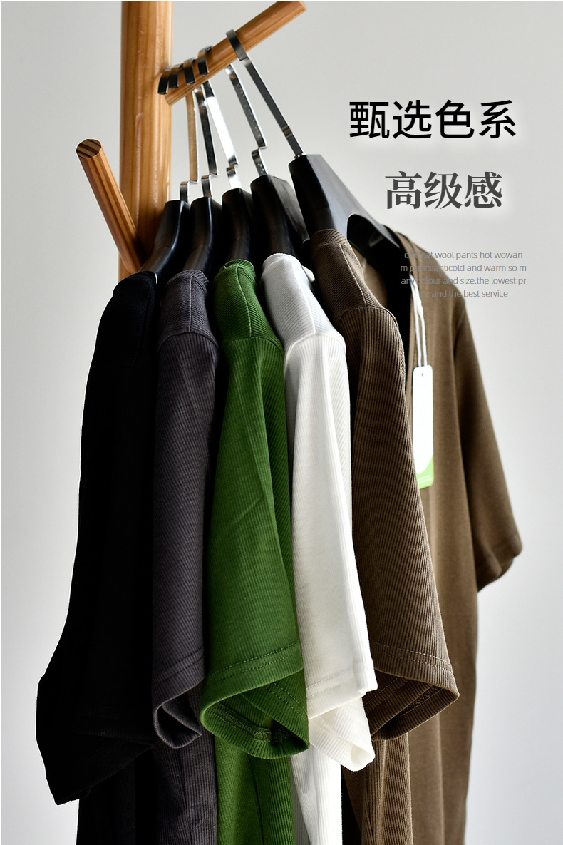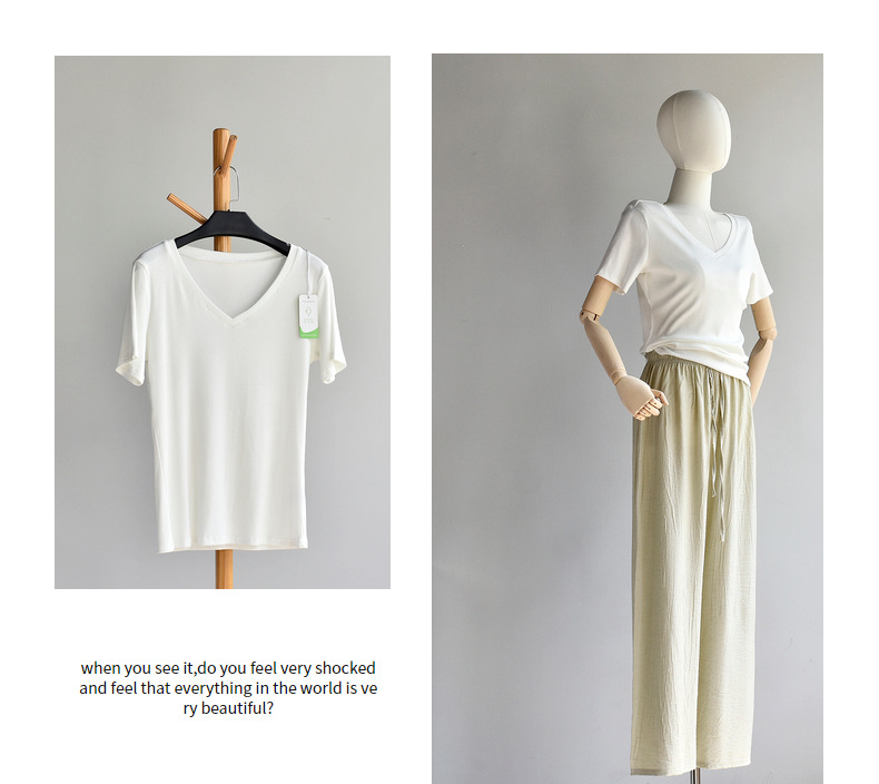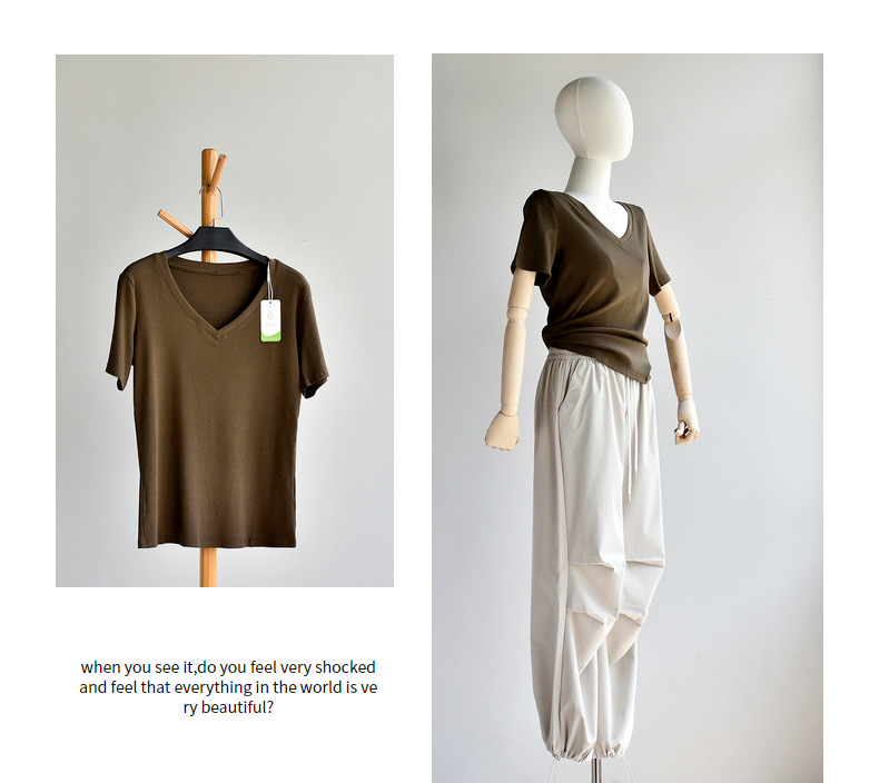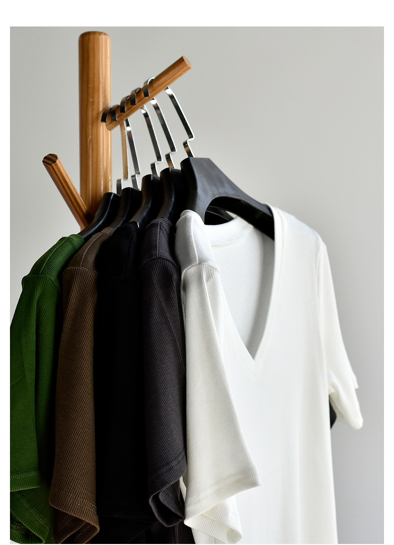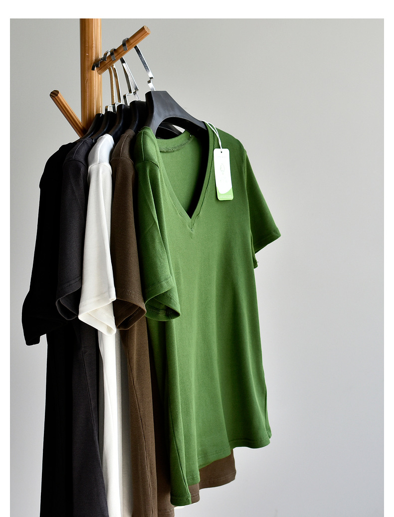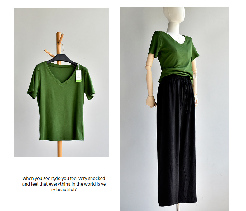 丁摩 【优可丝棉长颈T】黑色v领正肩女夏季半袖短袖t恤女大码上衣5ZF-B227