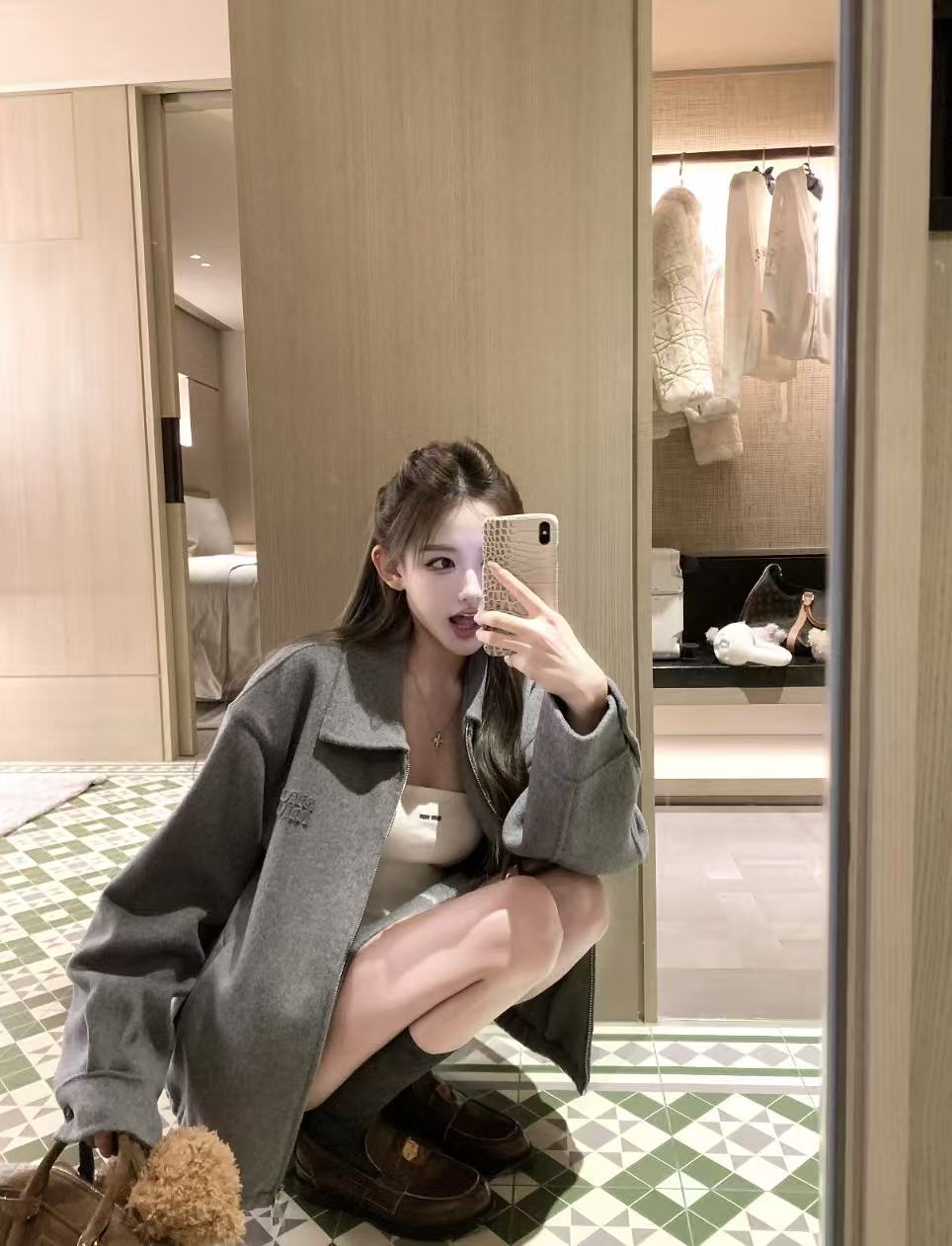 miu家高级灰外套……
