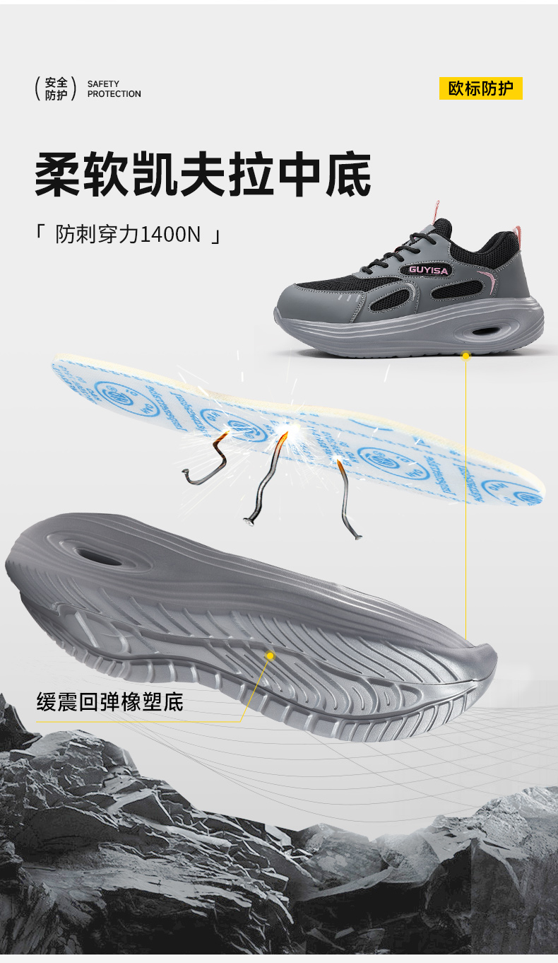 新款女四季透气劳保鞋防砸防刺穿轻便舒适安全鞋
