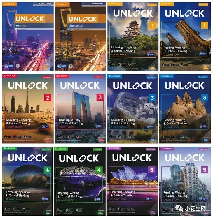 Unlock 第二版提供了6个级别的学习(基础级-第五级),每个级别两本书: