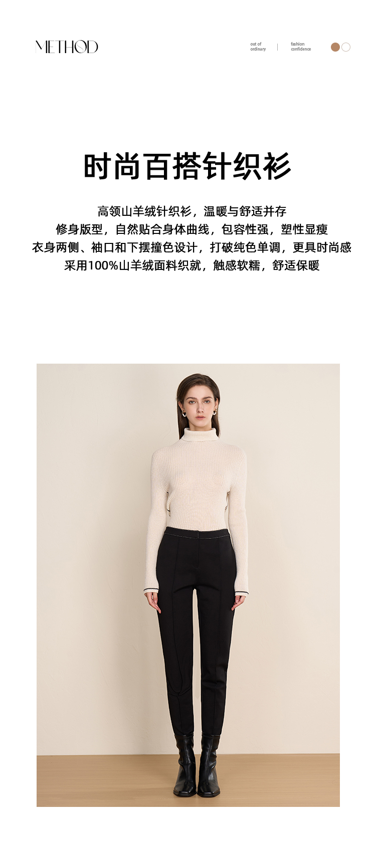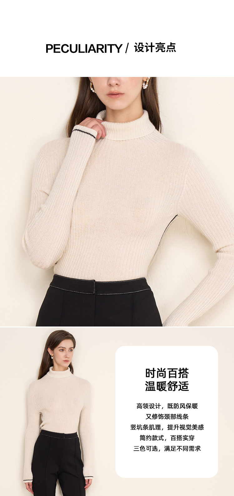 EITIE爱特爱冬季新款舒适保暖高领100%山羊绒针织衫8001711