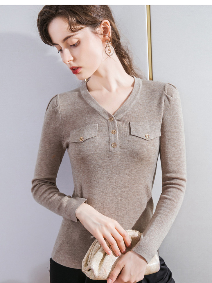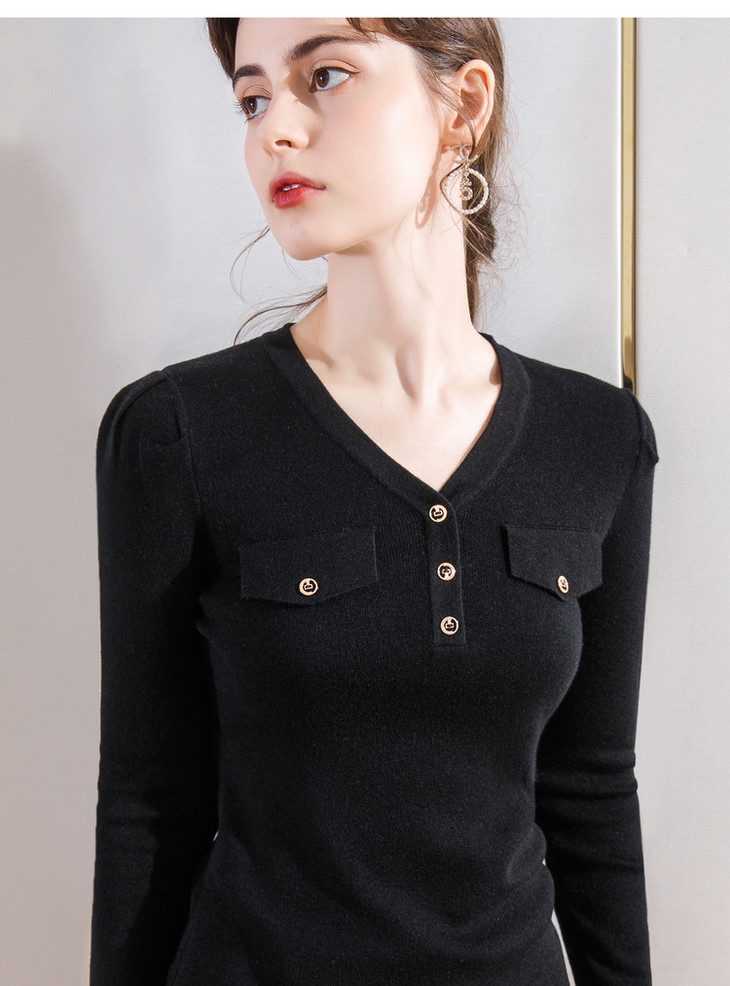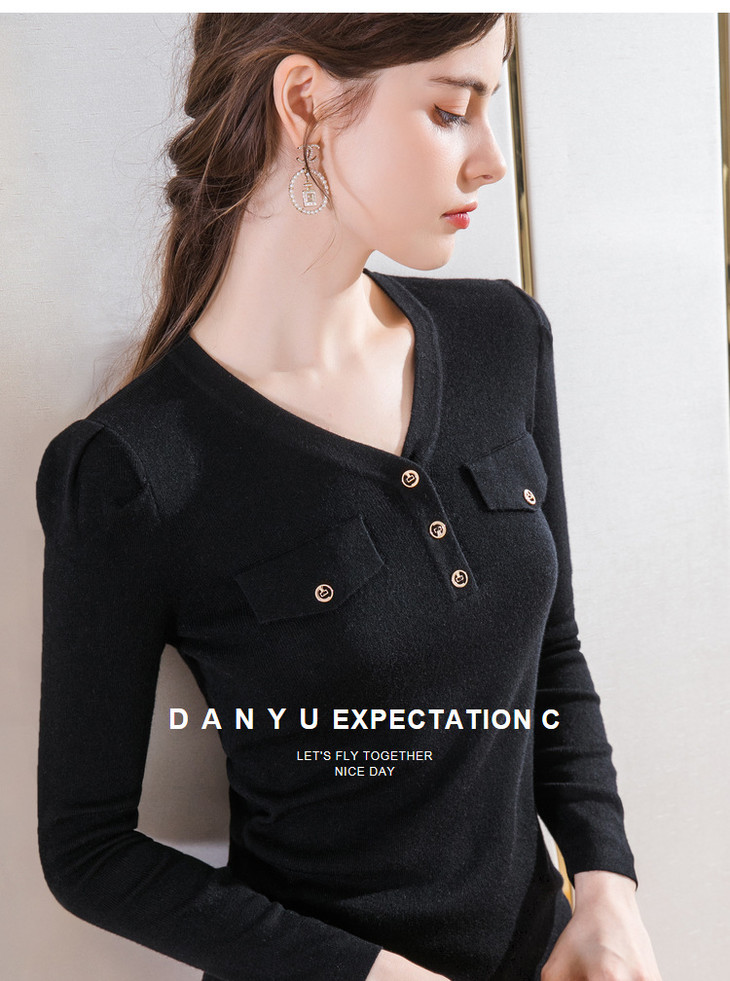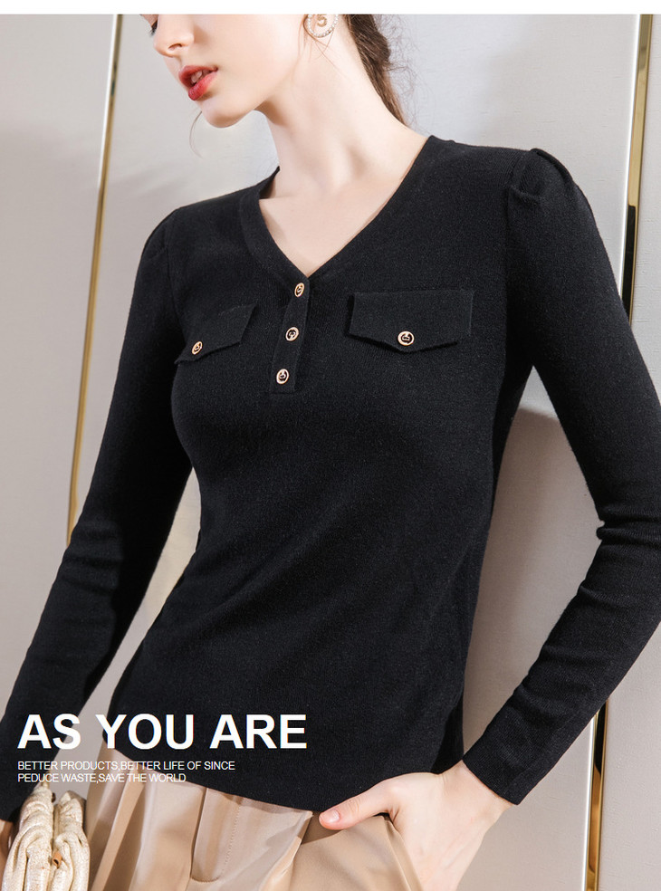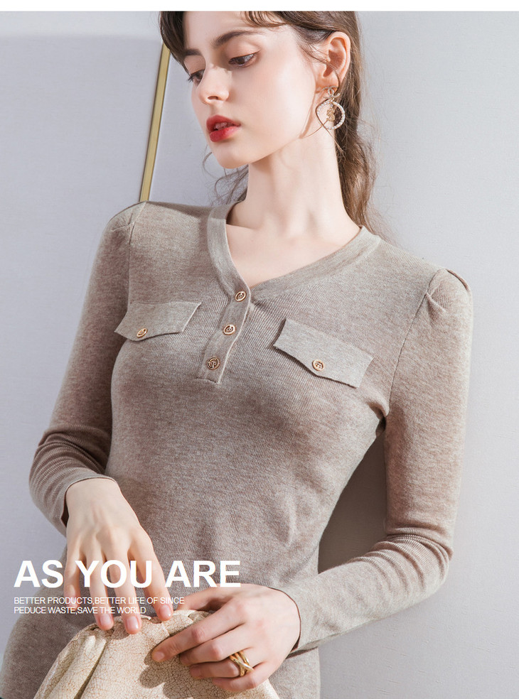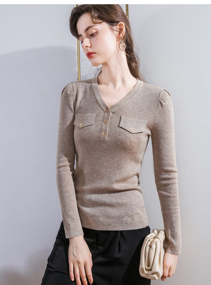 DY-AL50111羊毛针织衫V领长袖纯色纽扣上衣2020秋冬新款女装韩版温柔风毛衣
