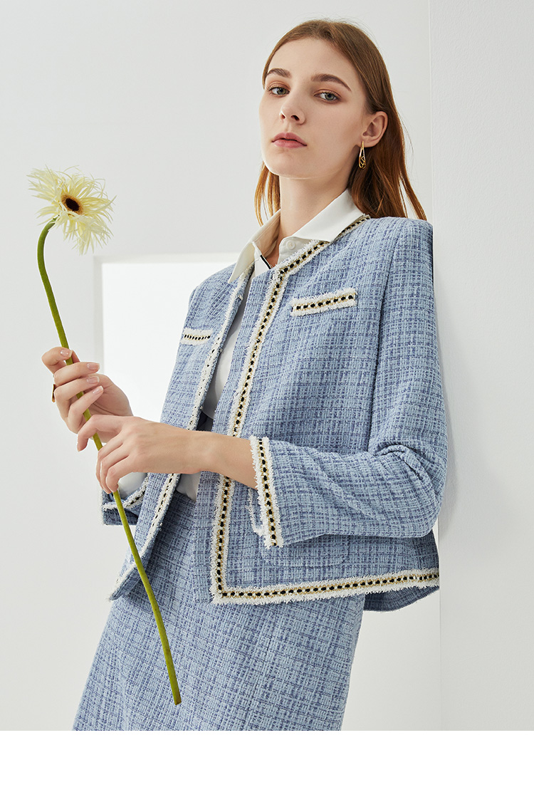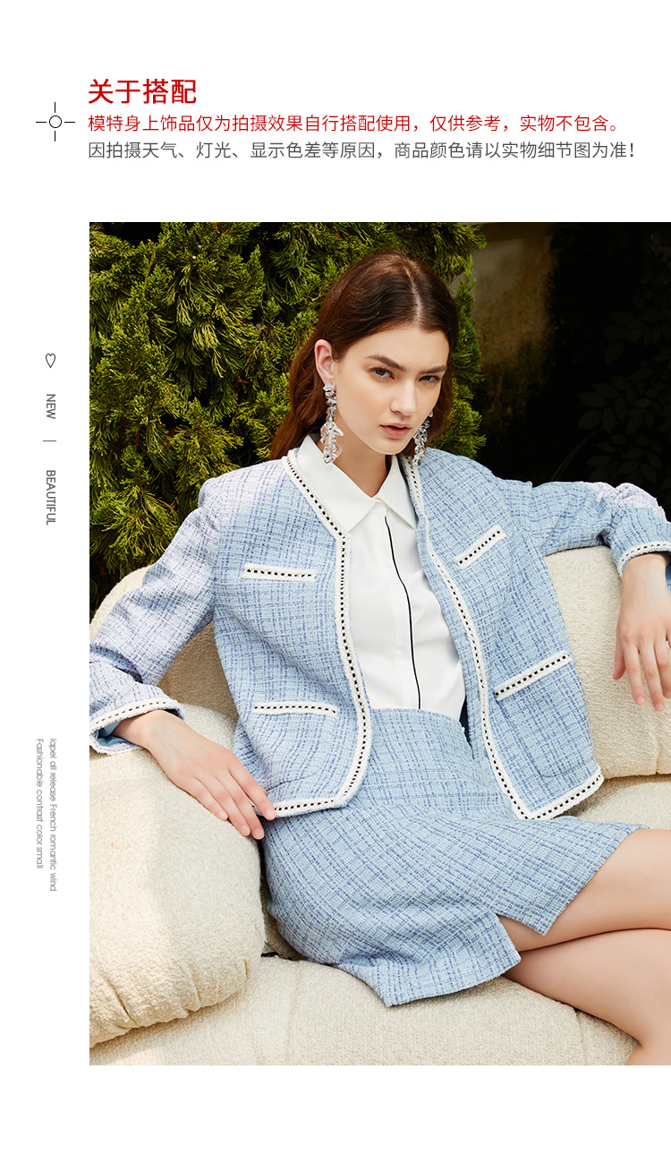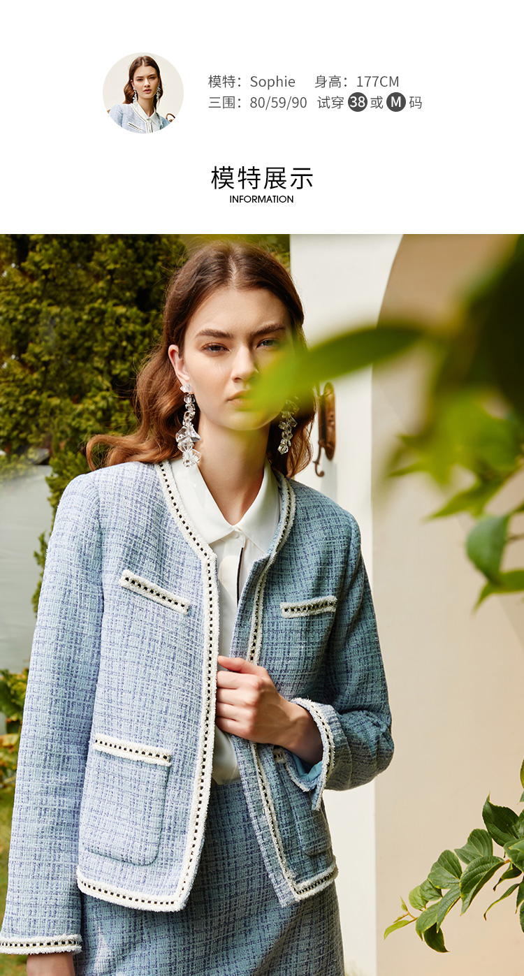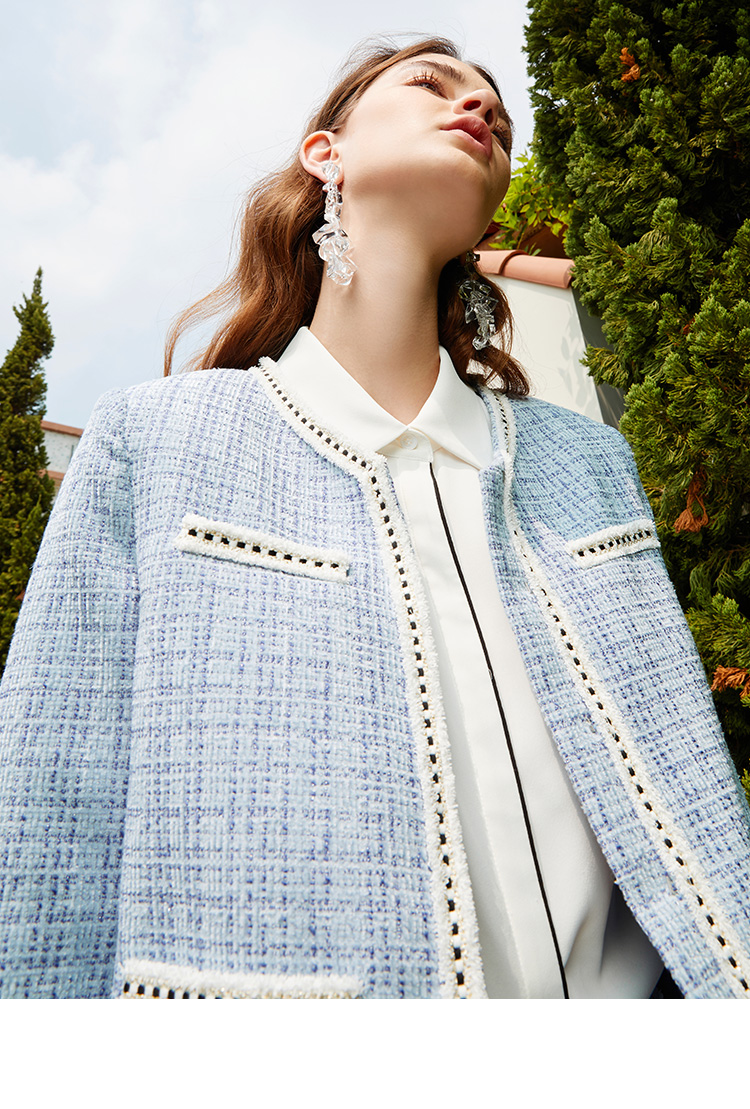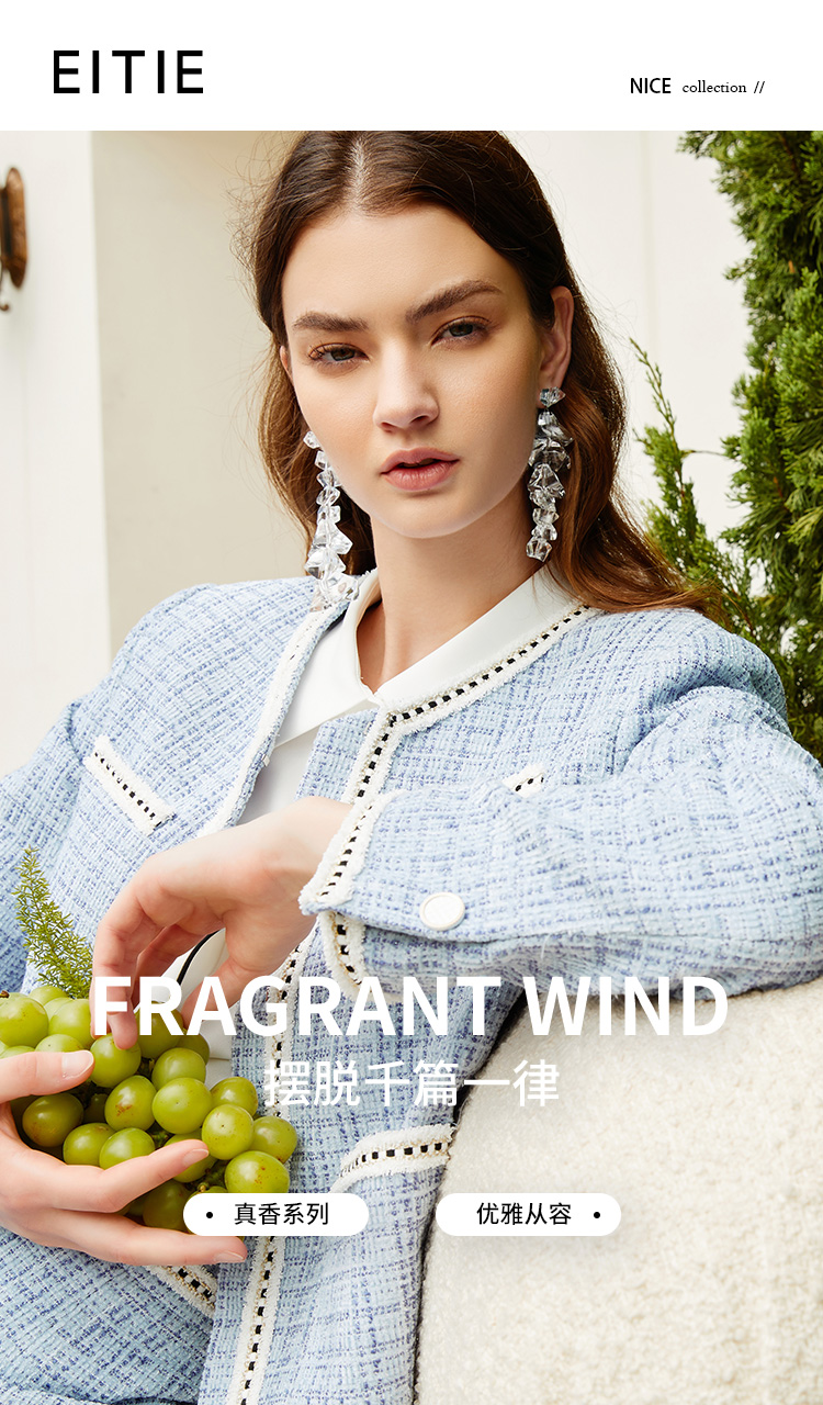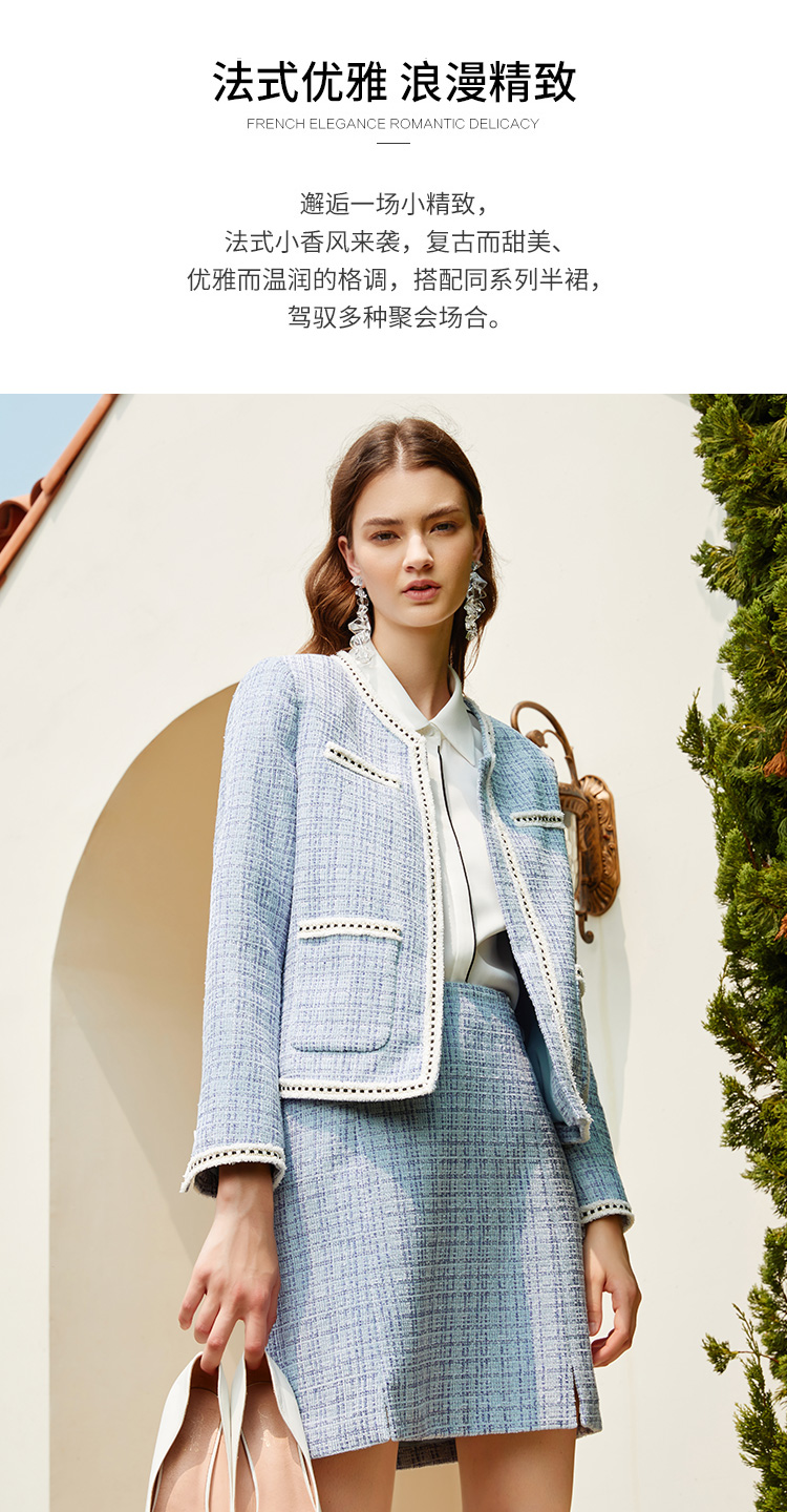 EITIE爱特爱新款洋气经典格纹优雅时尚气质显瘦短外套女C2103808
