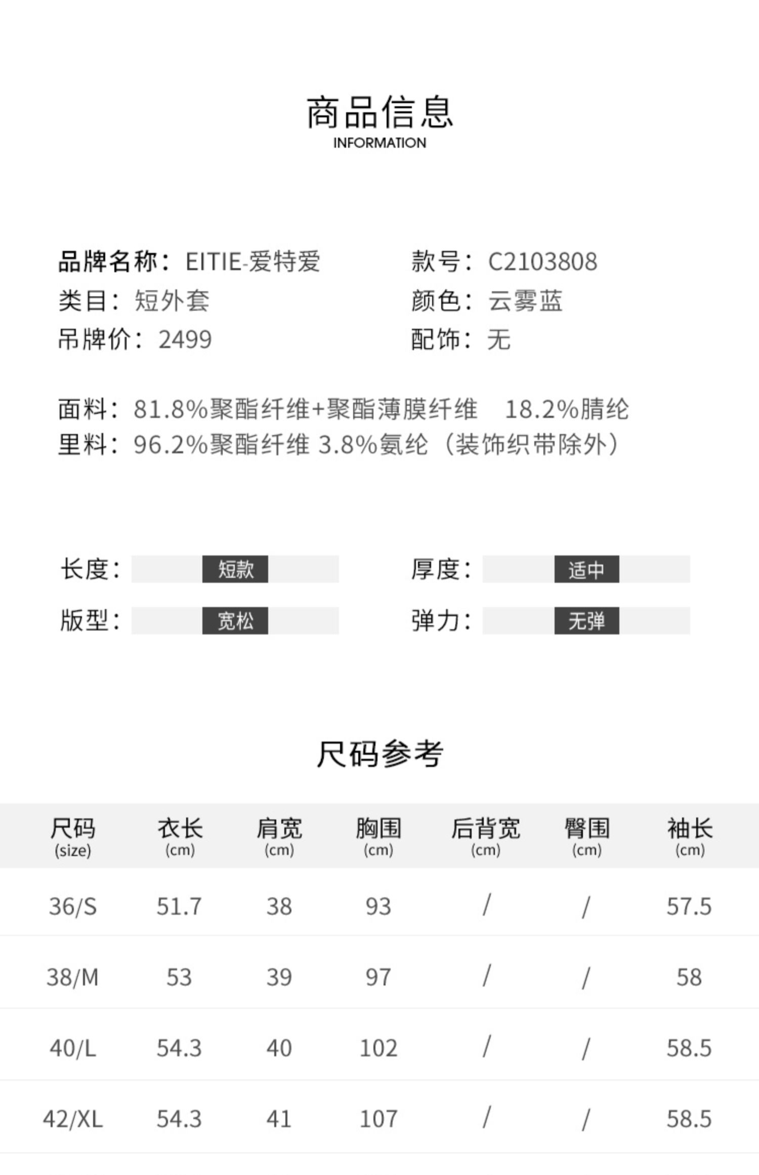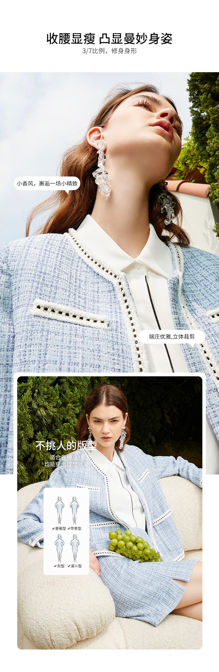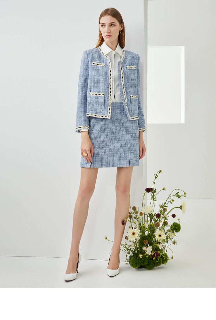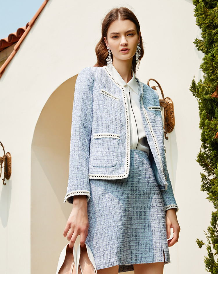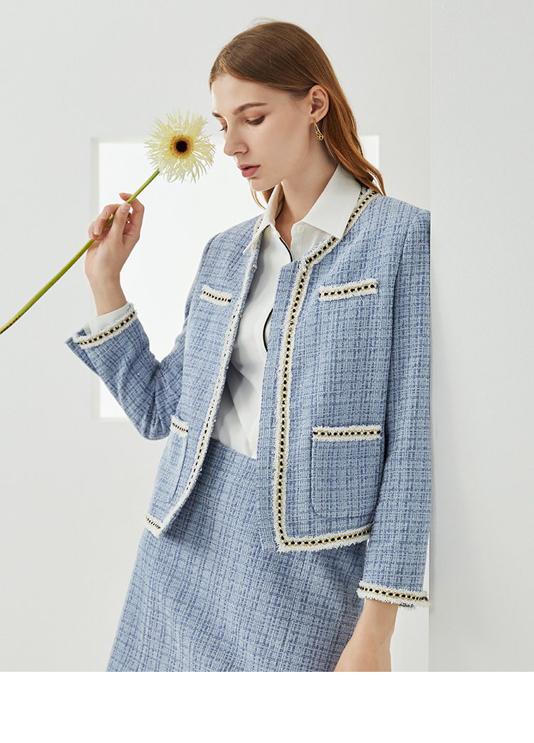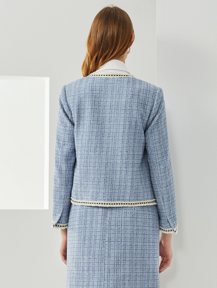 EITIE爱特爱新款洋气经典格纹优雅时尚气质显瘦短外套女C2103808