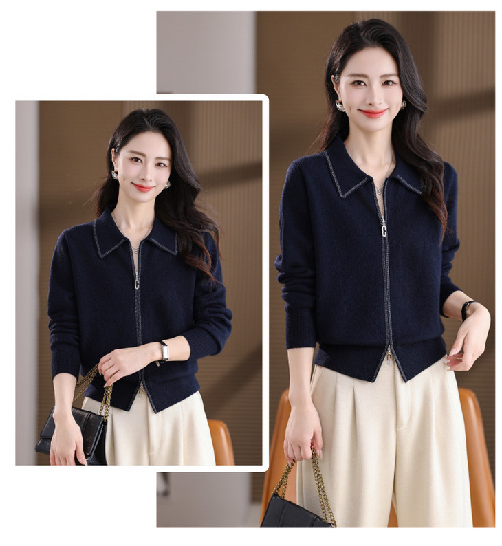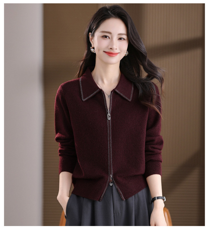 女士翻领外套气质休闲时尚针织上衣,洋气妈妈毛衣开衫宽松CC-101-35528