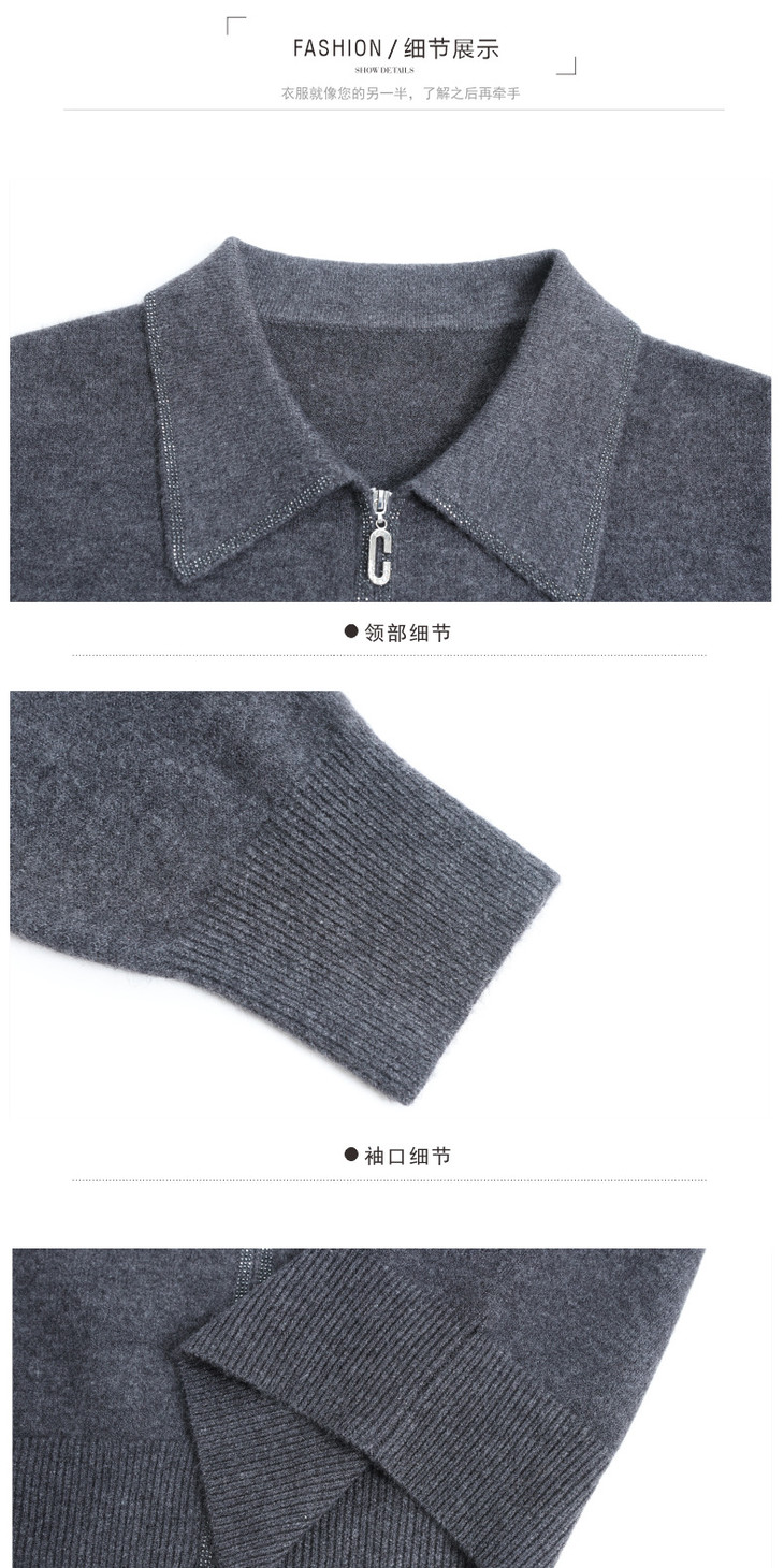 新中式中国风灰色Polo领,针织衫上衣翻领小衫A2742