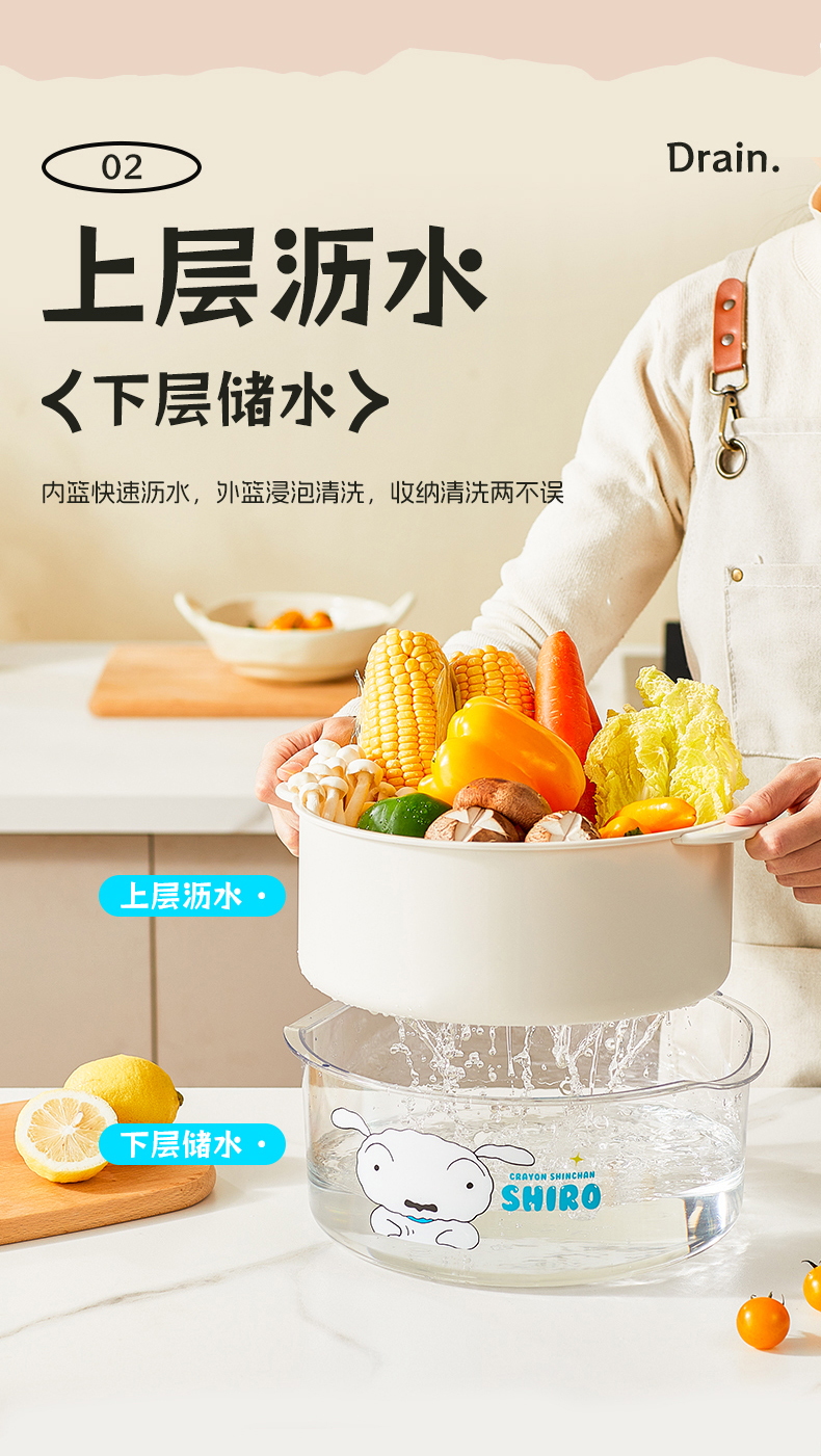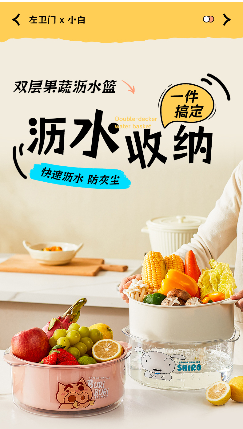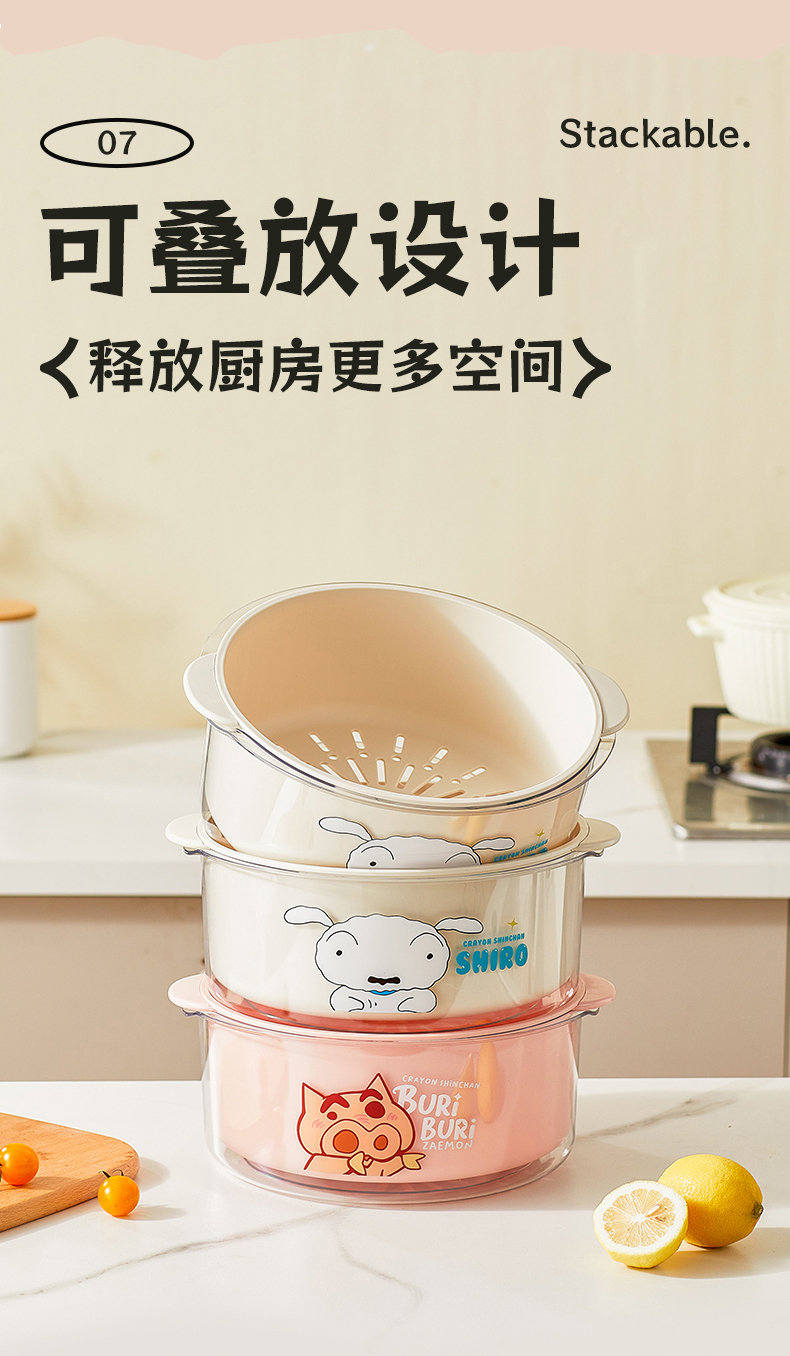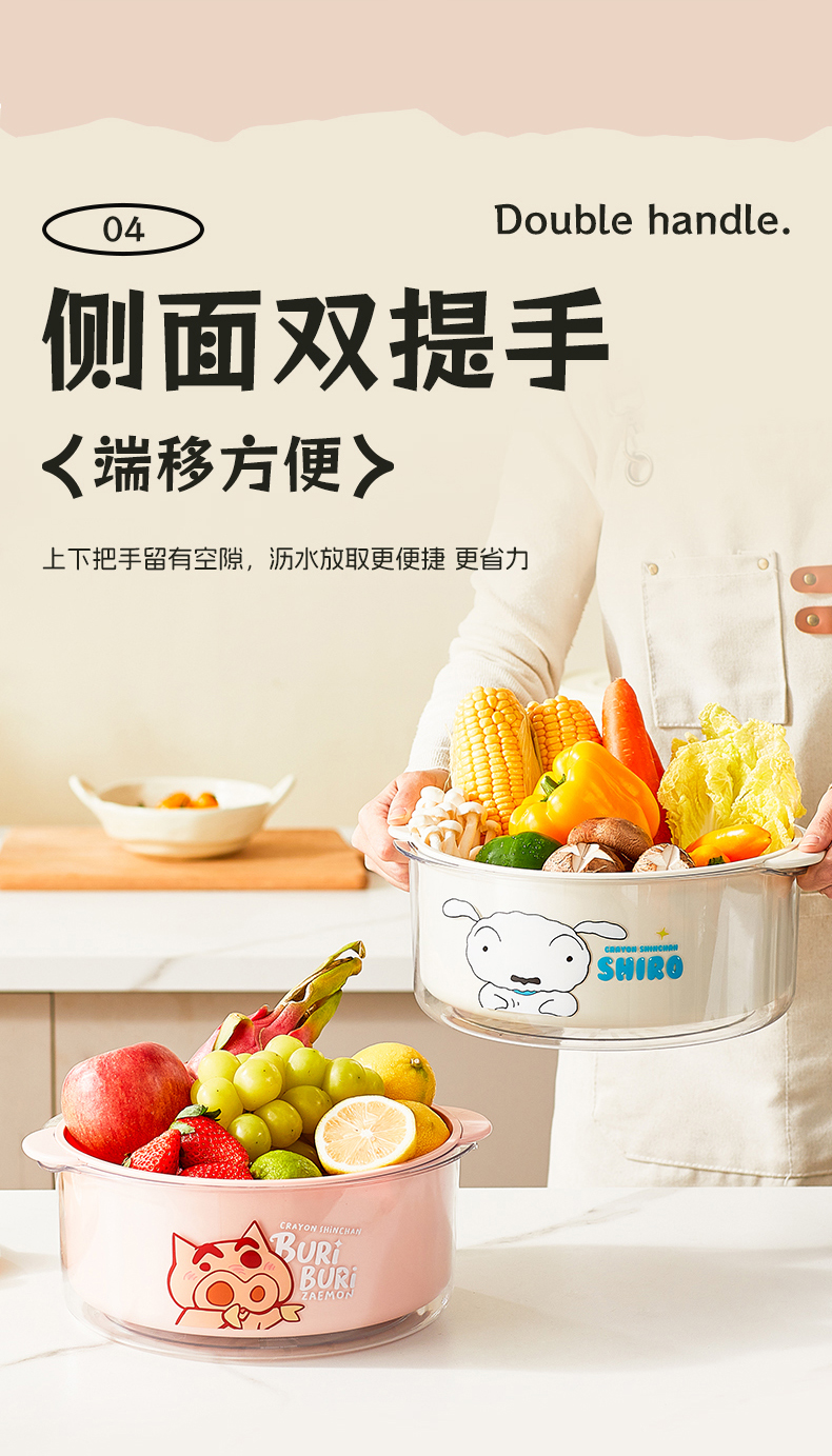 摩登主妇蜡笔小新洗菜盆沥水篮新款双层滤水篮抗菌水果篮客厅家用