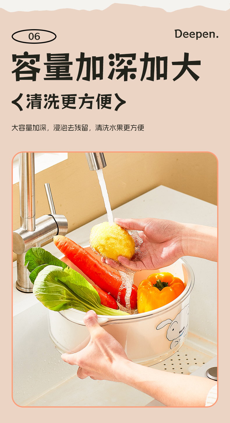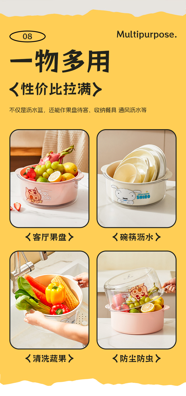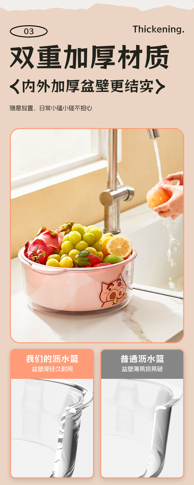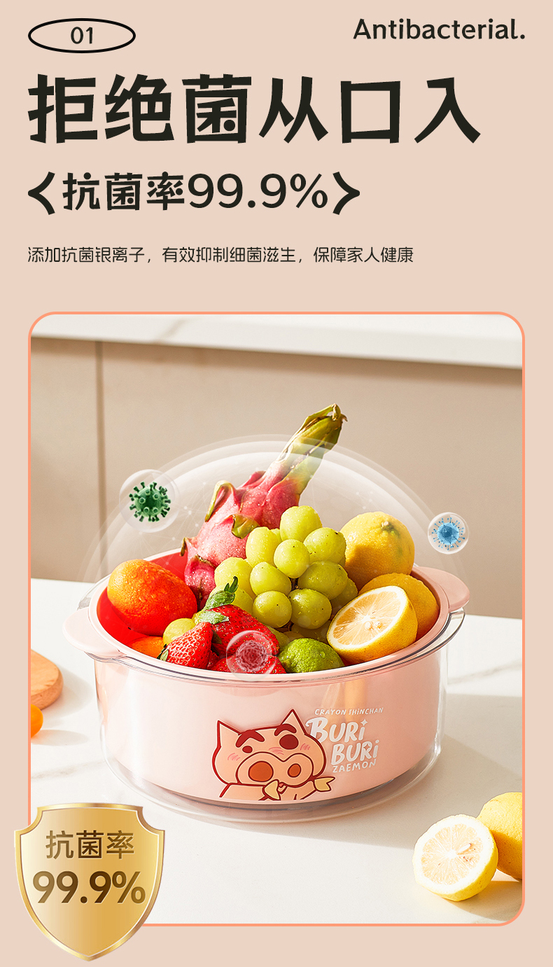 摩登主妇蜡笔小新洗菜盆沥水篮新款双层滤水篮抗菌水果篮客厅家用