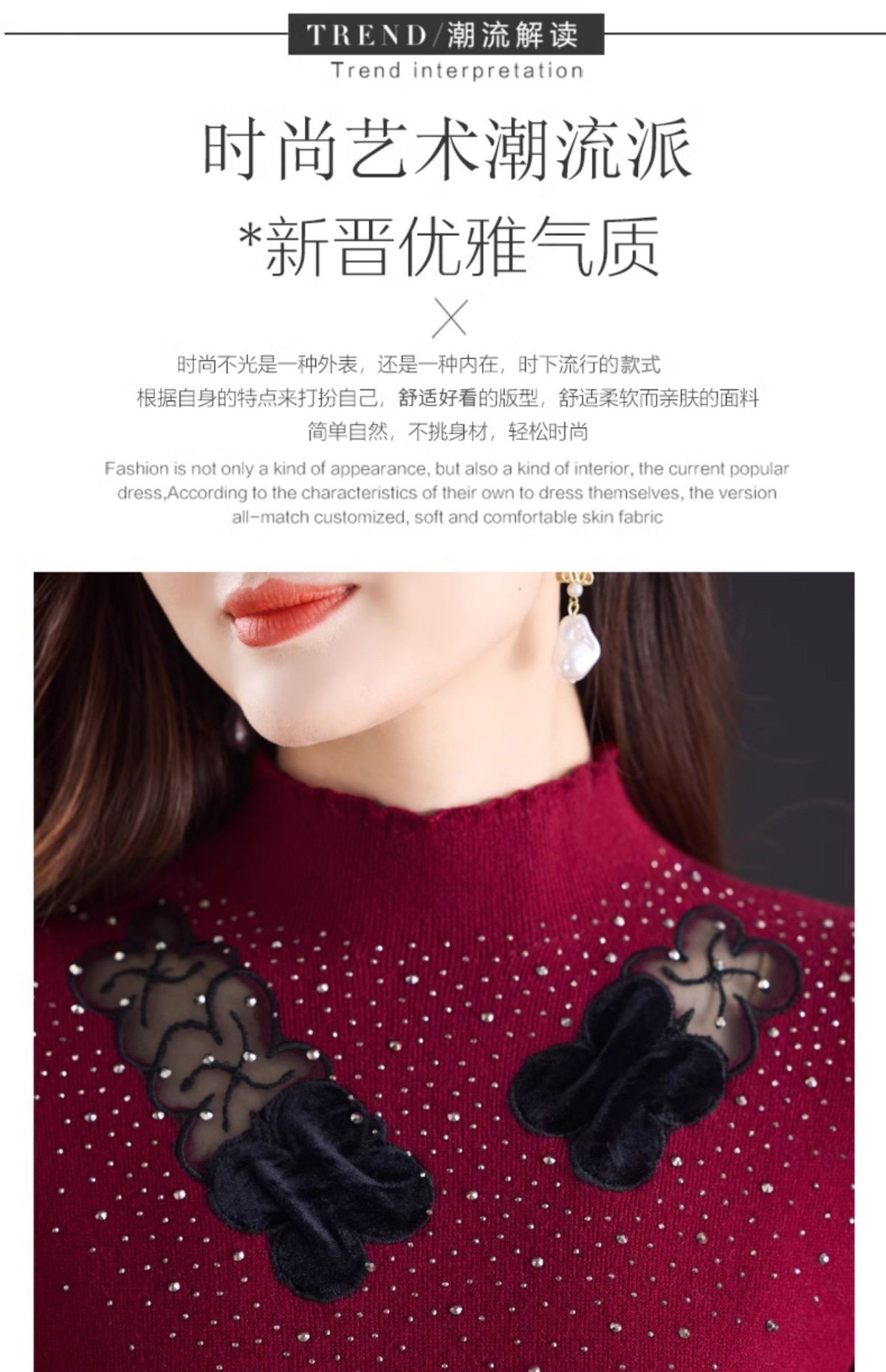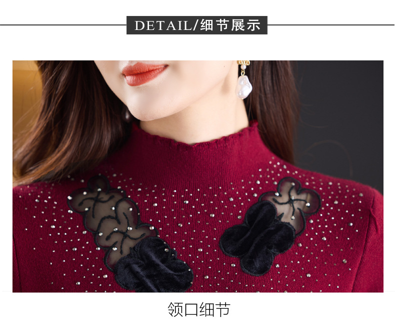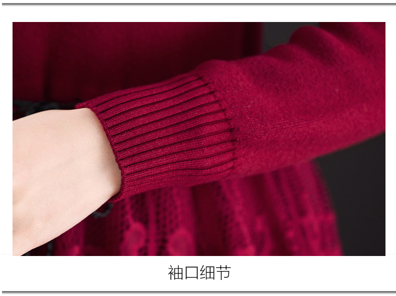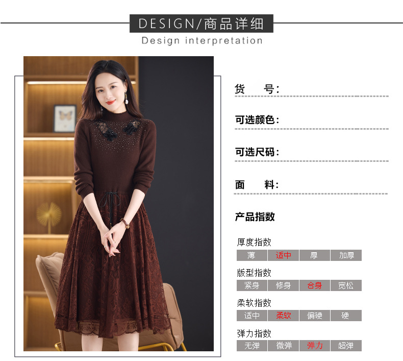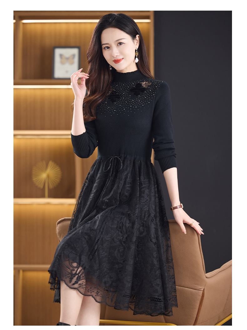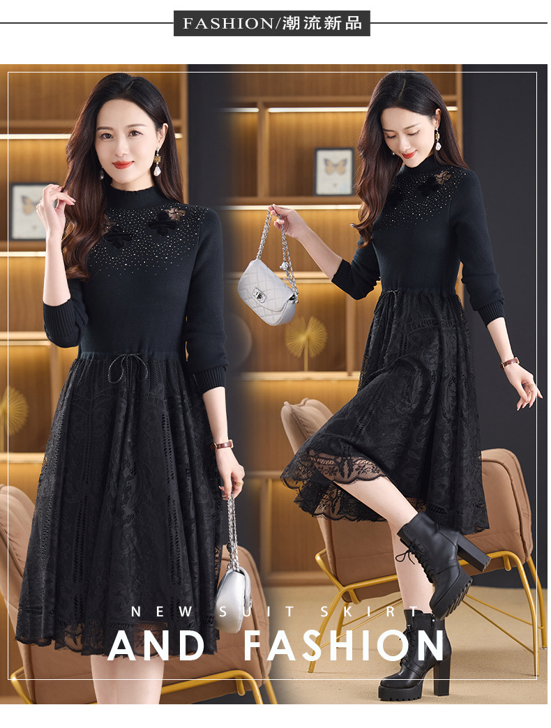 加绒保暖针织连衣裙,洋气内搭蕾丝打底毛衣裙CC576