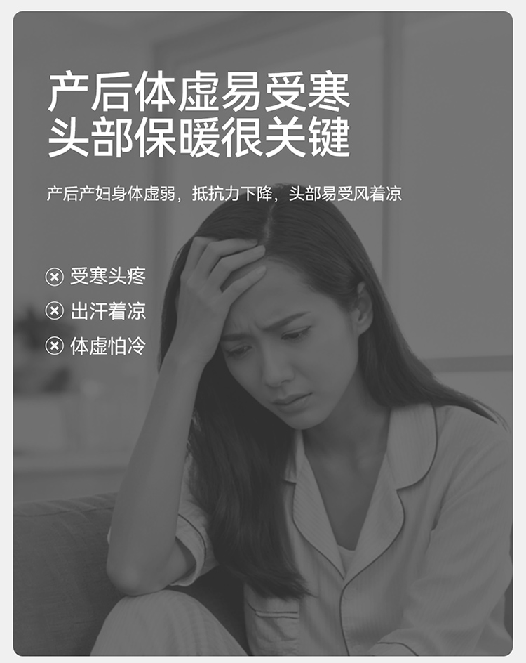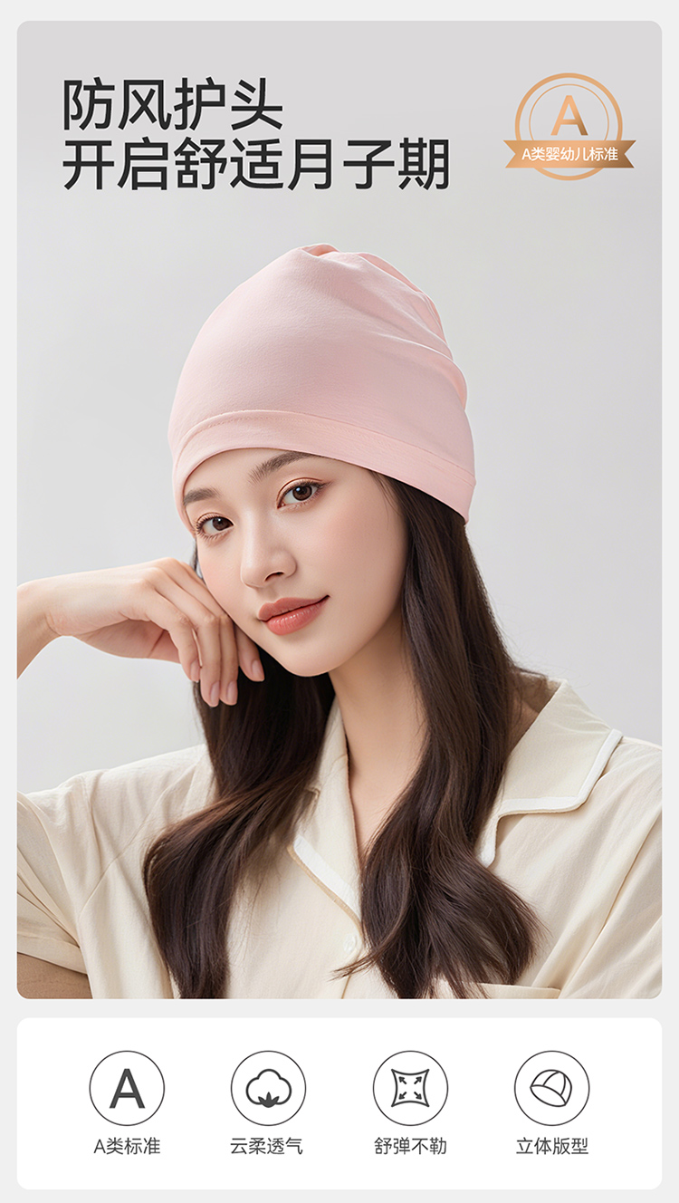 A类纯棉月子帽,高弹舒适防风护头保暖 (厚度适中,非加厚款)