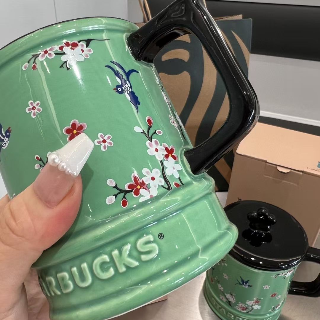 星巴克杯子,春日田园绿色碎花高颜值带盖陶瓷咖啡杯桌面马克杯,米复古造型马克杯,卓丽萍老师的画作,颜色艳丽画面灵动,让视觉一起感受这份春日的美。不知道为啥突然这么火,抢都抢不到的一款杯子,