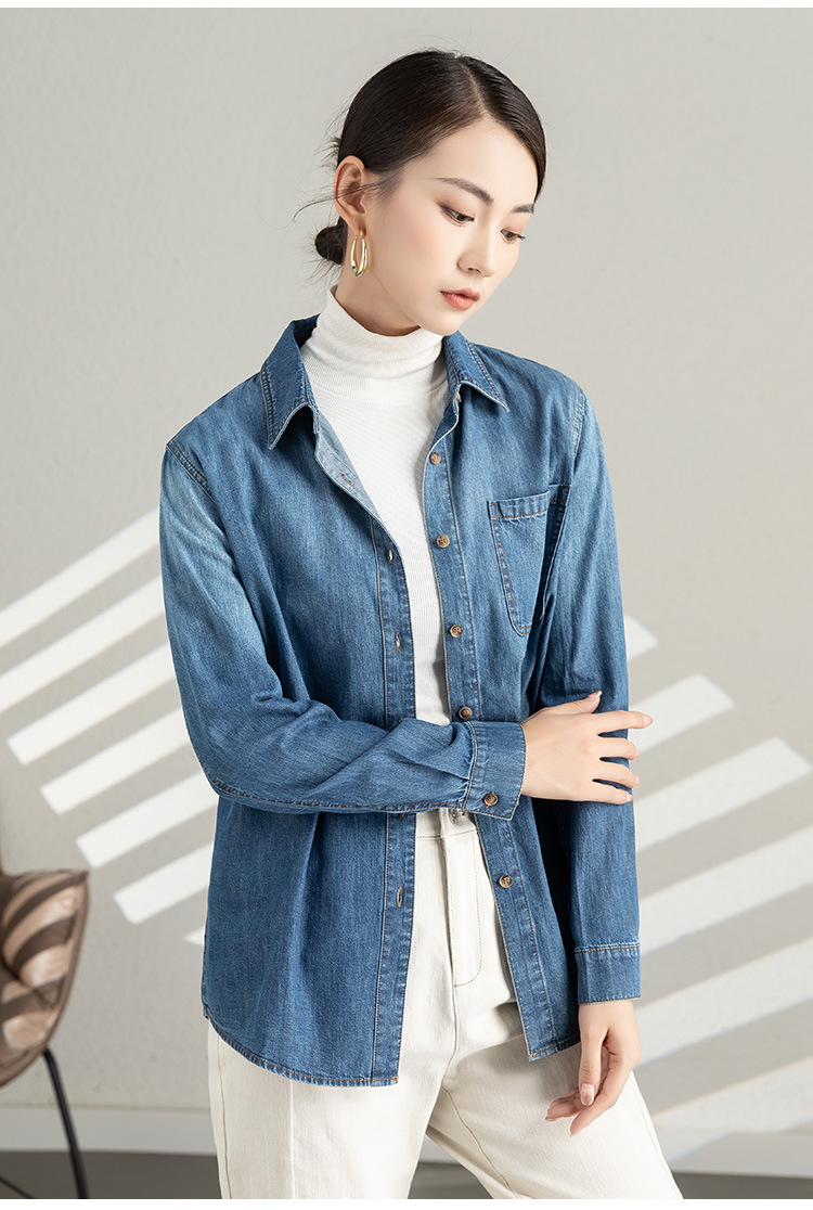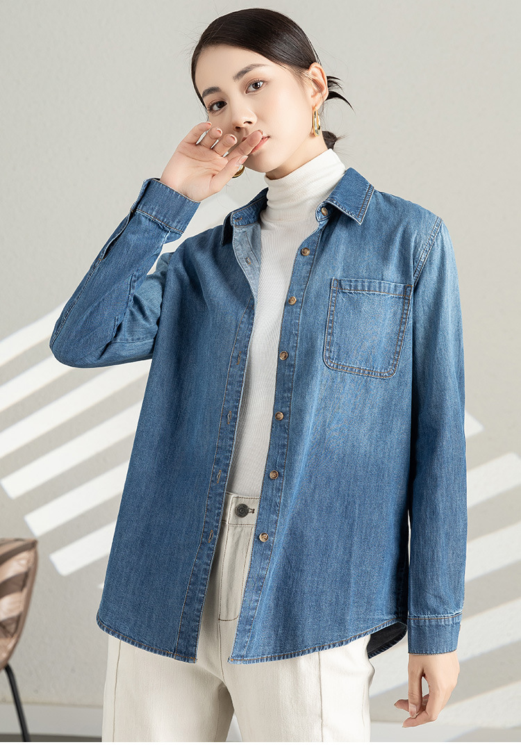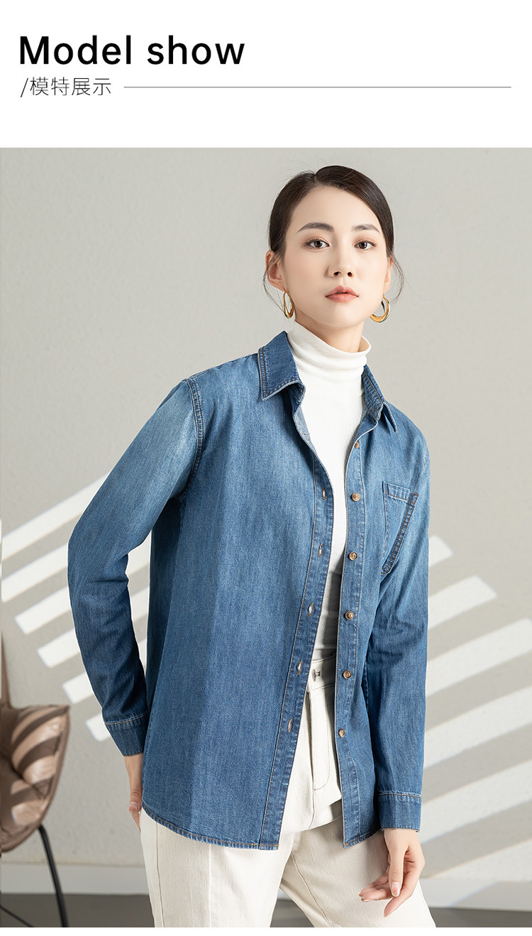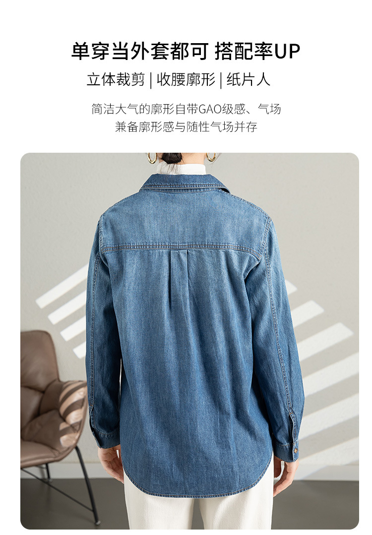 复古港味牛仔衬衫外套女秋冬百搭设计感小众长袖宽松衬衣别致上衣XG-62069