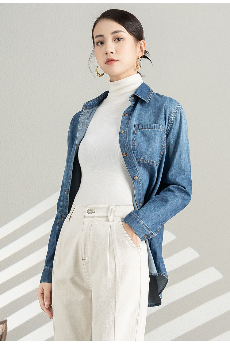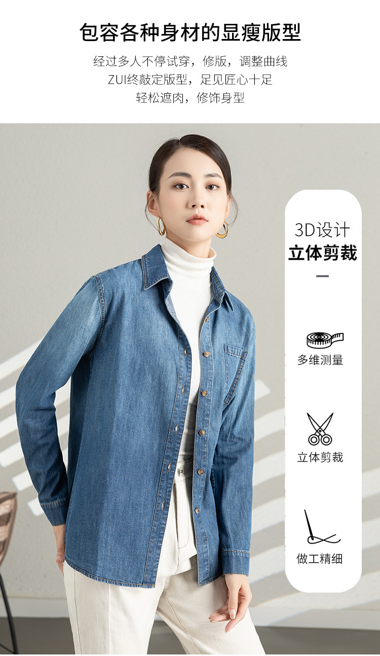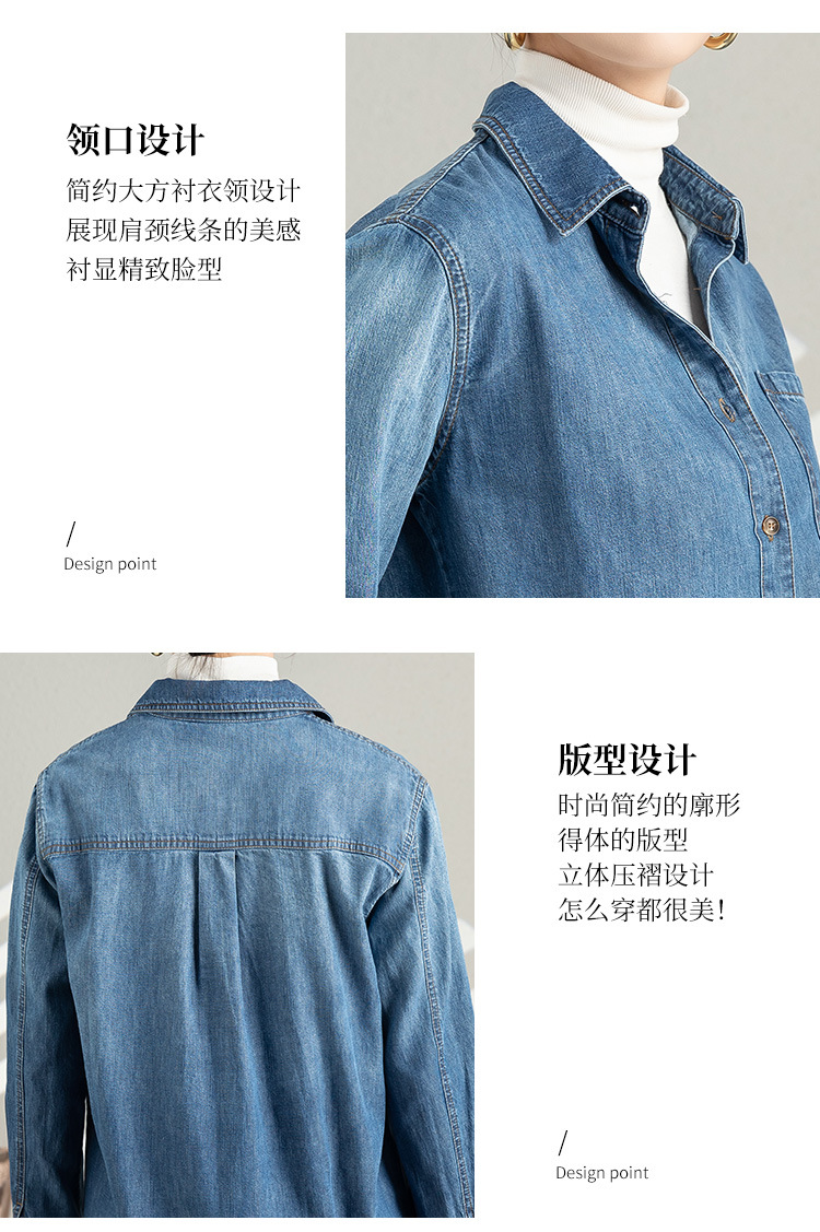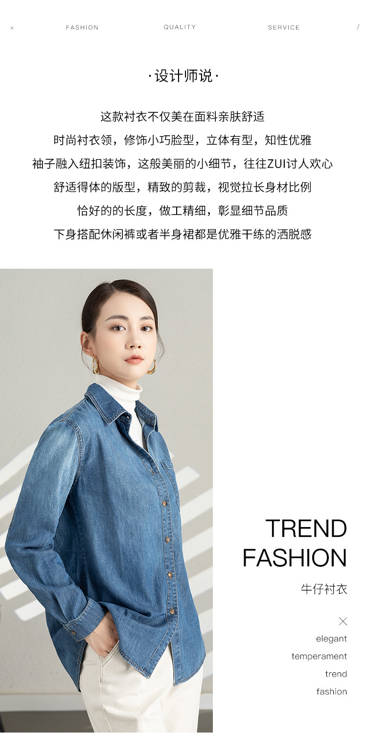 复古港味牛仔衬衫外套女秋冬百搭设计感小众长袖宽松衬衣别致上衣XG-62069