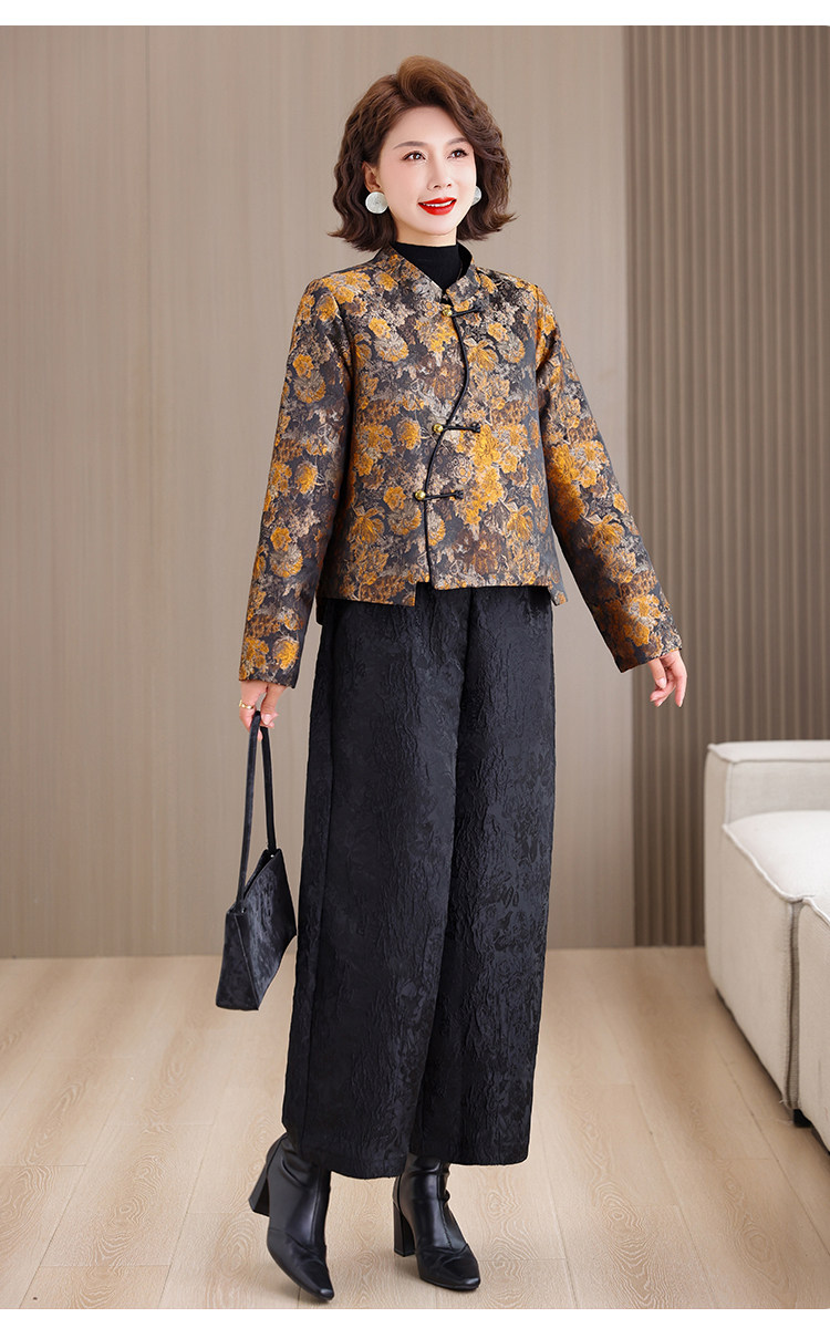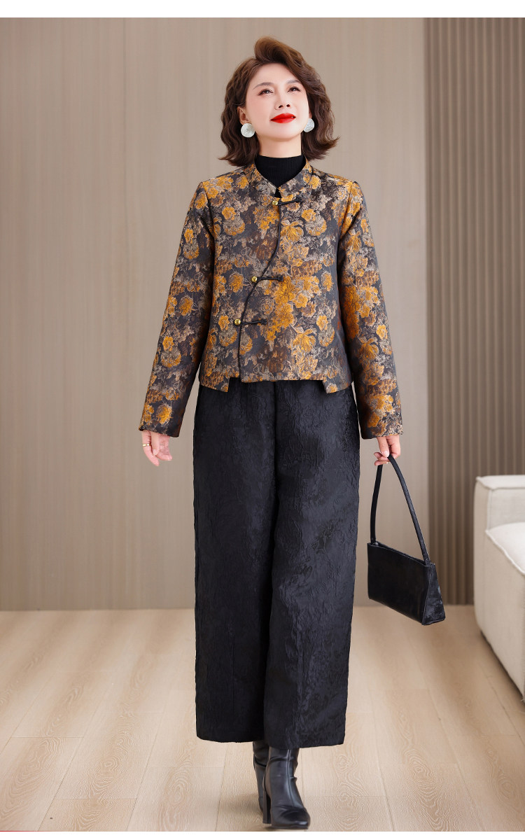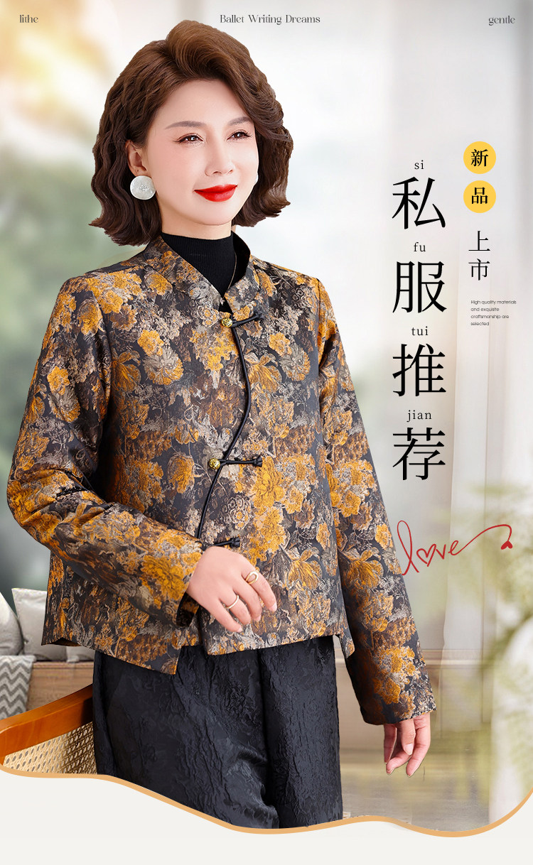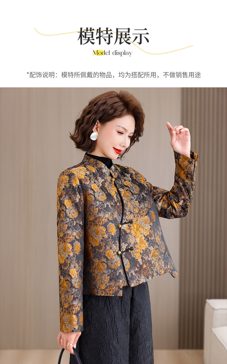XMZ768阔太太复古国风提花外套2025秋冬宽松盘扣立领夹棉高端长袖上衣女