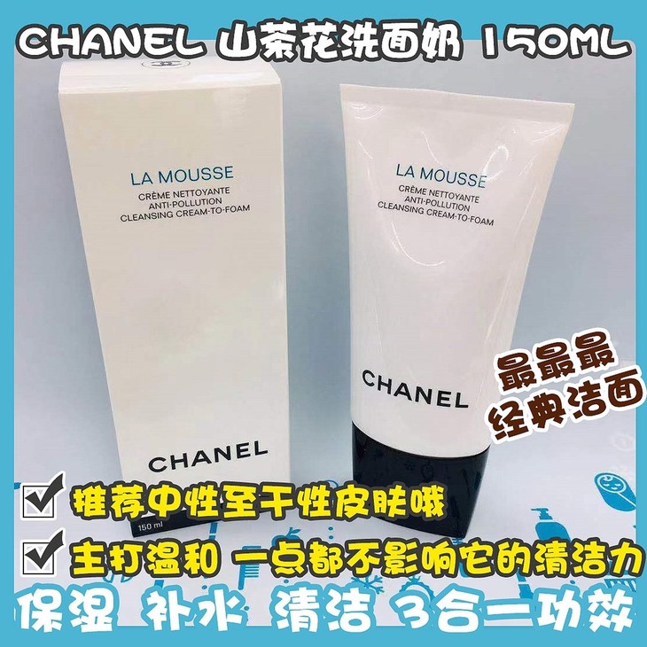 CHANEL 山茶花洗面奶 150ML 👍无限回购‼香奈儿家最最最经典的洁面没有之一😍,景甜直播洗脸视频同款哦👅~真的无敌好用,物超所值✔香奈儿这支洁面主打温和☁,却一点都不影响它的清洁力👏,照样能洗的很干净,并且还有卸妆的功效💆!质地白色膏状,很细腻,只要挤一点就能搓出那种奶油感绵密的慕斯状小泡沫🌬,再配合luna洗脸仪🌀,简直就是完美搭配啦!保湿➕补水➕清洁3合一功效,任何肌肤都能驾驭,推荐中性至干性皮肤哦💞(
