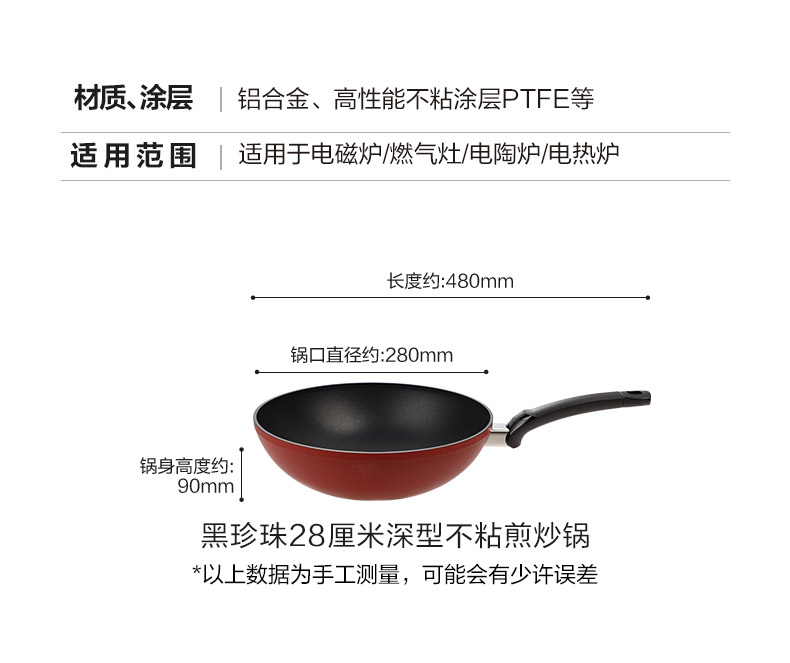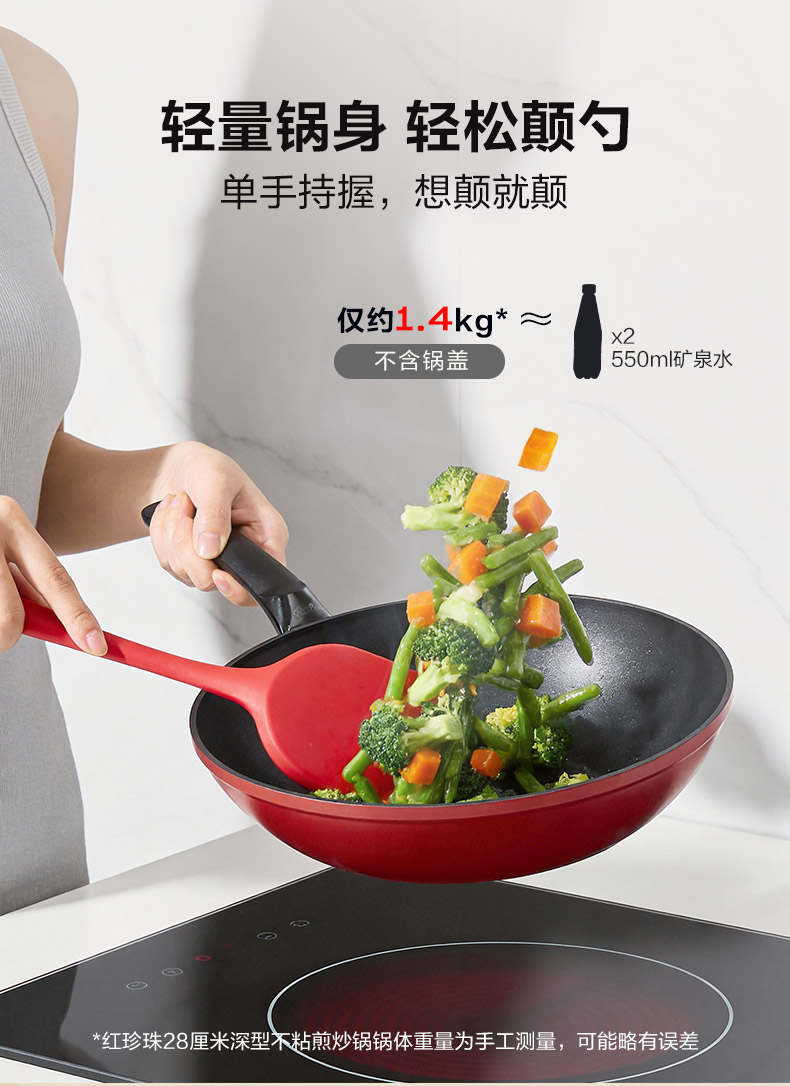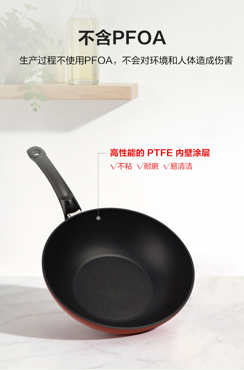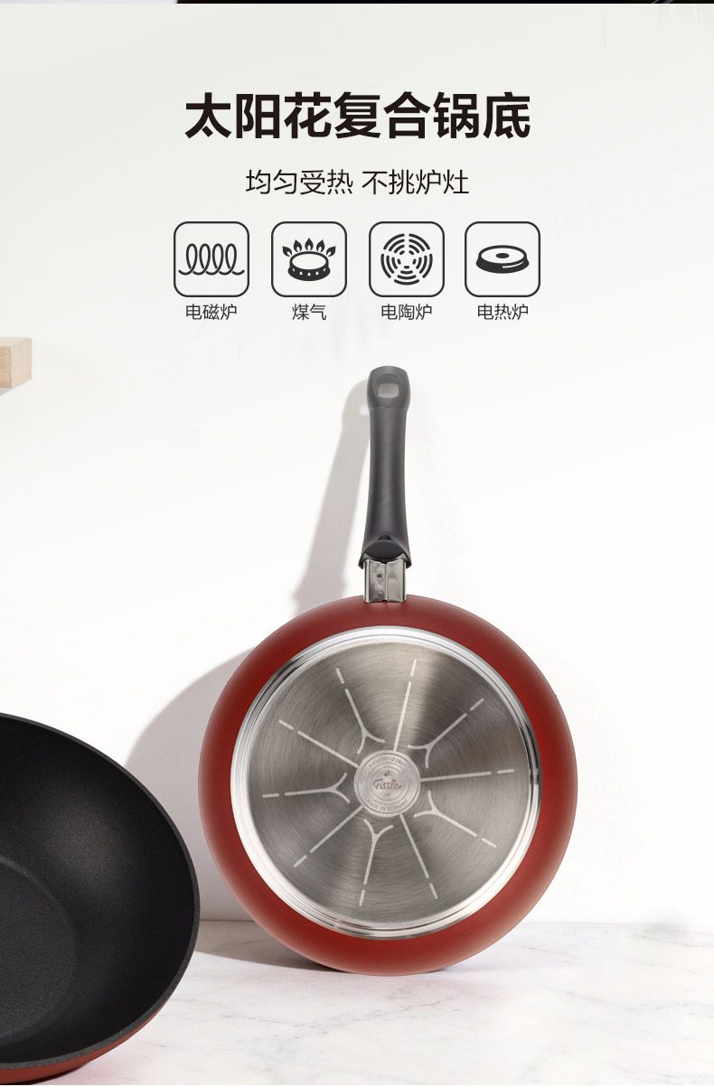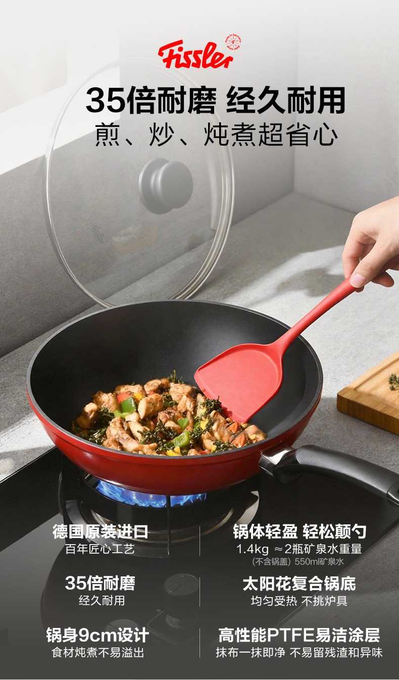 菲仕乐 德国进口黑珍珠28cm深型不粘煎炒锅-红色