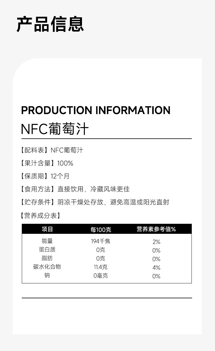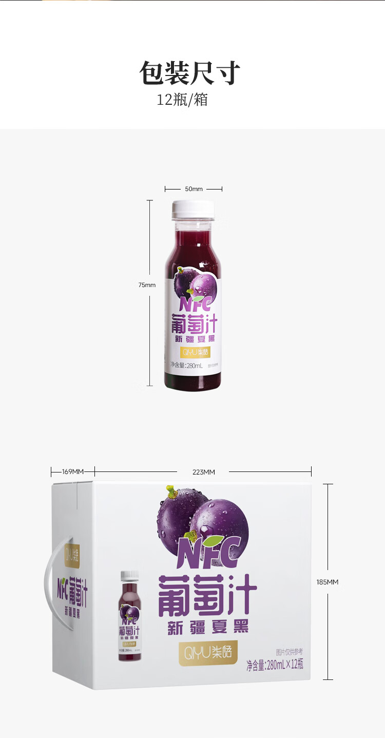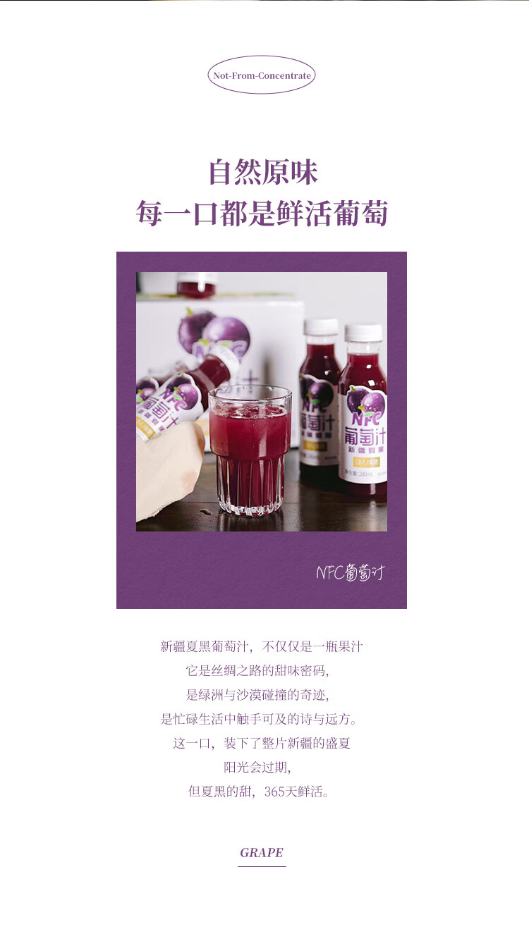 柒语·NFC夏黑葡萄汁 多规格可选 新疆原产超纯正 果香浓郁超清爽