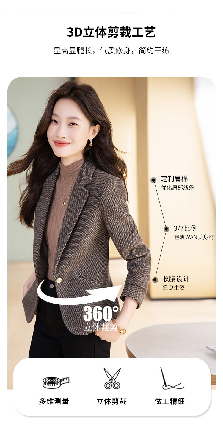 「自」全新升级【铂金会员183/天猫249/差价66】(21258)洛诗琳气质羊毛呢子西装外套2025秋冬季收腰显瘦短外套