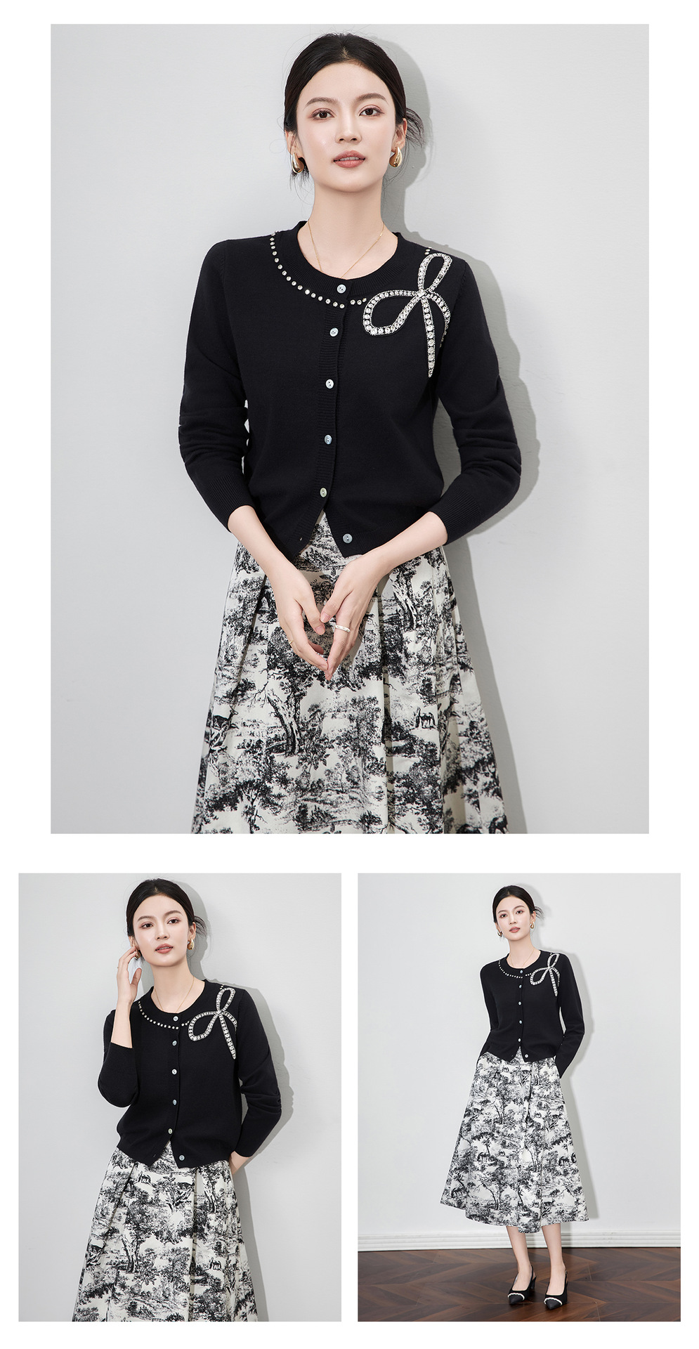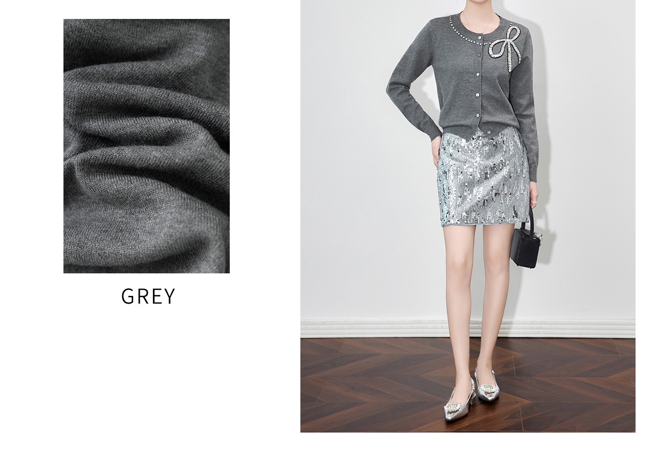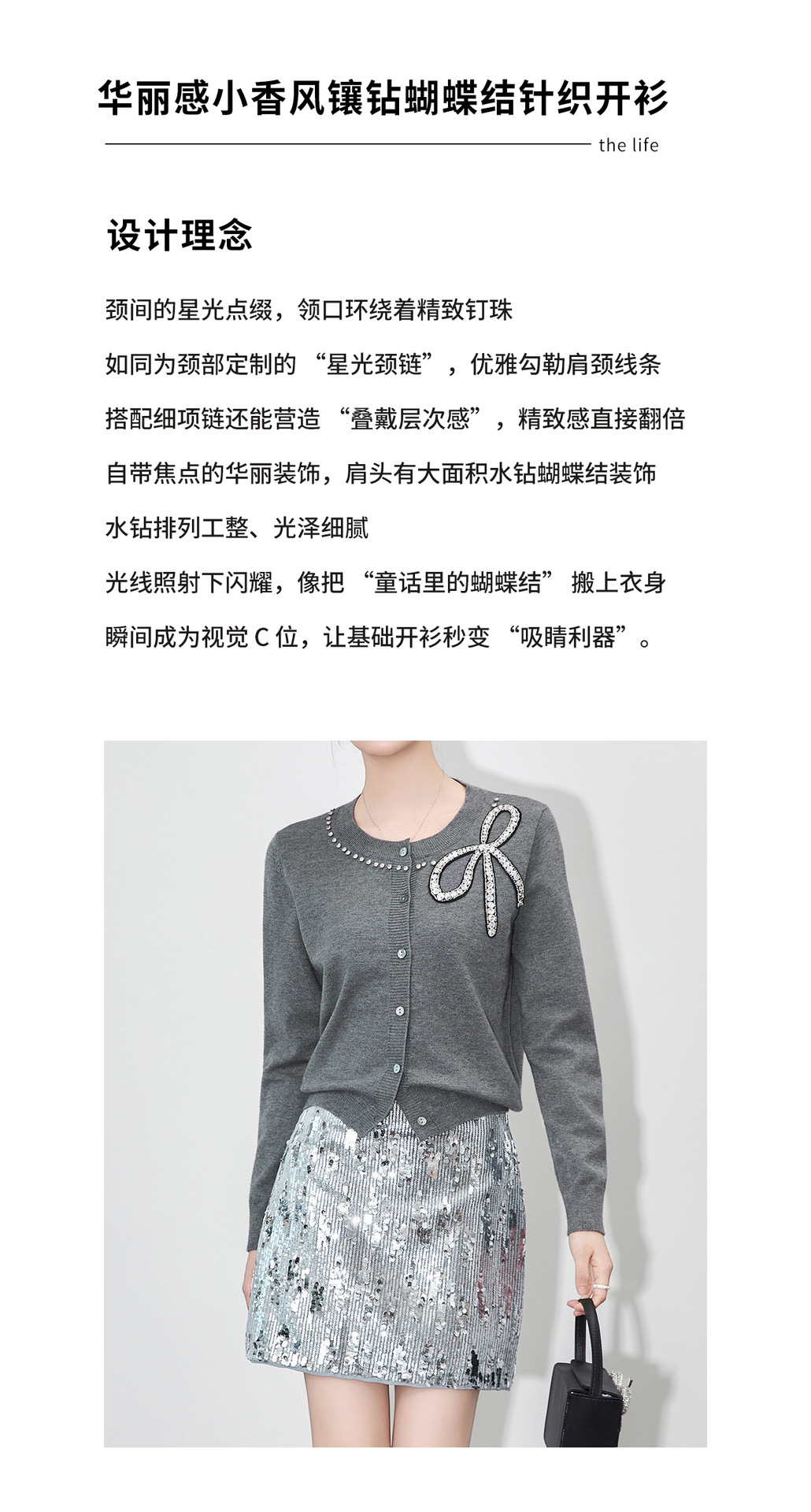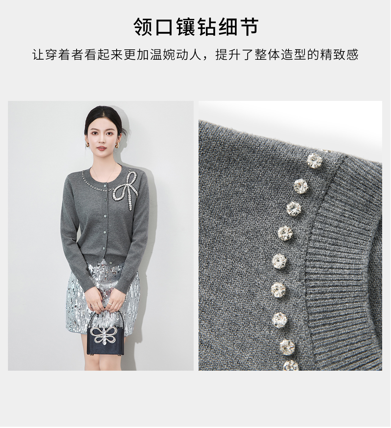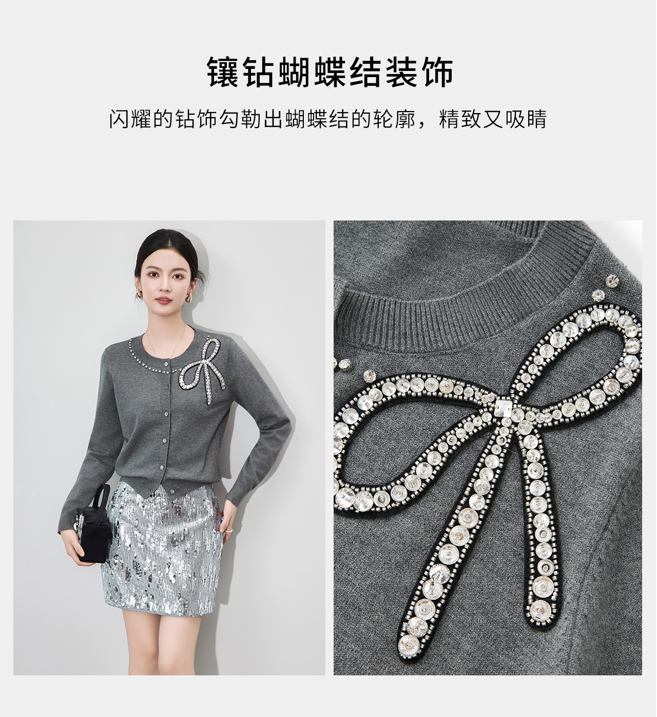 「高货wl」全新升级【铂金会员201/天猫269/差价68】(01734)洛诗琳重工闪钻蝴蝶结针织开衫2025秋季优雅圆领针织外套
