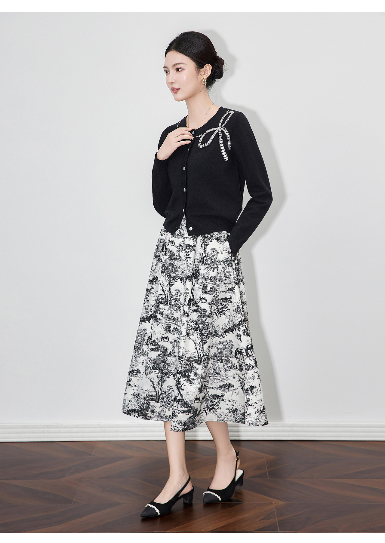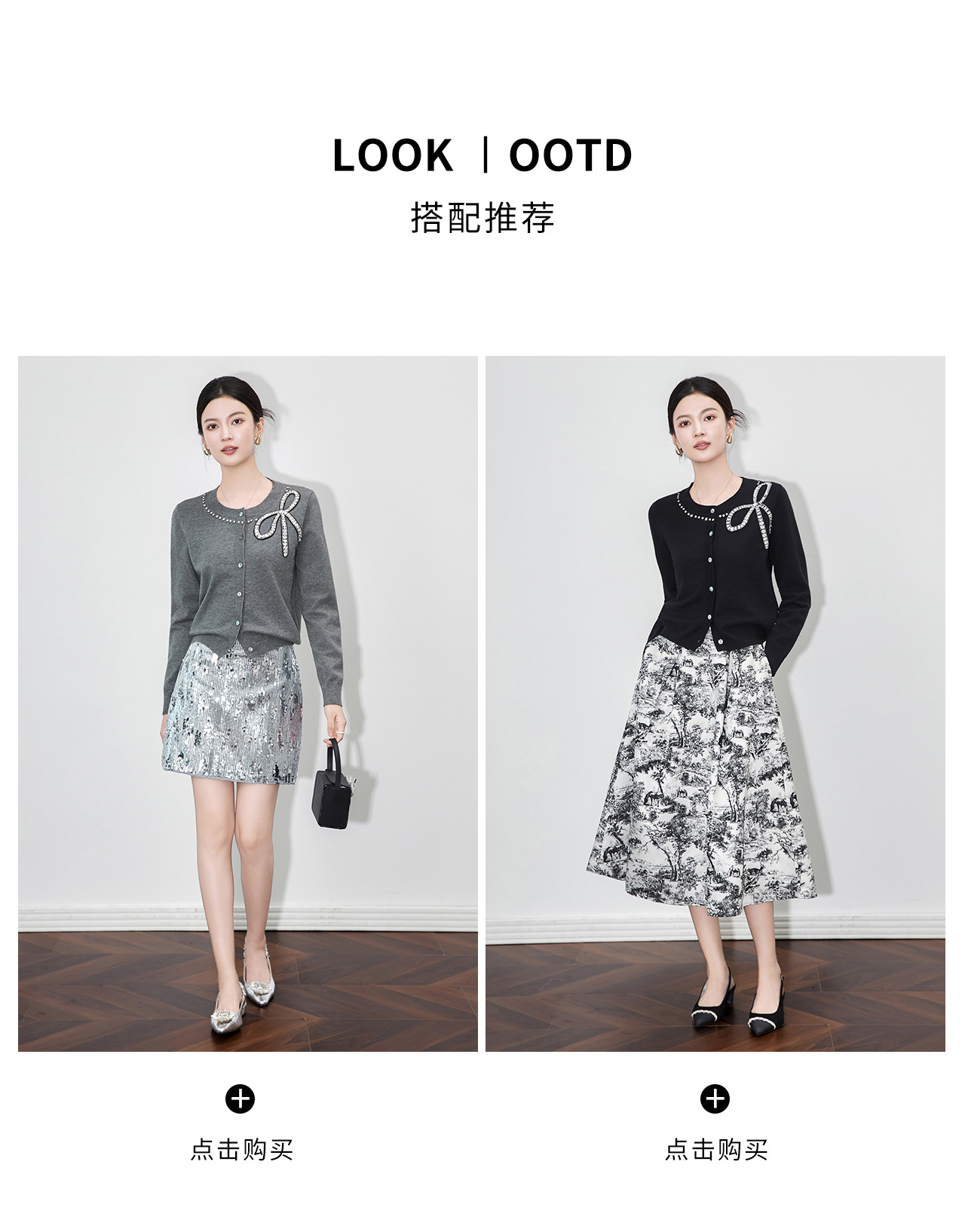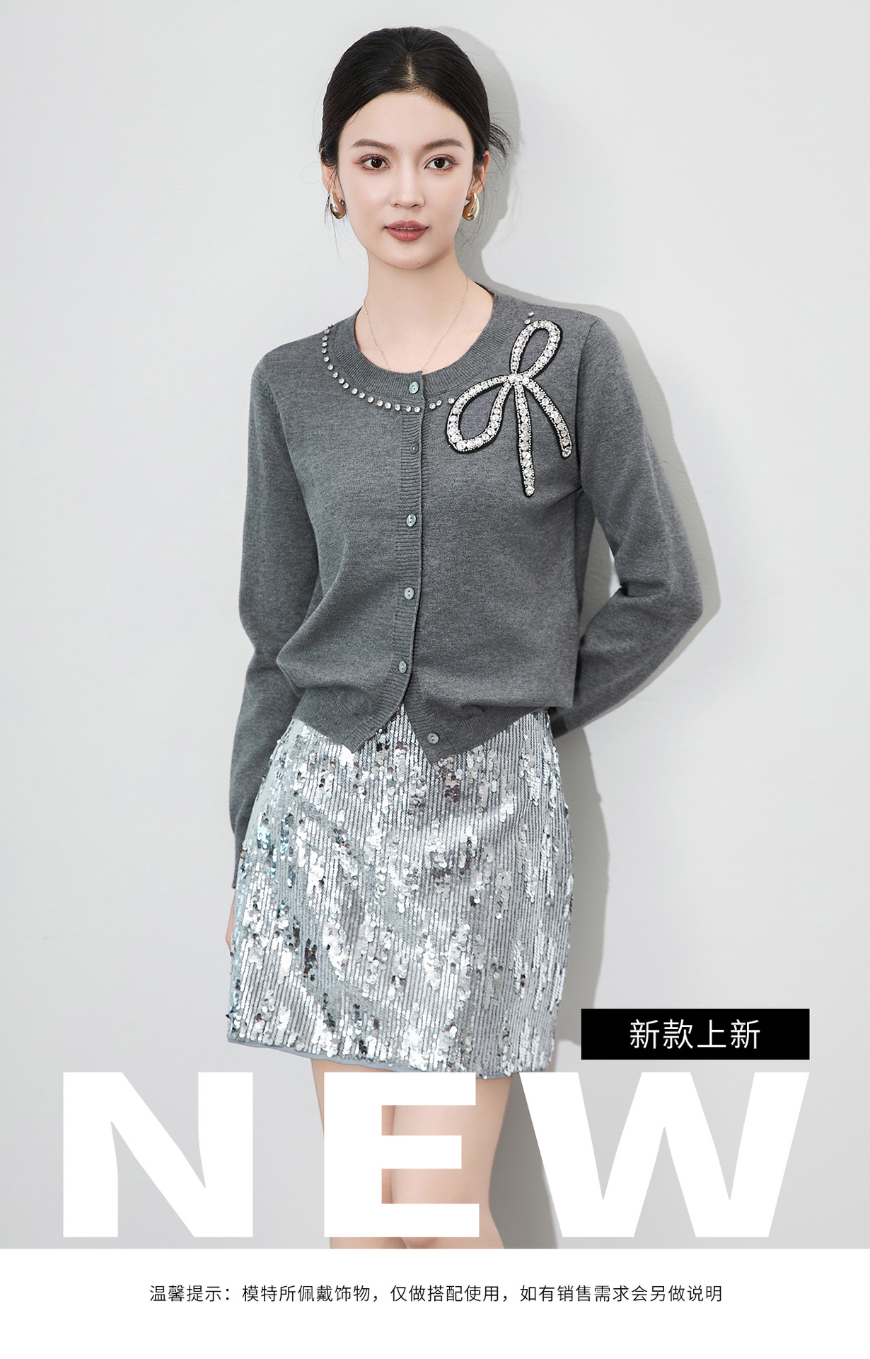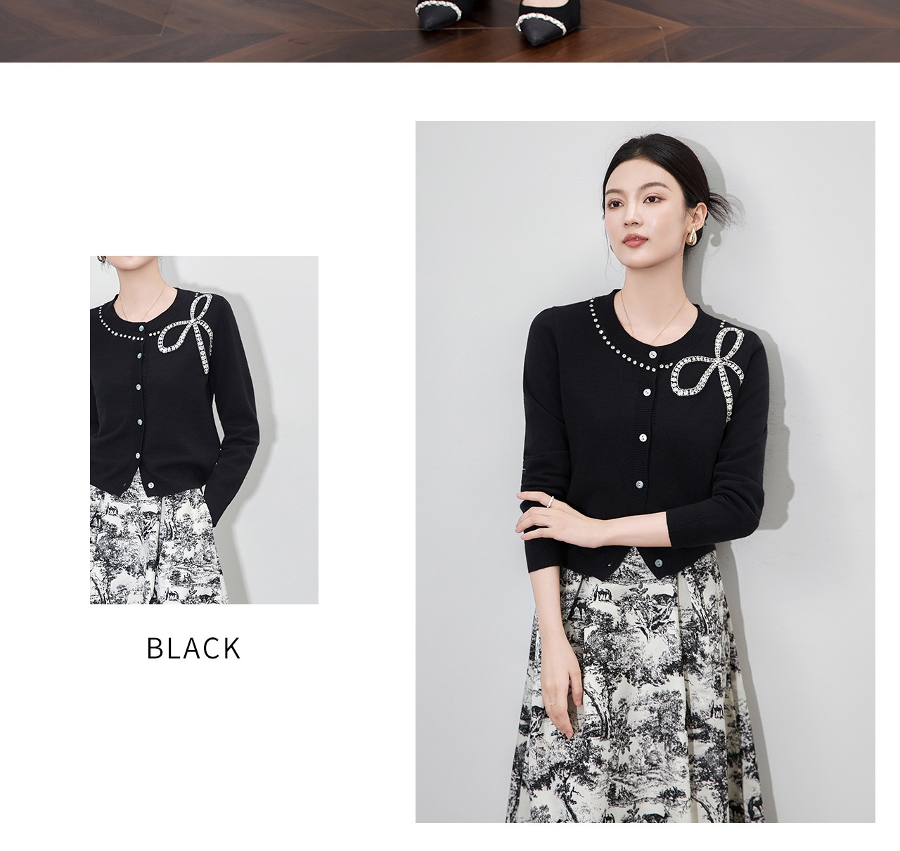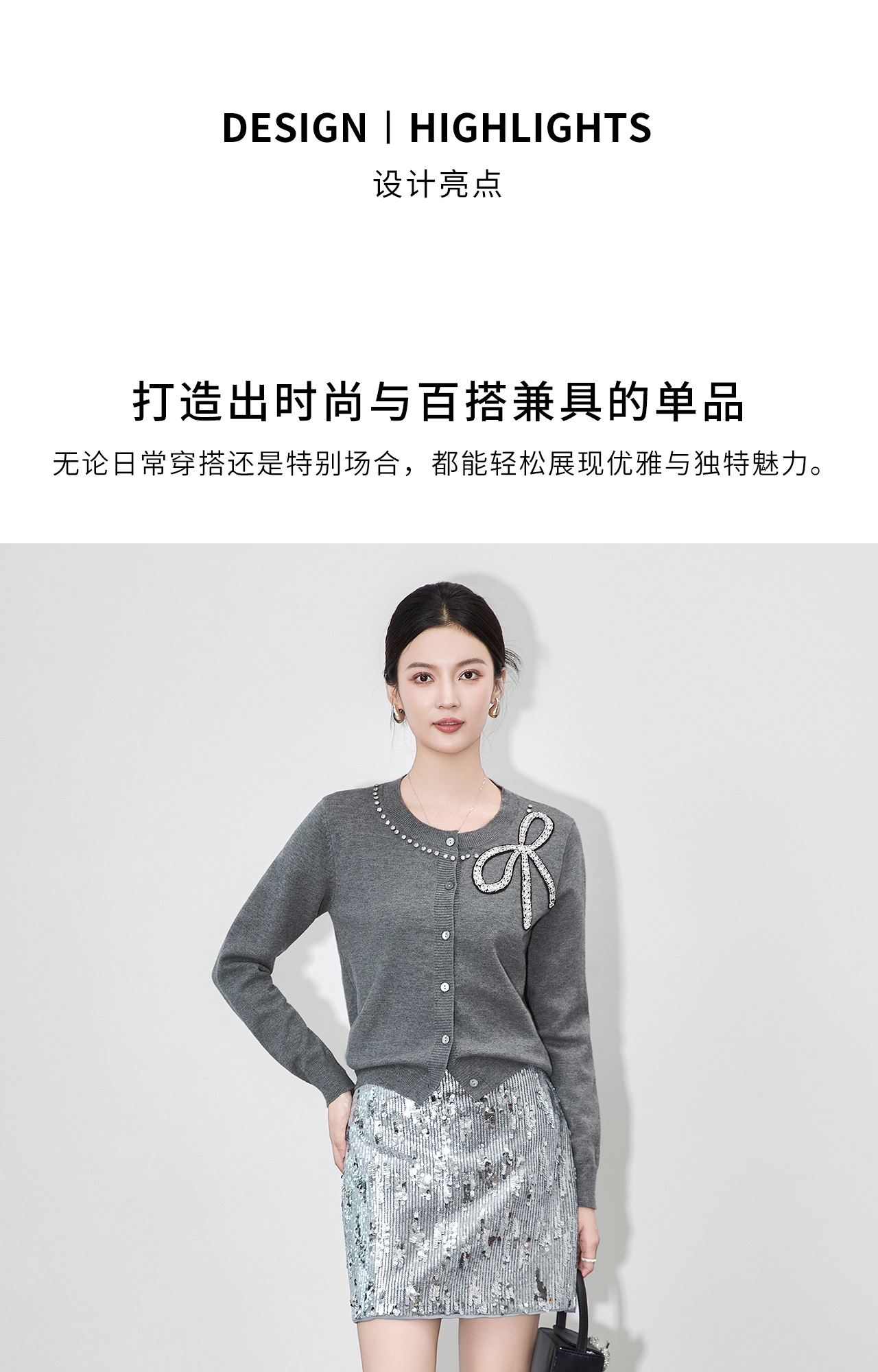 「高货wl」全新升级【铂金会员201/天猫269/差价68】(01734)洛诗琳重工闪钻蝴蝶结针织开衫2025秋季优雅圆领针织外套