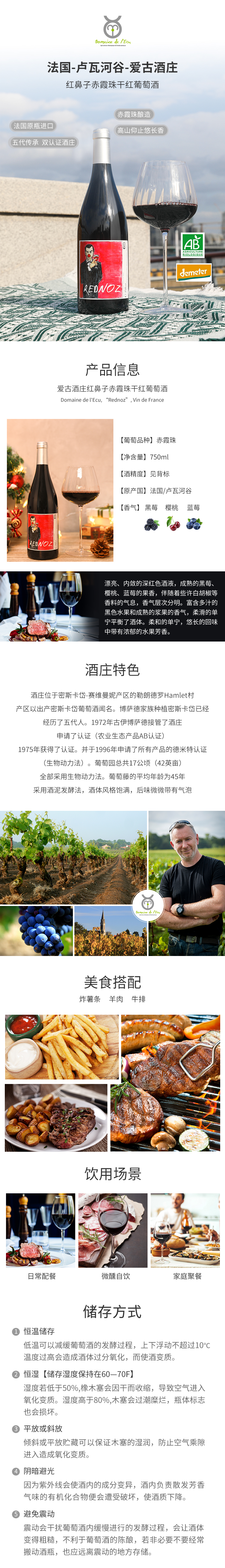 爱古酒庄红鼻子赤霞珠红葡萄酒 2018 艺术酒标 法国自然酒